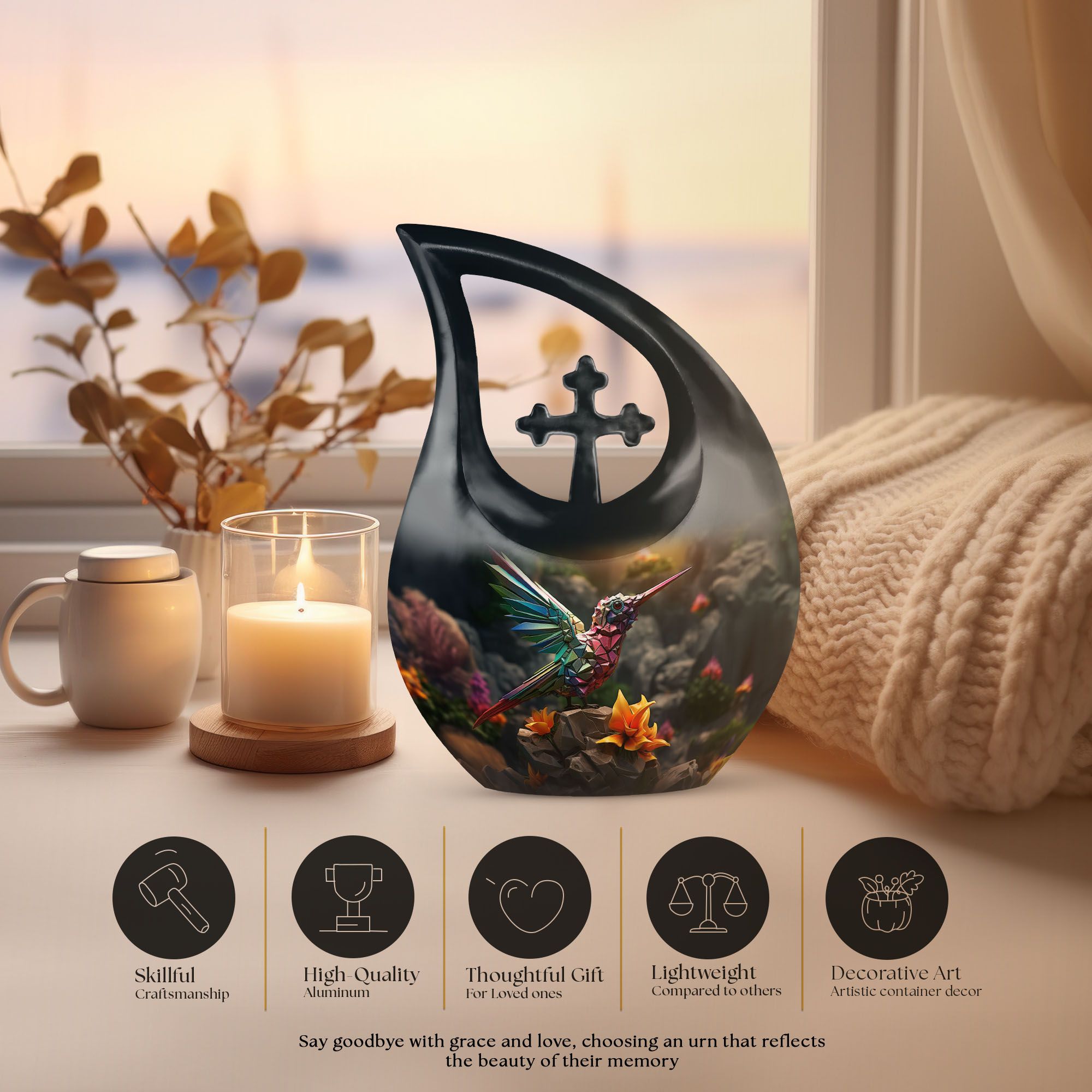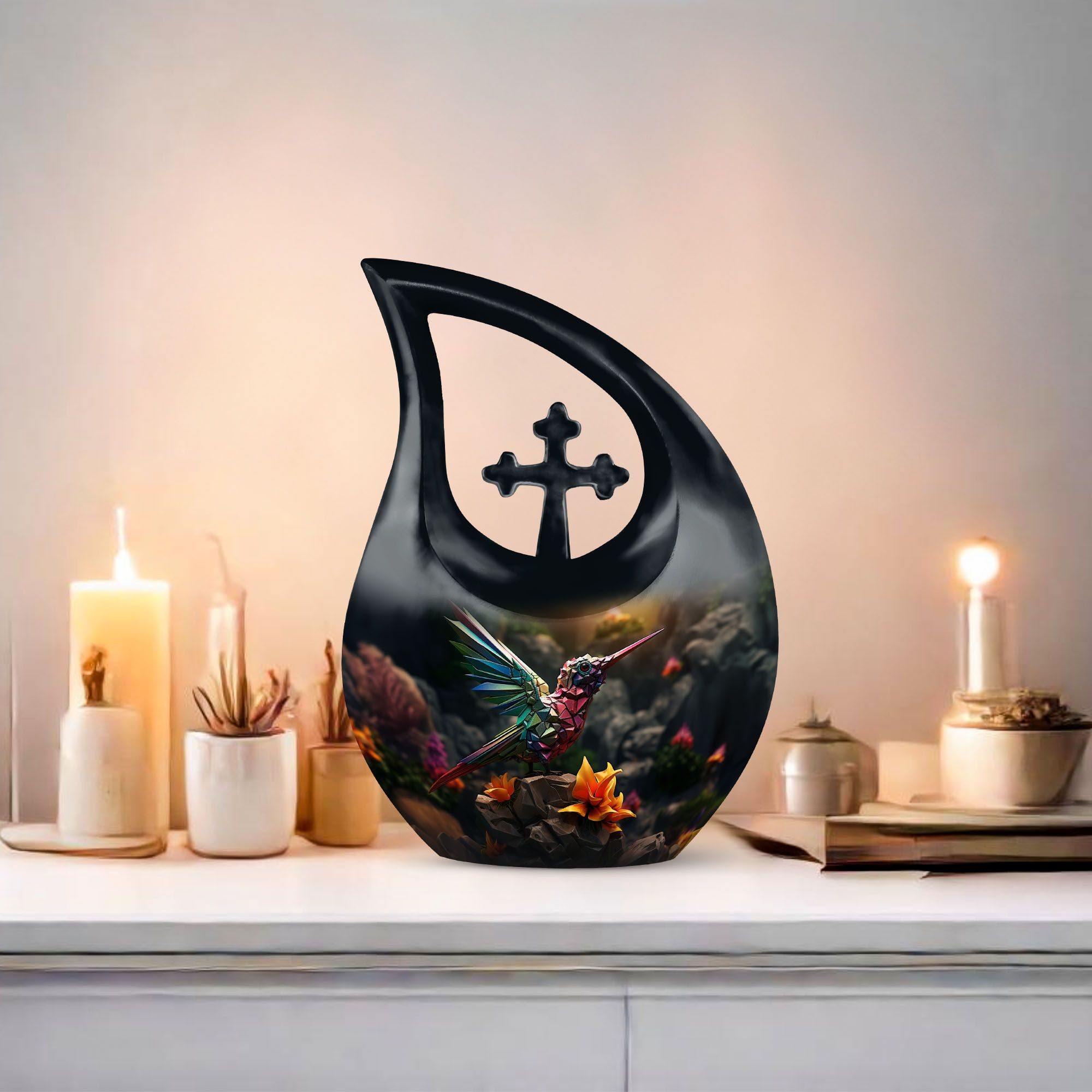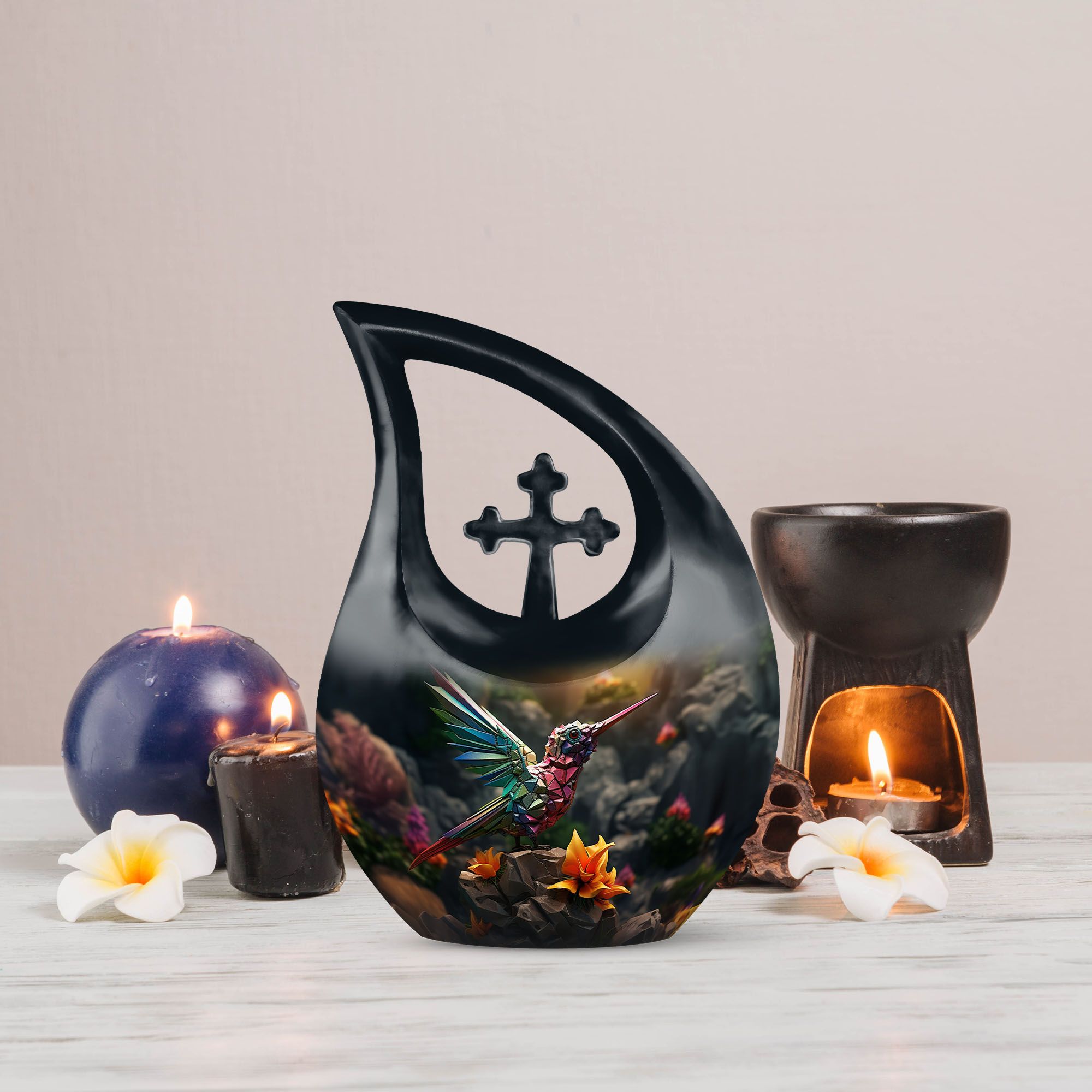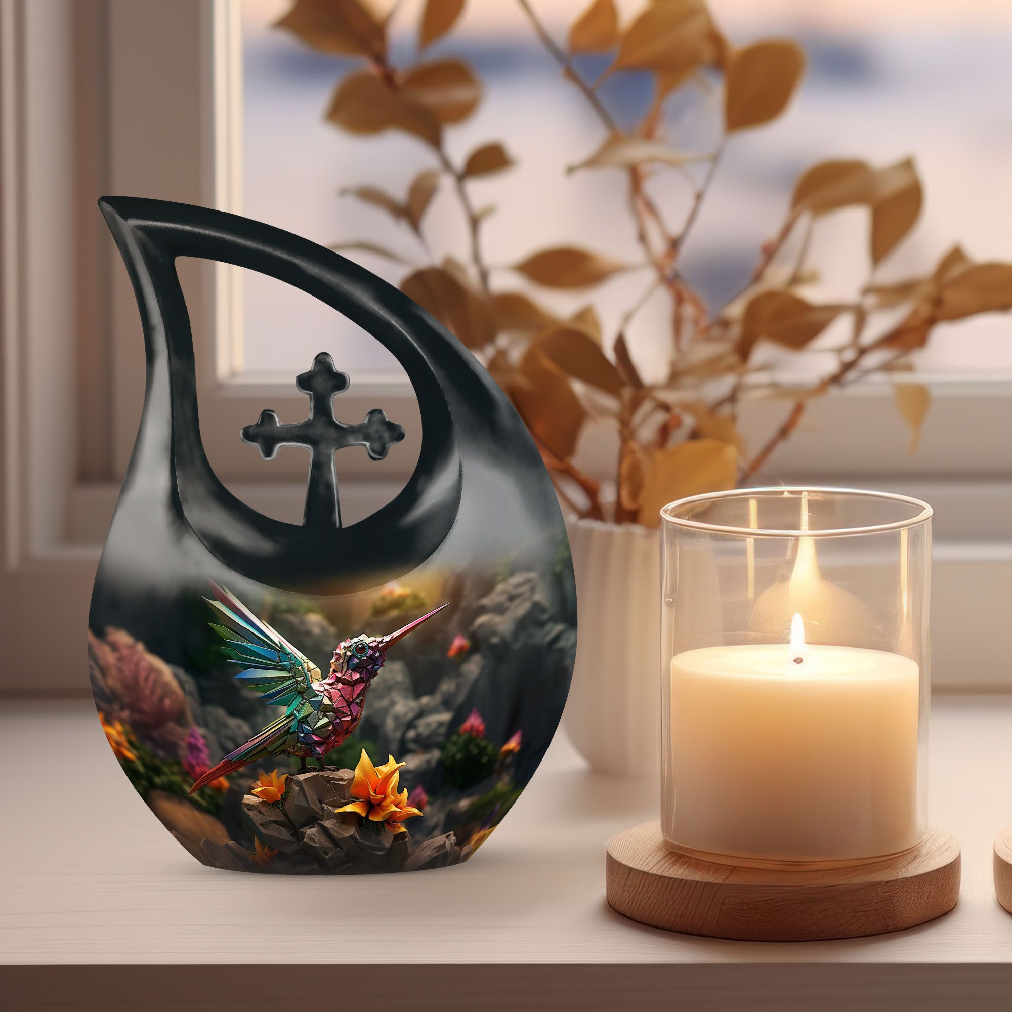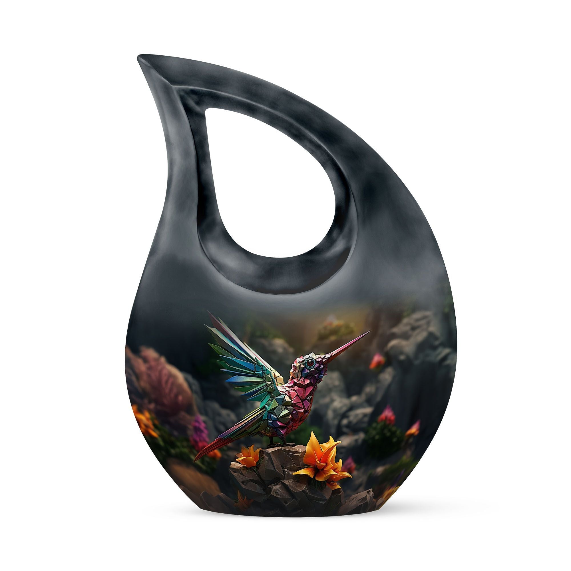 The Crystalized Humming Bird Urn is a stunning symbol of love, lightness, and eternal remembrance. Designed with elegance and compassion, this urn for human ashes adult female mom or urn for ashes adult male dad represents the beauty of life and the soul’s graceful journey beyond. The delicate hummingbird, adorned in crystalized detail, reflects joy, freedom, and the promise that love lives on forever.