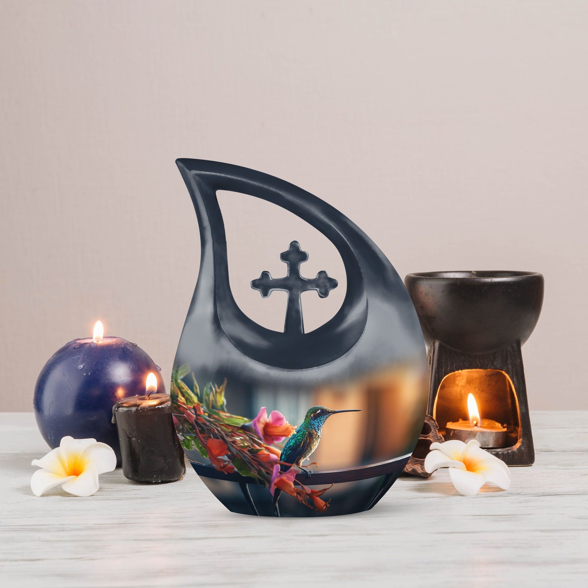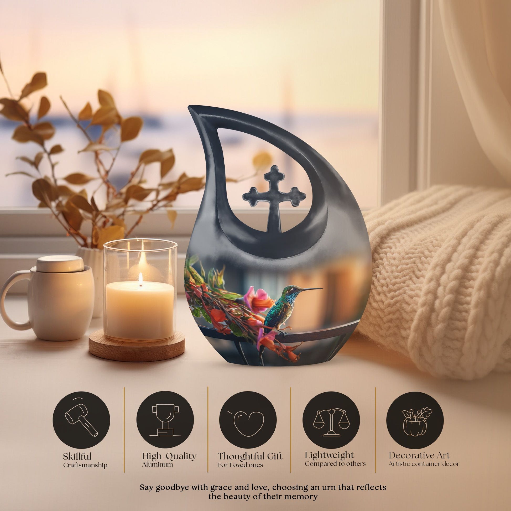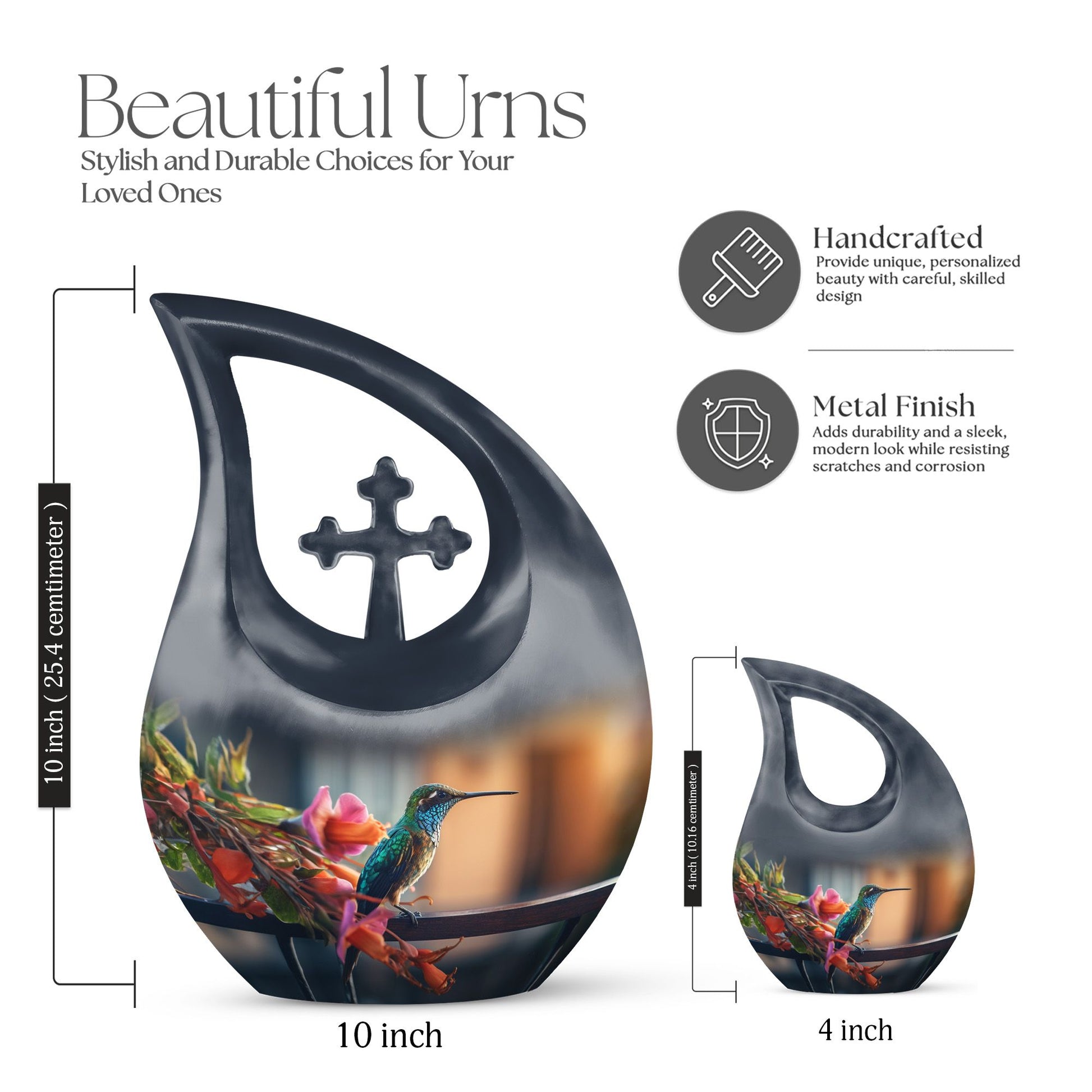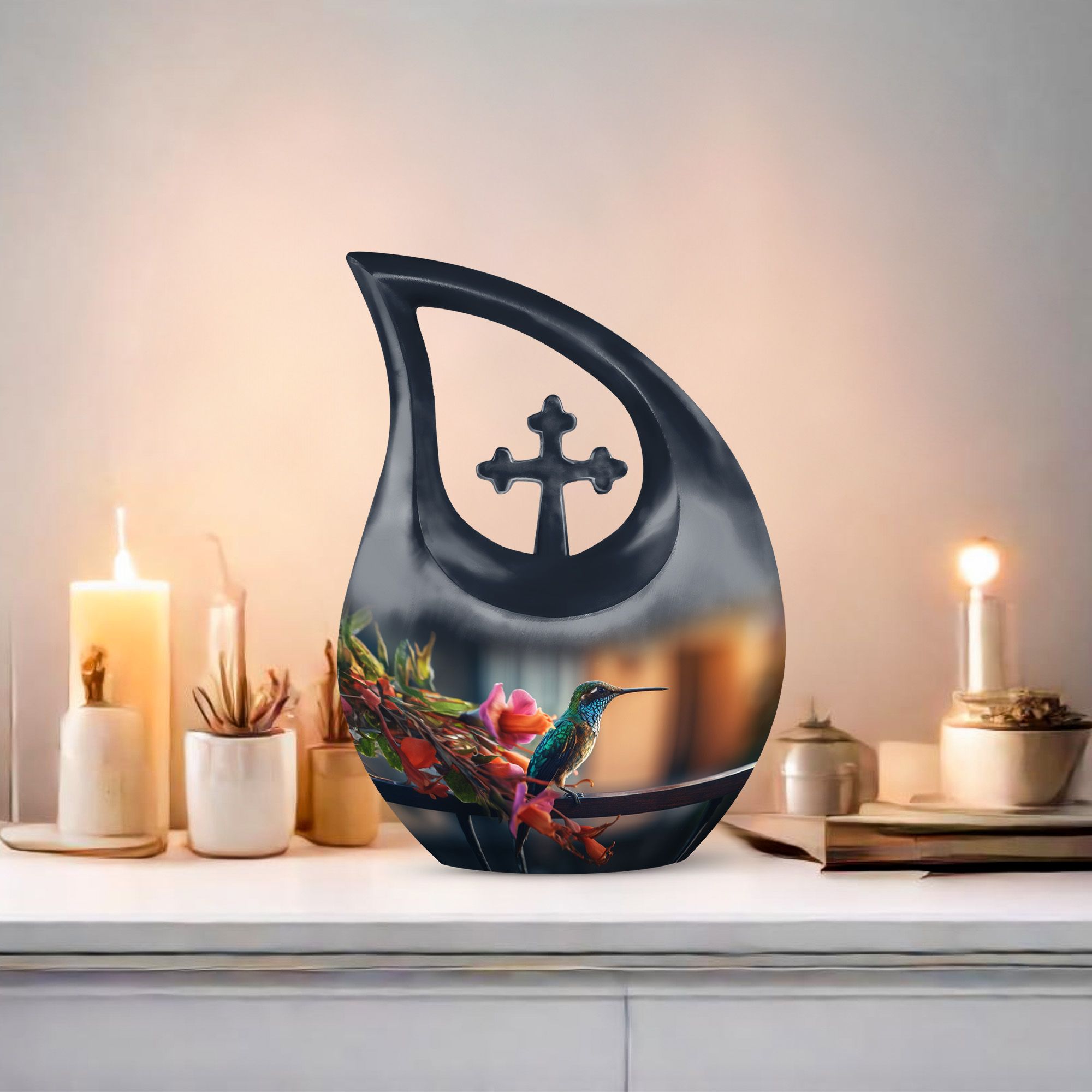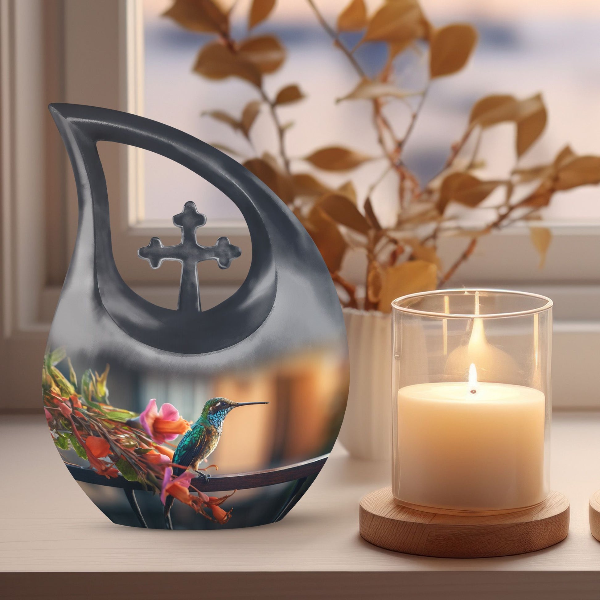 This meaningful urn also supports needs for small urns women and urns women human ashes, providing a dignified and comforting tribute. Its floral and hummingbird imagery serves as a lasting reminder of love, beauty, and cherished memory.