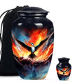 Commemorate your loved one with our 'humming bird urn' from our memorial urns collection. The funeral urn is suitable for both male and female remembrance. Crafted from premium aluminium, this large urn stands elegantly at 10 inches in height, catering for the needs of adults. Its substantial capacity of 200 cubic inches ensures ample containment for the revered ashes. The urn weighs a durable 3.3 pounds, truly embodying the weight of memories within. Each purchase comes with a luxurious velvet pouch for storage of ashes, enhancing solemnity and respect during your memorial ceremonies. If you're after something special, personalize your urn with engraved names to create a vintage heirloom piece. Infusing the theme of 'Abstract', this metallic large urn encompasses an aesthetic blend of classic and unusual elegance. To discover more about our funeral urns for men & women, large urns or cremation urns, feel free to explore the store. Remember, in times of deep-felt sadness, the humming bird urn keeps cherished memories beautifully alive.