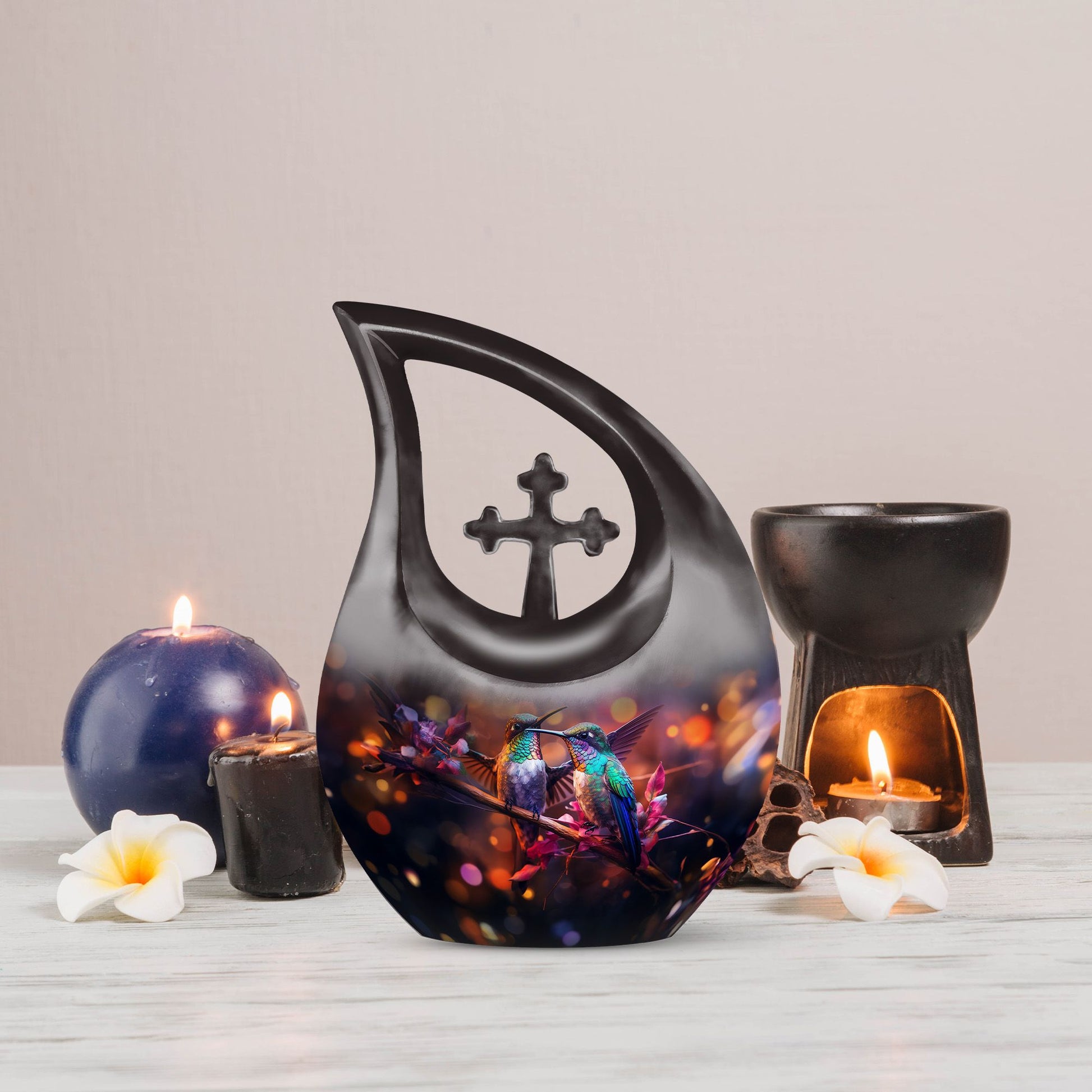 The Colorful Humming Bird Urn offers a peaceful and uplifting way to honor a cherished life. Designed to bring comfort through its vibrant hummingbird artwork, it is a meaningful choice for families seeking an urn for men & women or cremation urns for ashes for women that reflect love, hope, and joyful remembrance.