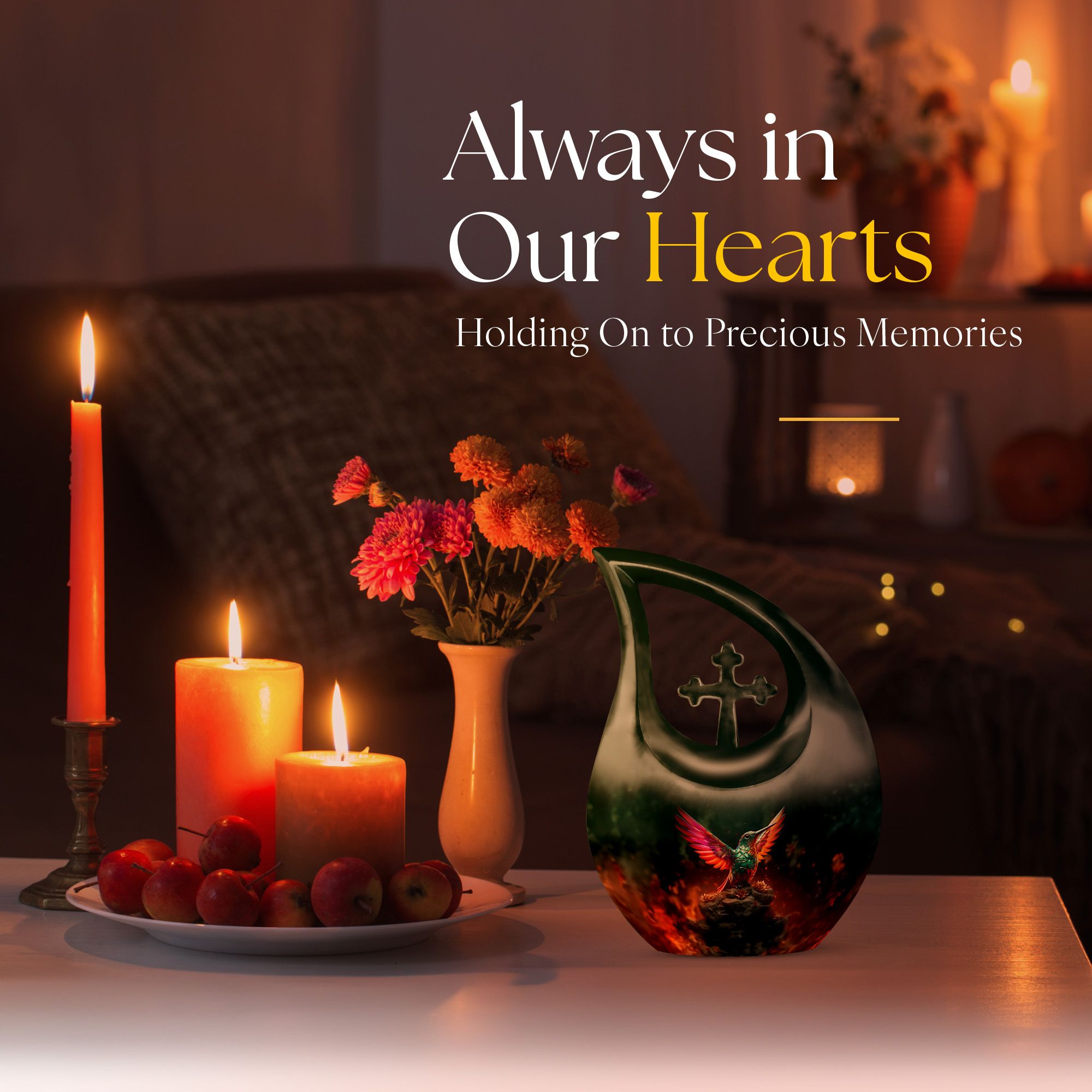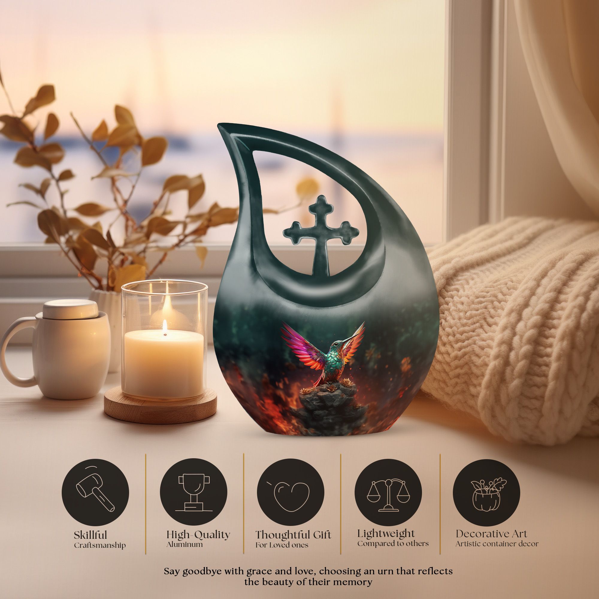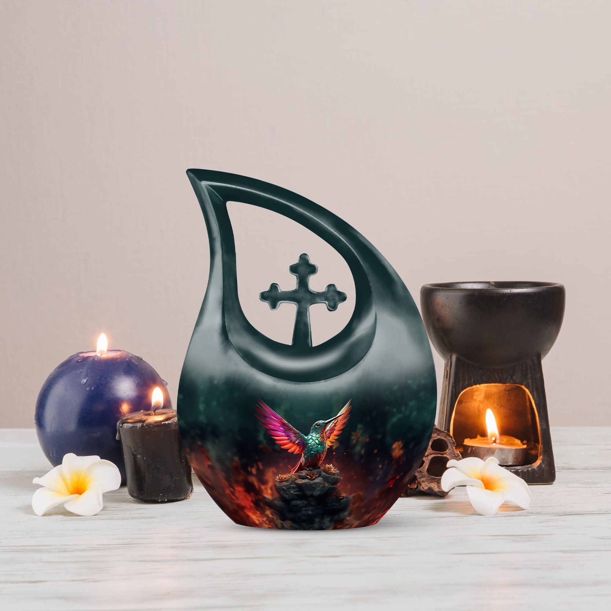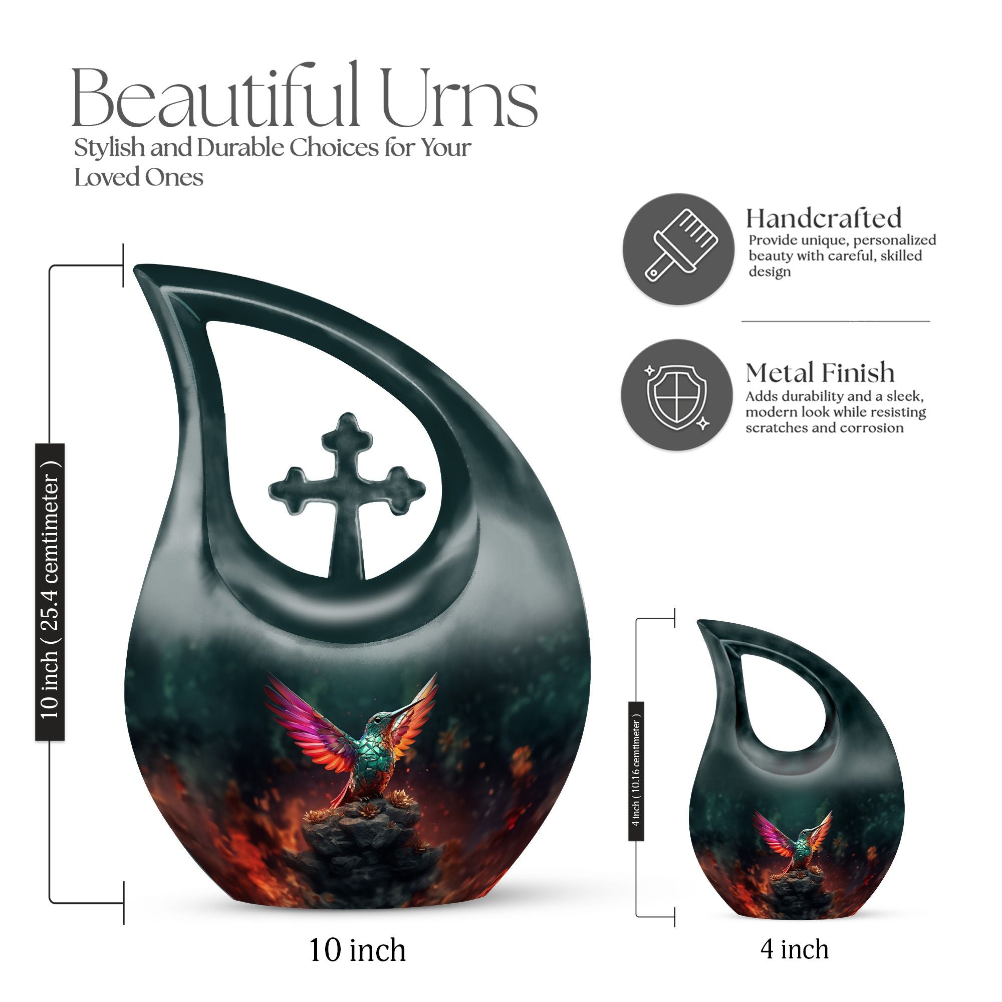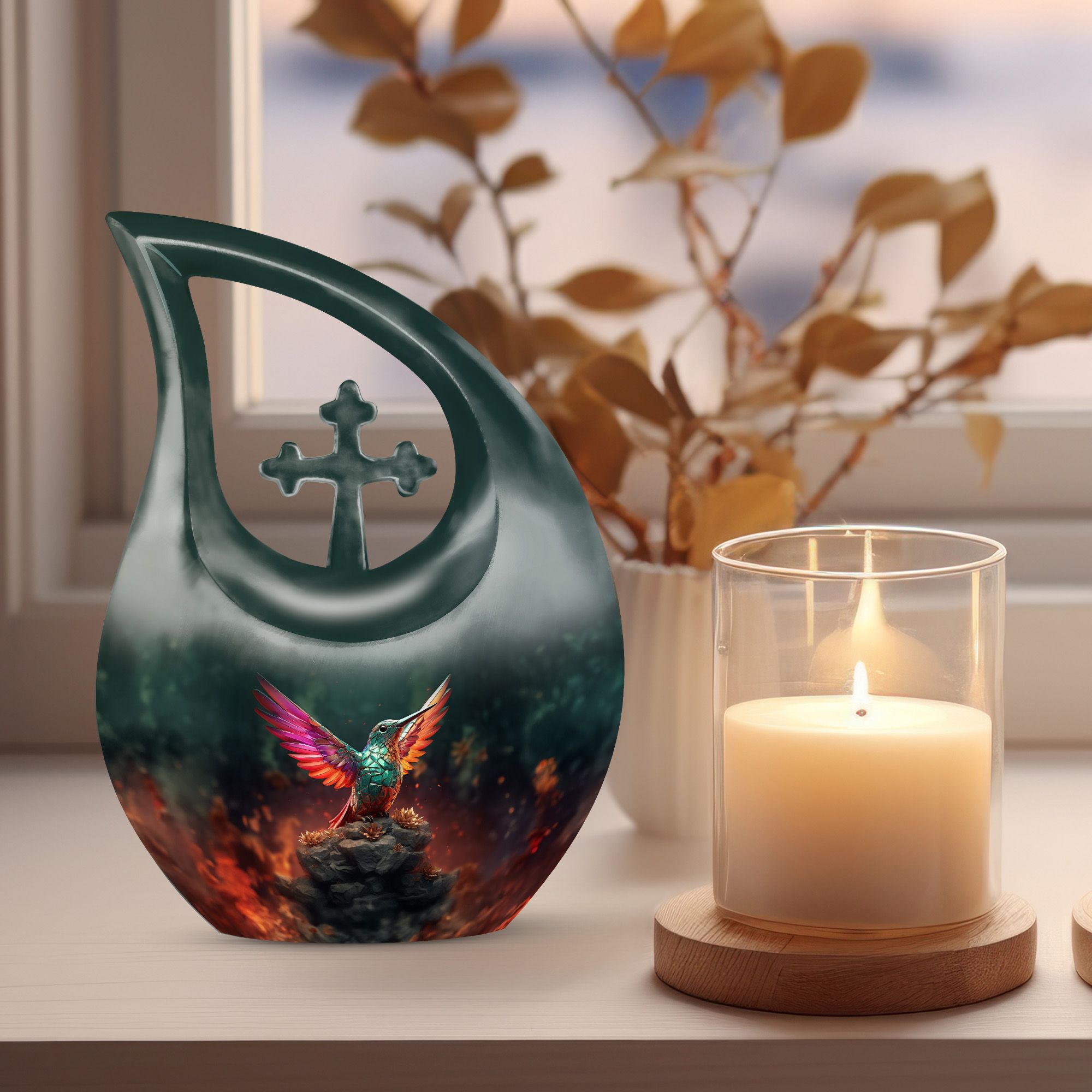Let this artistic hummingbird urn bring a sense of peace and beauty as you honor a cherished life, offering comfort and dignity through every detail.