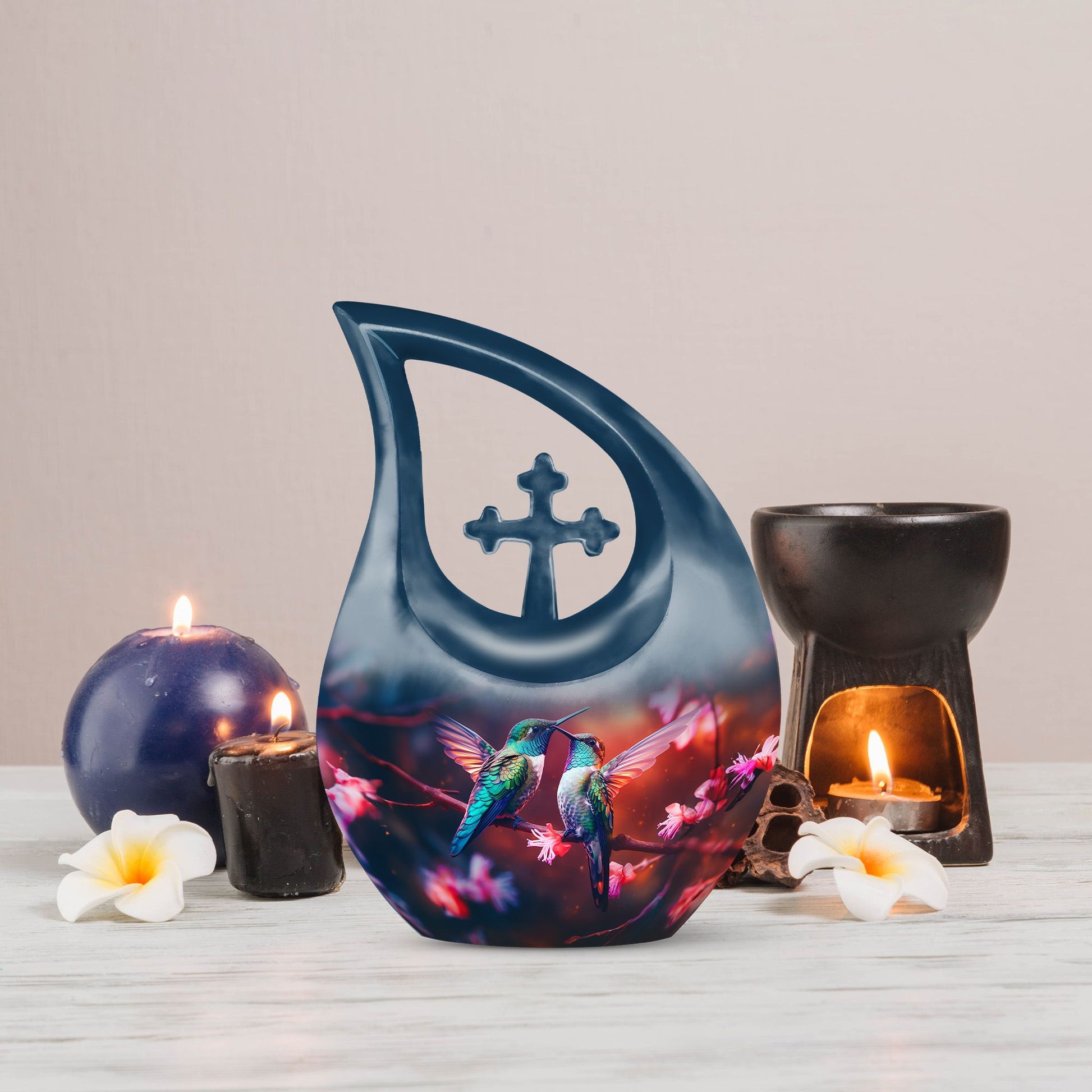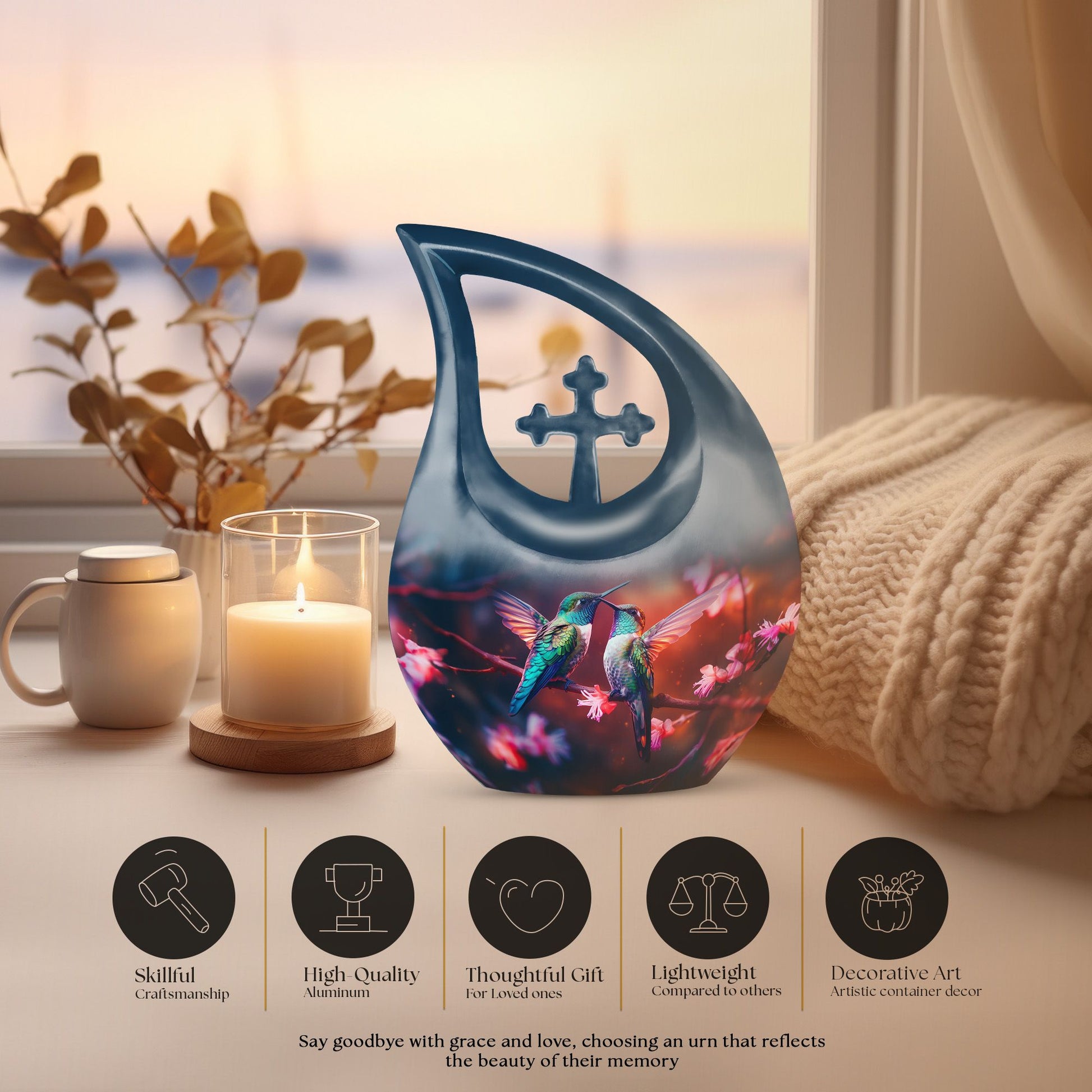 Honor cherished memories with this Humming Bird Funeral Urn for Ashes, thoughtfully designed for both men and women. Its peaceful bird motif symbolizes freedom and everlasting love, offering families a gentle way to preserve the legacy of someone dear. This urn is suitable for those seeking urns for adult female ashes, a dignified adult male urn, or a compassionate memorial for a mother or father.
