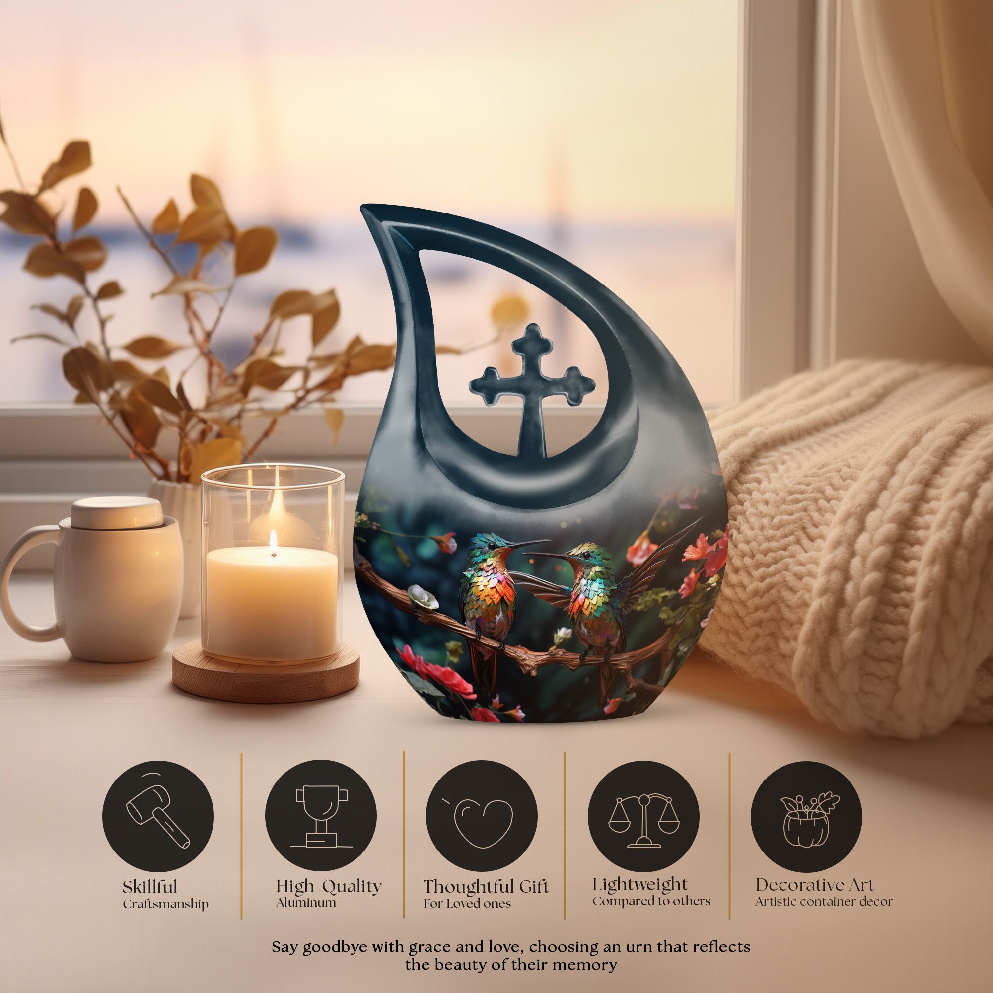 The symbolic humming bird artwork adds a comforting touch, making this urn a heartfelt tribute. Its peaceful design brings solace while ensuring the memory of your loved one remains cherished, making it ideal for families searching for urns for human ashes adult large crafted with care and meaning.