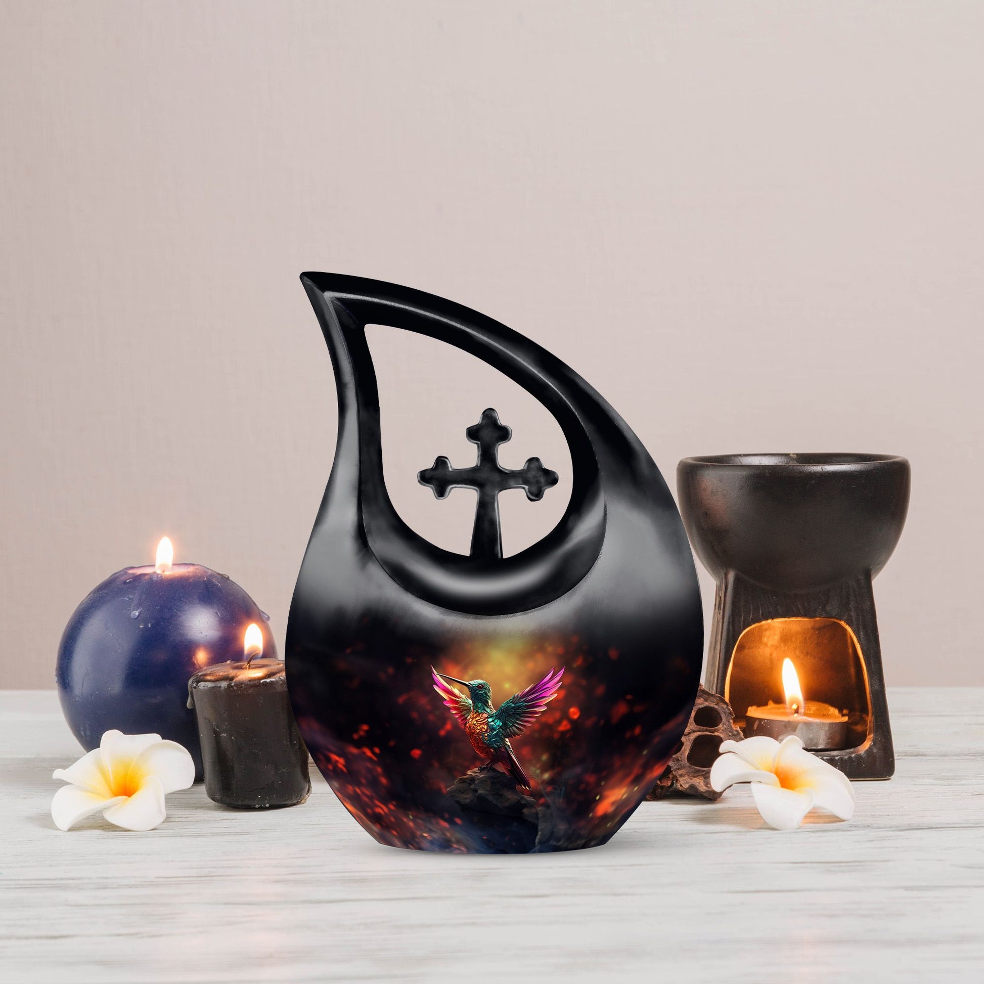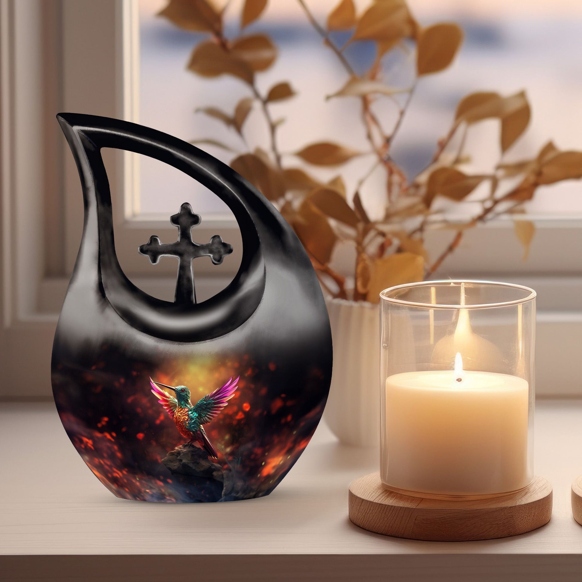 Honoring a loved one becomes a gentle, heartfelt experience with this Colorful Humming Bird Custom Cremation Urn, thoughtfully designed to hold precious memories. Crafted to bring peace and comfort, this piece offers a graceful resting place, making it suitable for those searching for a large urn for ashes adult male or a large urn for ashes for women.