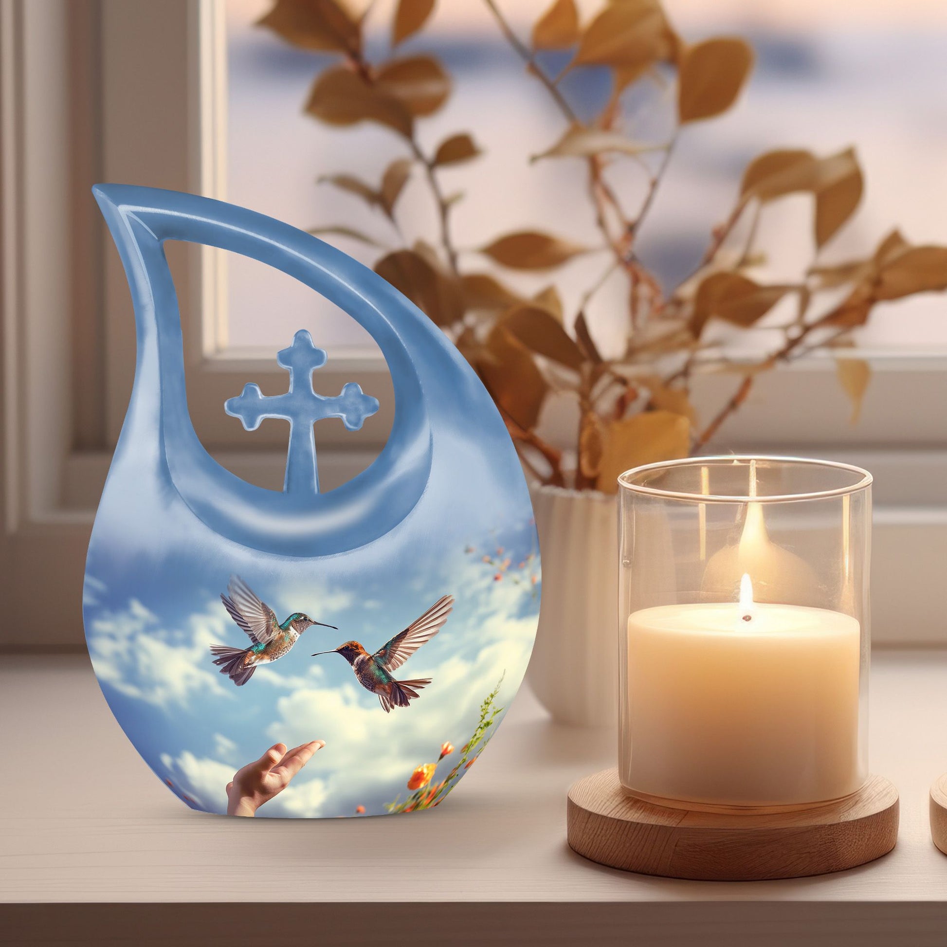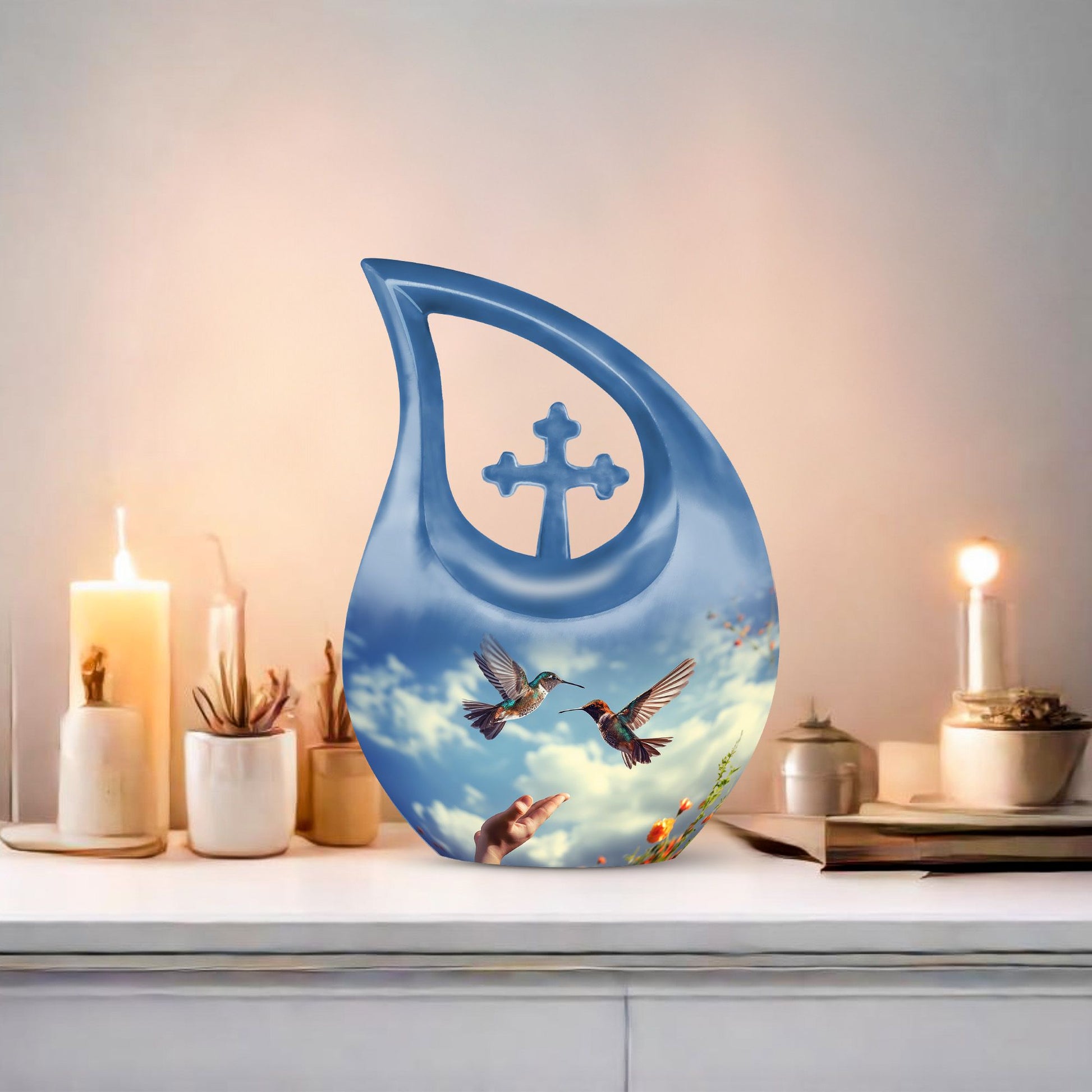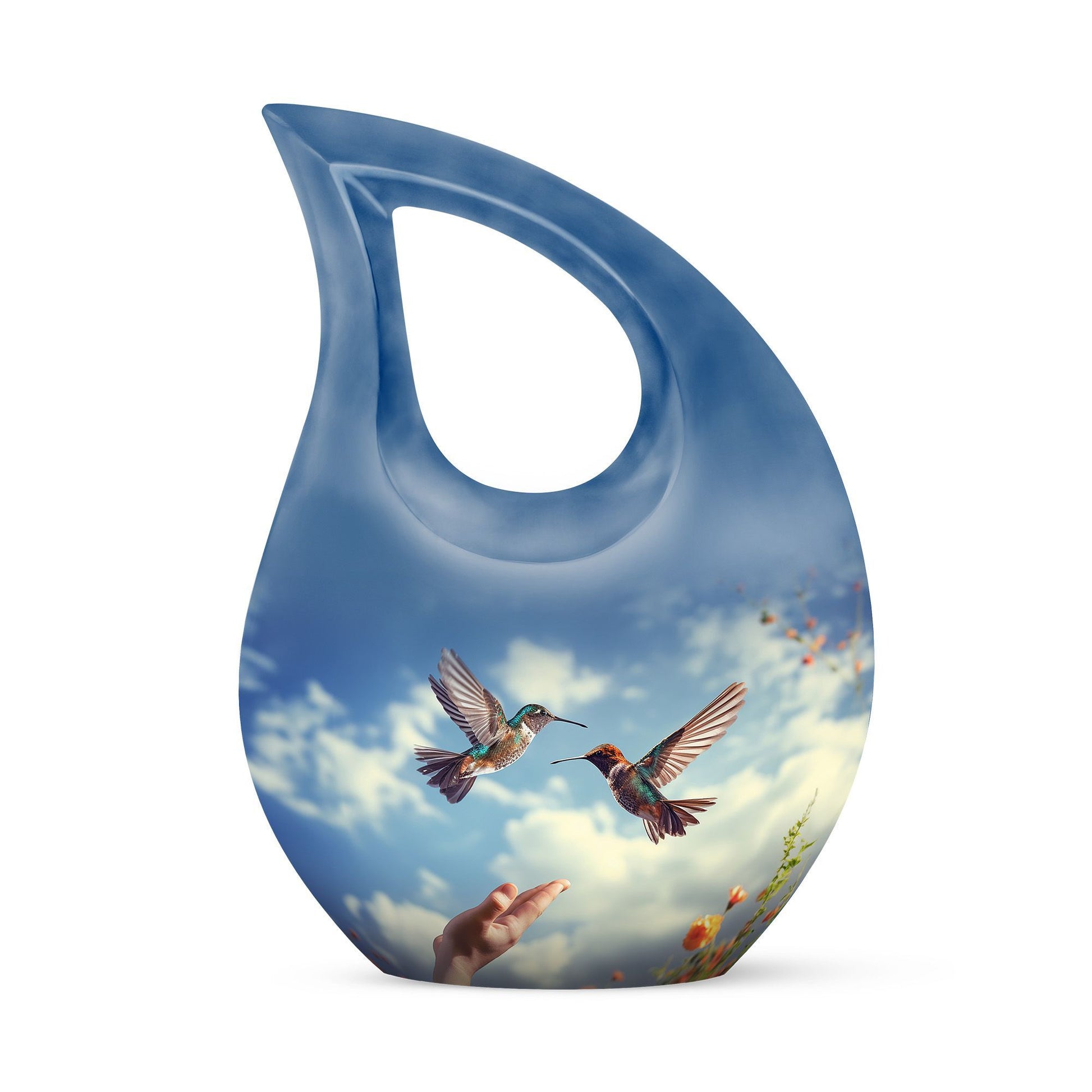 This Humming Bird Pair Memorial Urn offers a peaceful and heartfelt way to honor a loved one, symbolizing unity, love, and the eternal bond between souls. Its serene artwork and gentle colors bring comfort to families seeking a dignified tribute, especially those needing a large urn for ashes adult male or a beautifully crafted large urn for ashes for women.