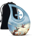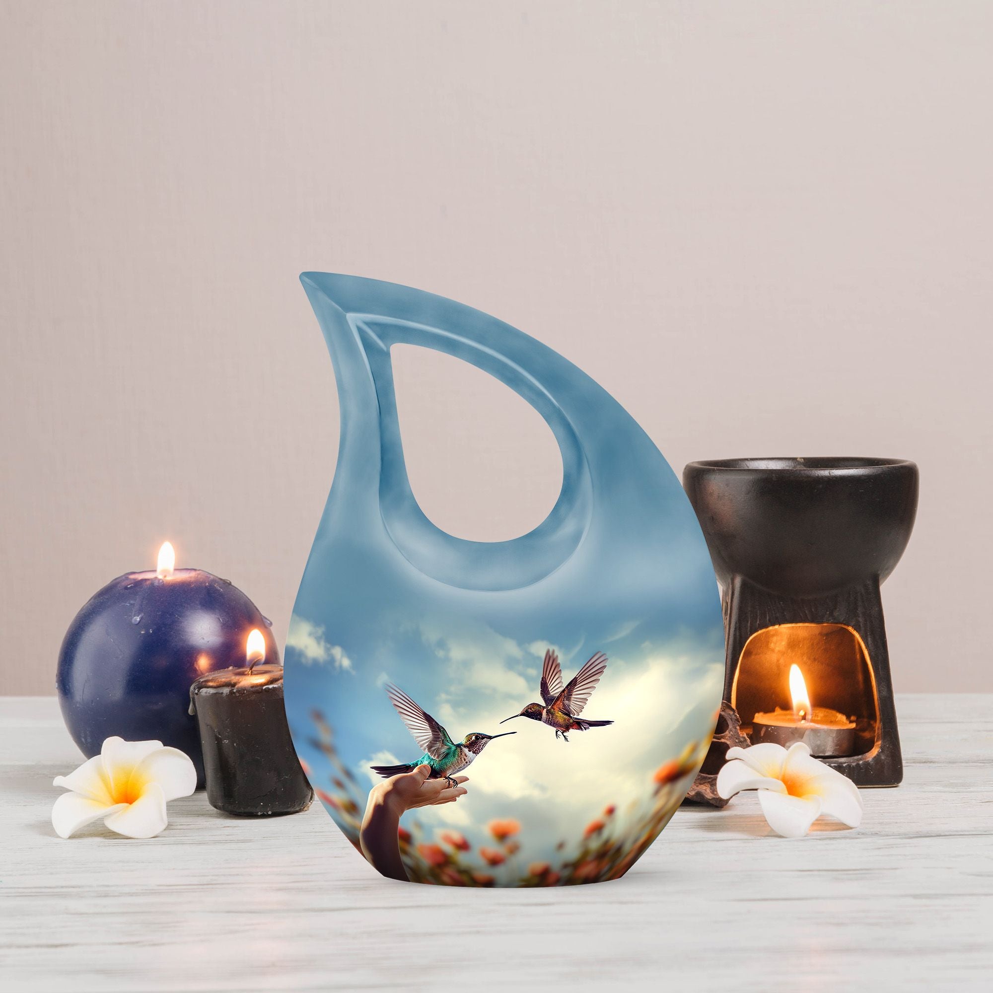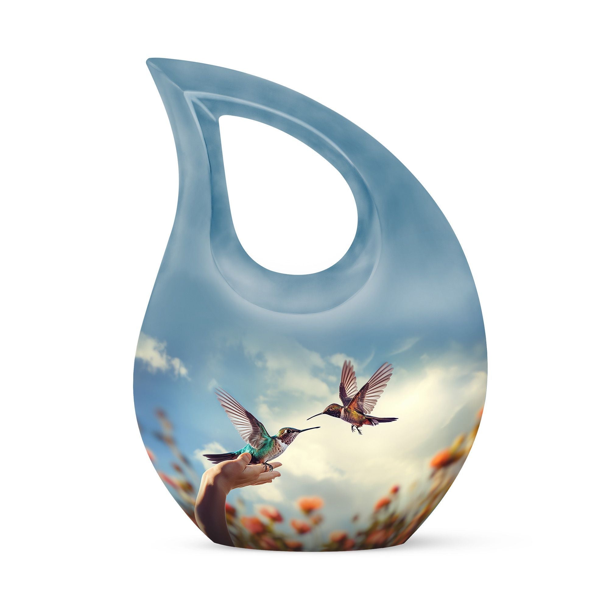 Honor your loved one with this beautifully crafted Humming Bird Urn Set, featuring both a full-size adult urn and a matching keepsake urn for sharing ashes among family. Designed with a serene humming bird motif, this set symbolizes peace, freedom, and everlasting remembrance. It is suitable for families seeking small urns for human ashes adult male, small urns for human ashes adult female, or a meaningful urn for mothers, fathers, and loved ones.