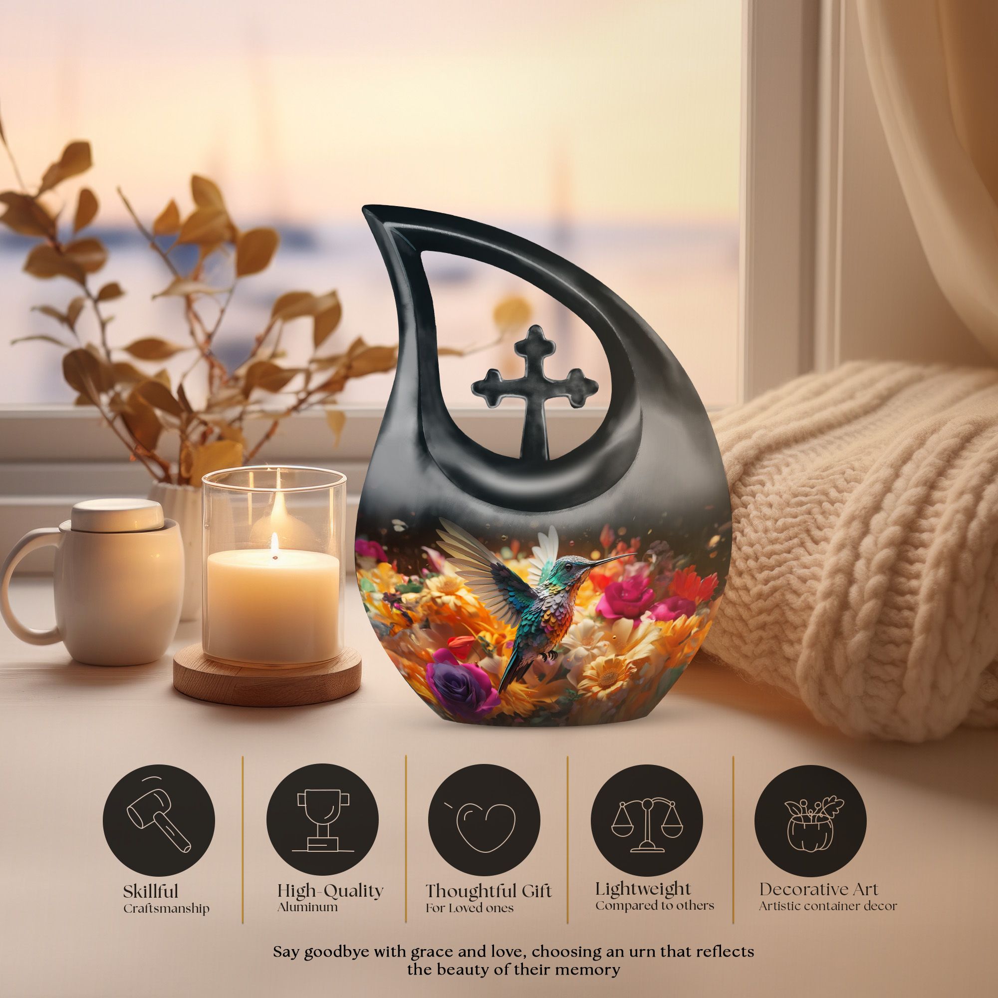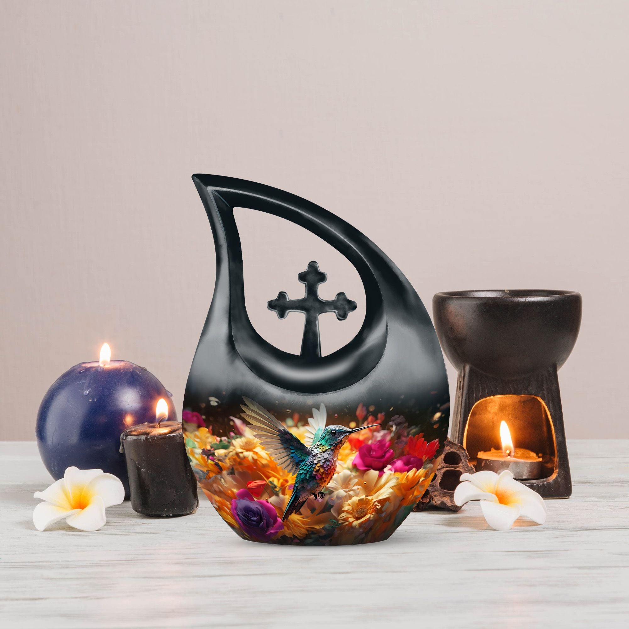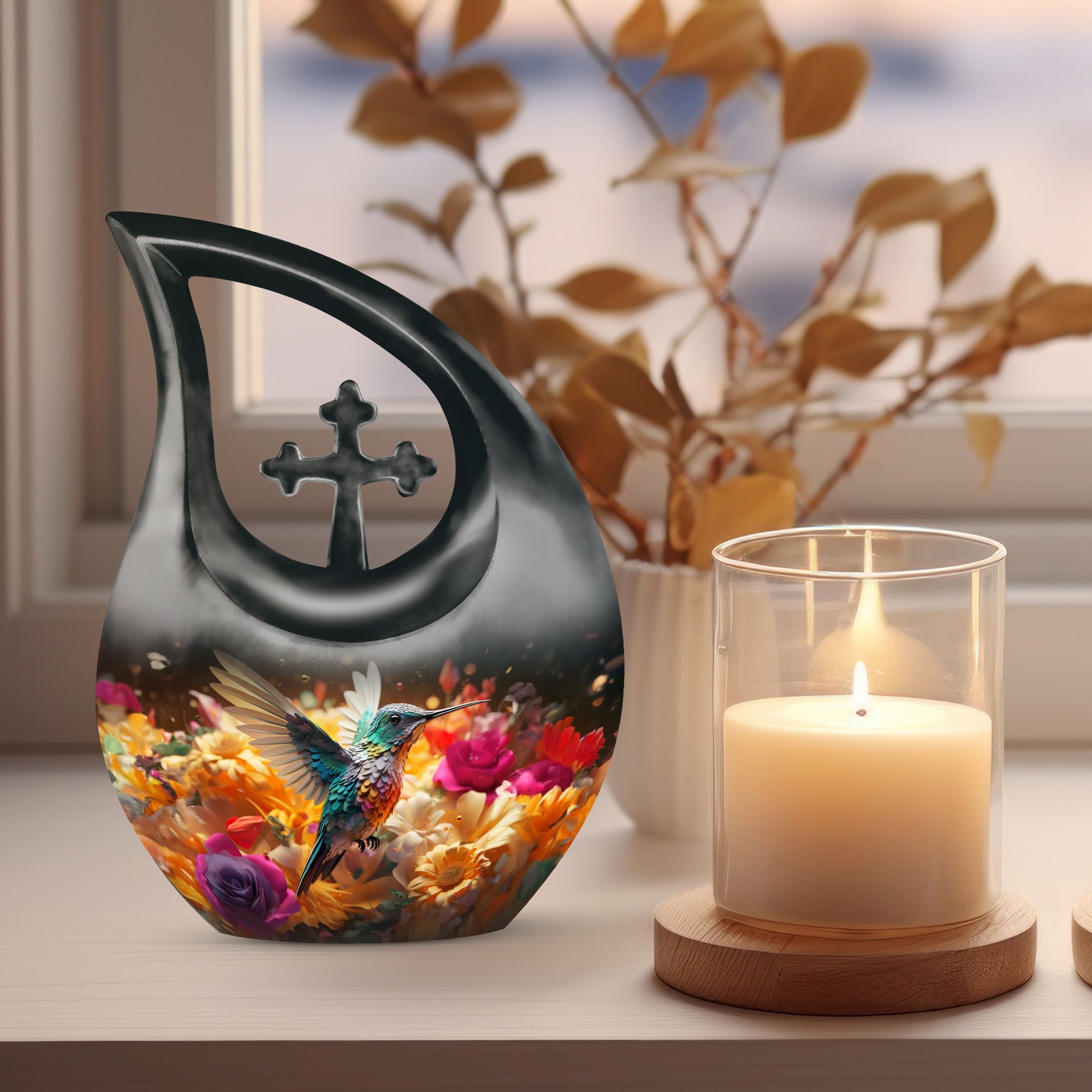 This Humming Bird funeral urn offers a warm and uplifting way to honor a cherished life, blending vibrant floral artwork with the gentle symbolism of the hummingbird. Designed for both men and women, it is a meaningful choice for families seeking an urn for men & women, compassionate funeral urns for women, or dignified adult urns for women that bring peace and beauty to any memorial setting.