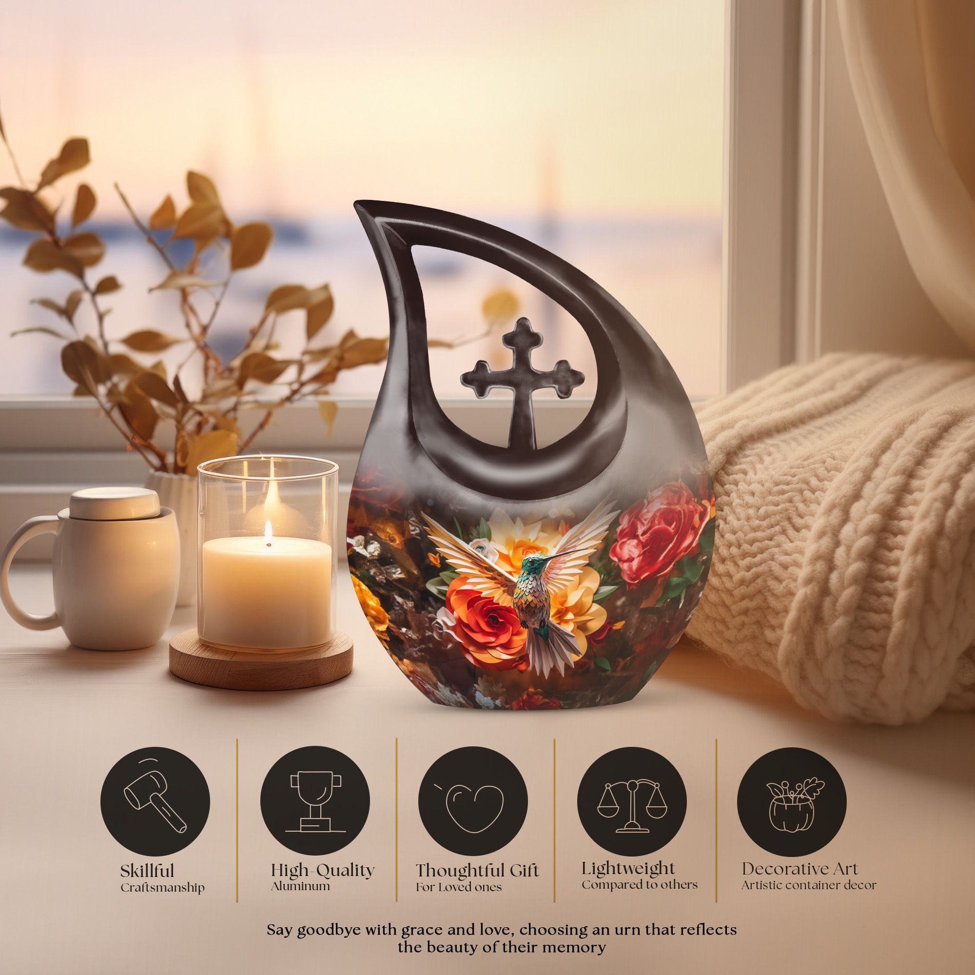 A bright, uplifting tribute, this hummingbird urn preserves their memory with grace, love, and lasting serenity.