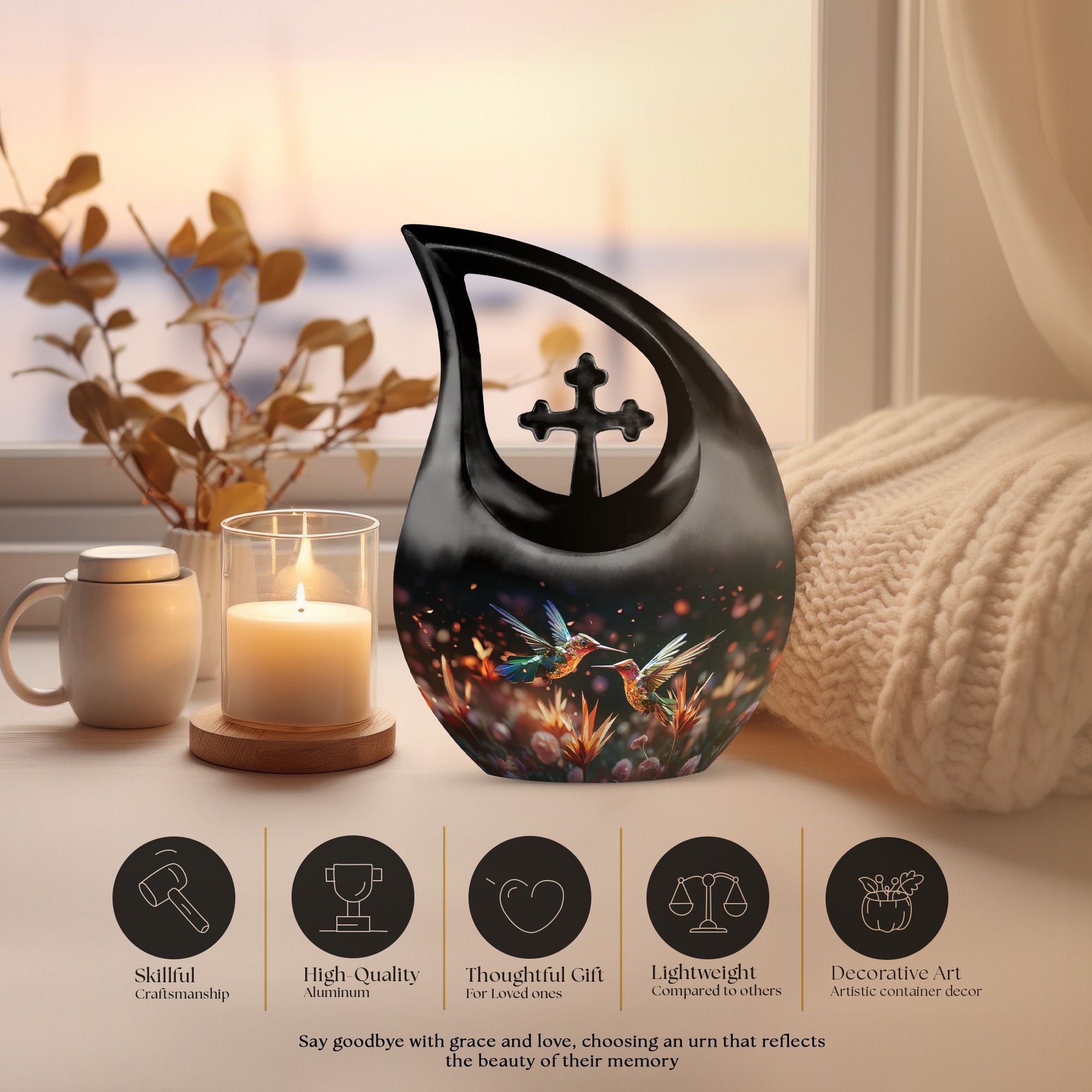 This Hummingbird Urn for Cremation Ashes offers a serene and heartfelt tribute for honoring a cherished life. Its elegant hummingbird artwork symbolizes peace, love, and spiritual presence—making it a meaningful choice whether you need an urn for ashes adult male or a beautiful urn suitable for women as well.
