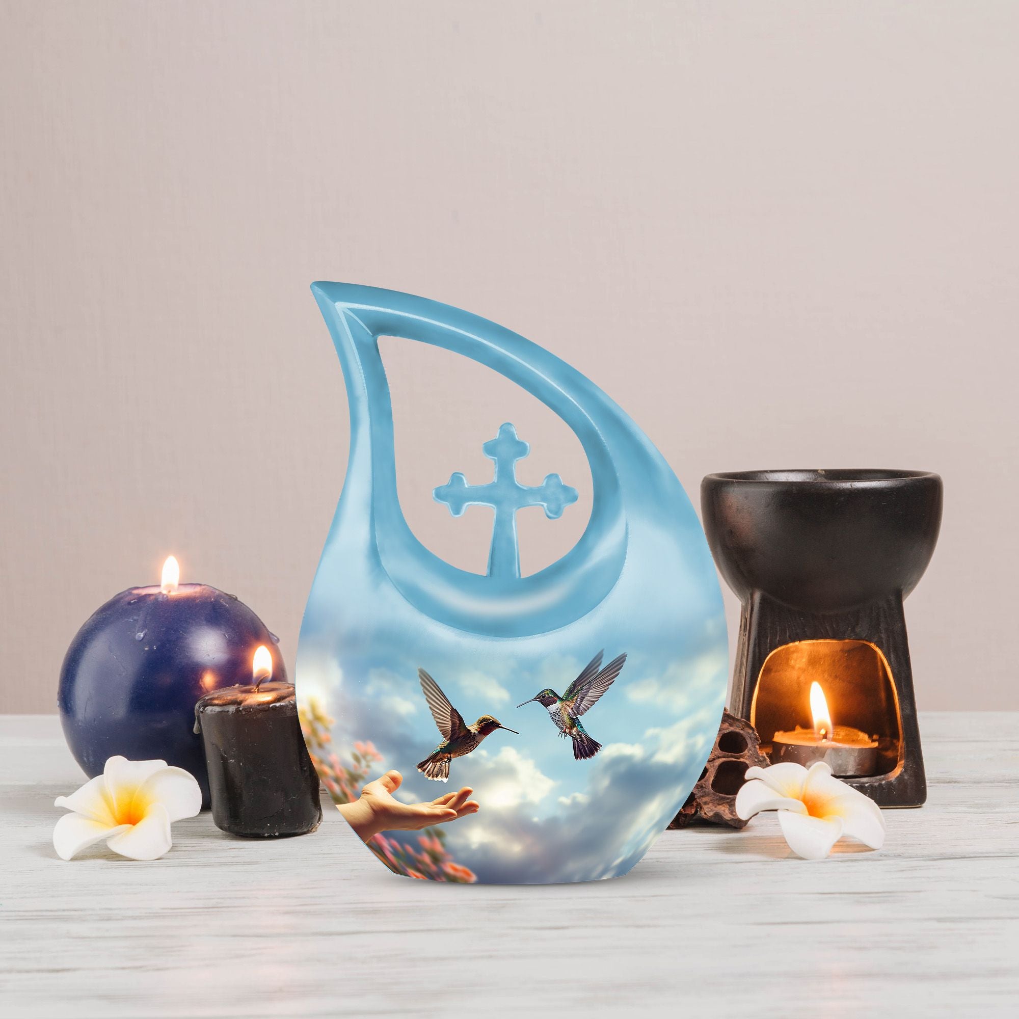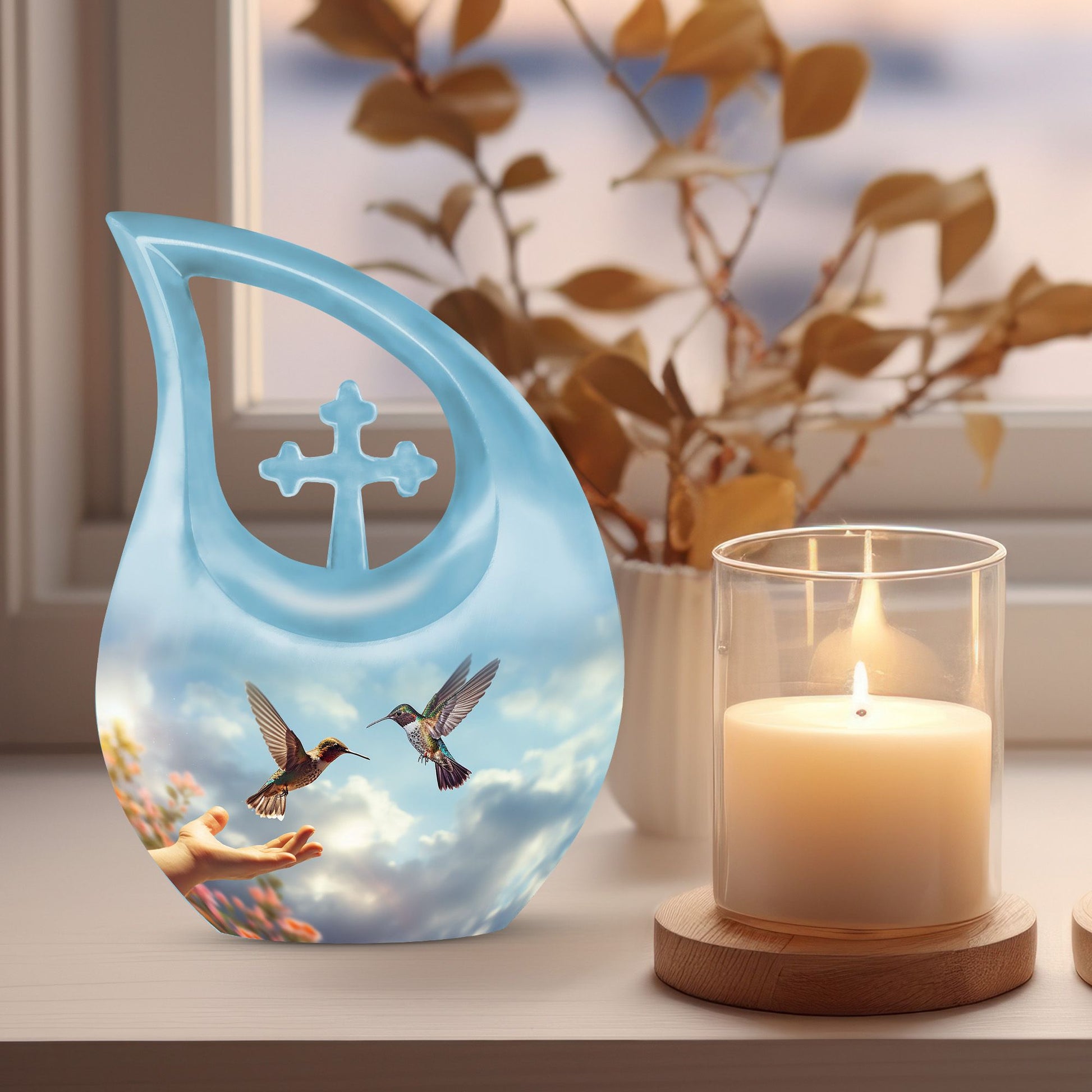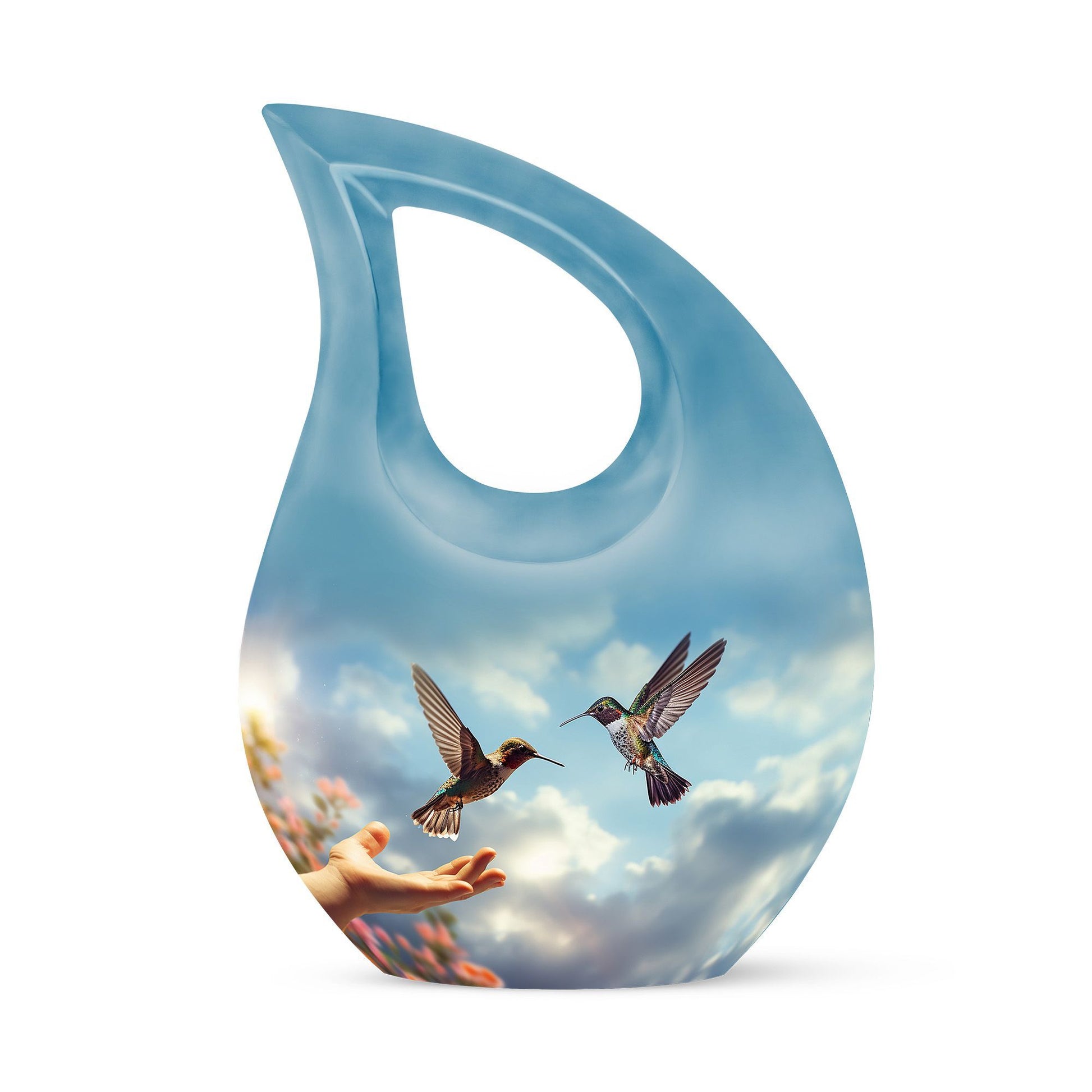 This Hummingbird Memorial Urn offers a peaceful and uplifting way to honor a loved one, symbolizing freedom, grace, and enduring love. Designed for both men and women, it provides a heartfelt tribute for families seeking small cremation urns, meaningful cremation ashes keepsakes, or a beautiful memorial to keep close.