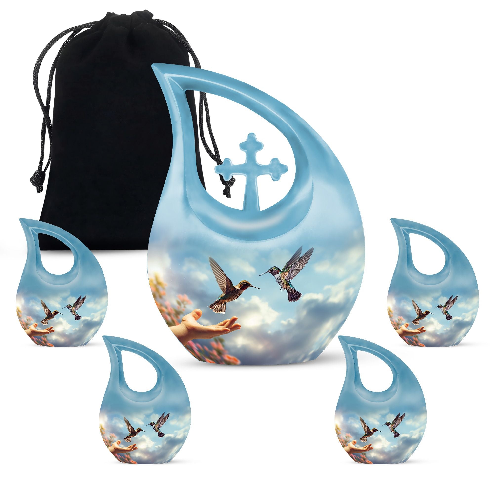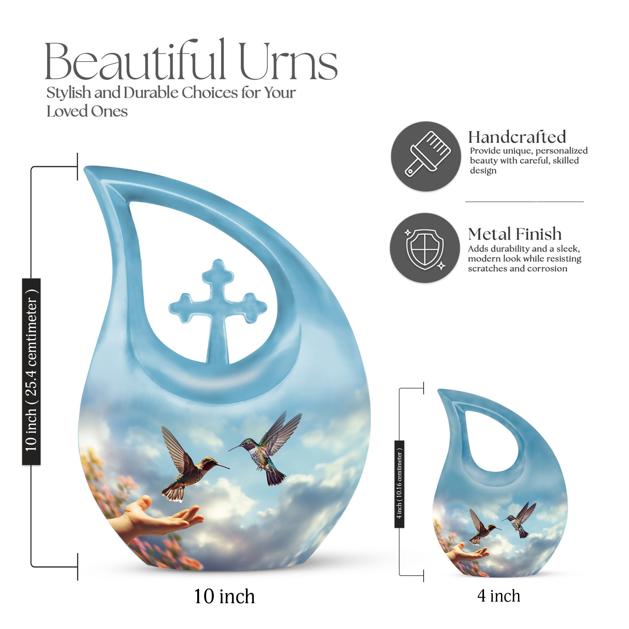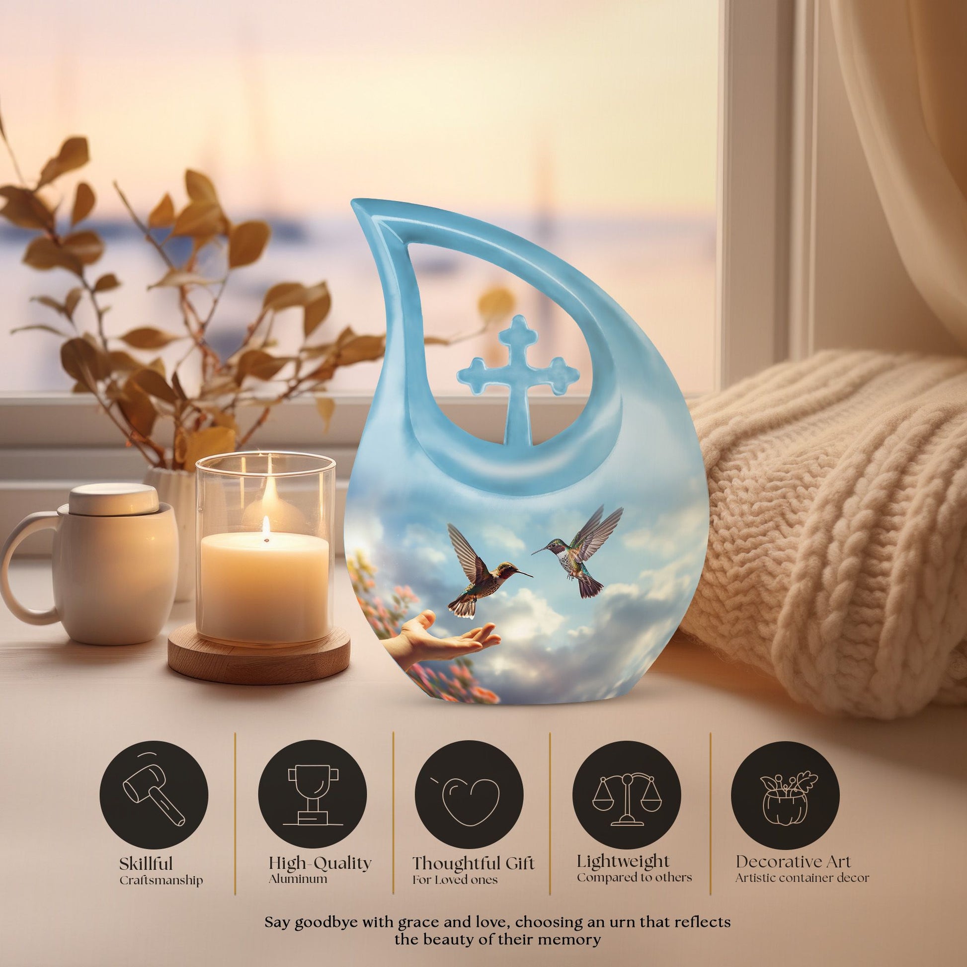 This Hummingbird Memorial Urn offers a peaceful and uplifting way to honor a loved one, symbolizing freedom, grace, and enduring love. Designed for both men and women, it provides a heartfelt tribute for families seeking small cremation urns, meaningful cremation ashes keepsakes, or a beautiful memorial to keep close.