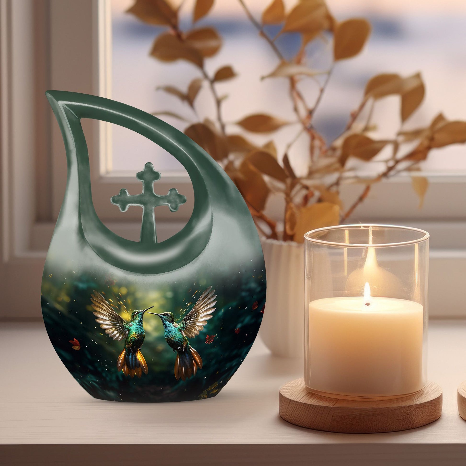 This Green Hummingbird Cremation Urn offers a peaceful and symbolic way to honor a loved one, blending calming green tones with a graceful hummingbird motif that represents hope, healing, and eternal remembrance. Designed especially for men and suitable for women as well, it provides a meaningful tribute for families seeking cremation urns large or a dignified memorial display.