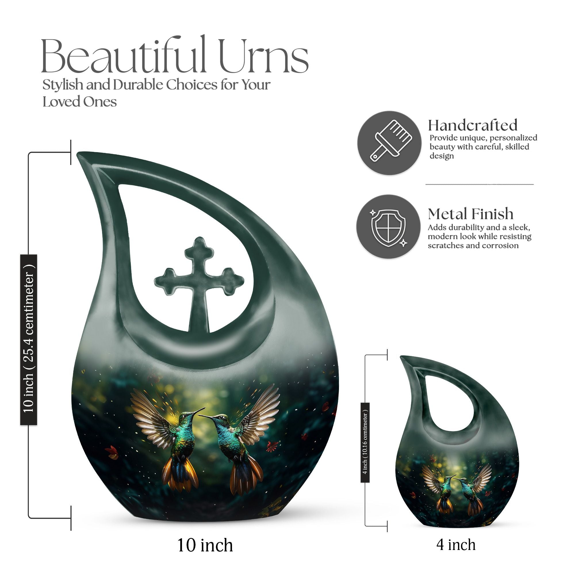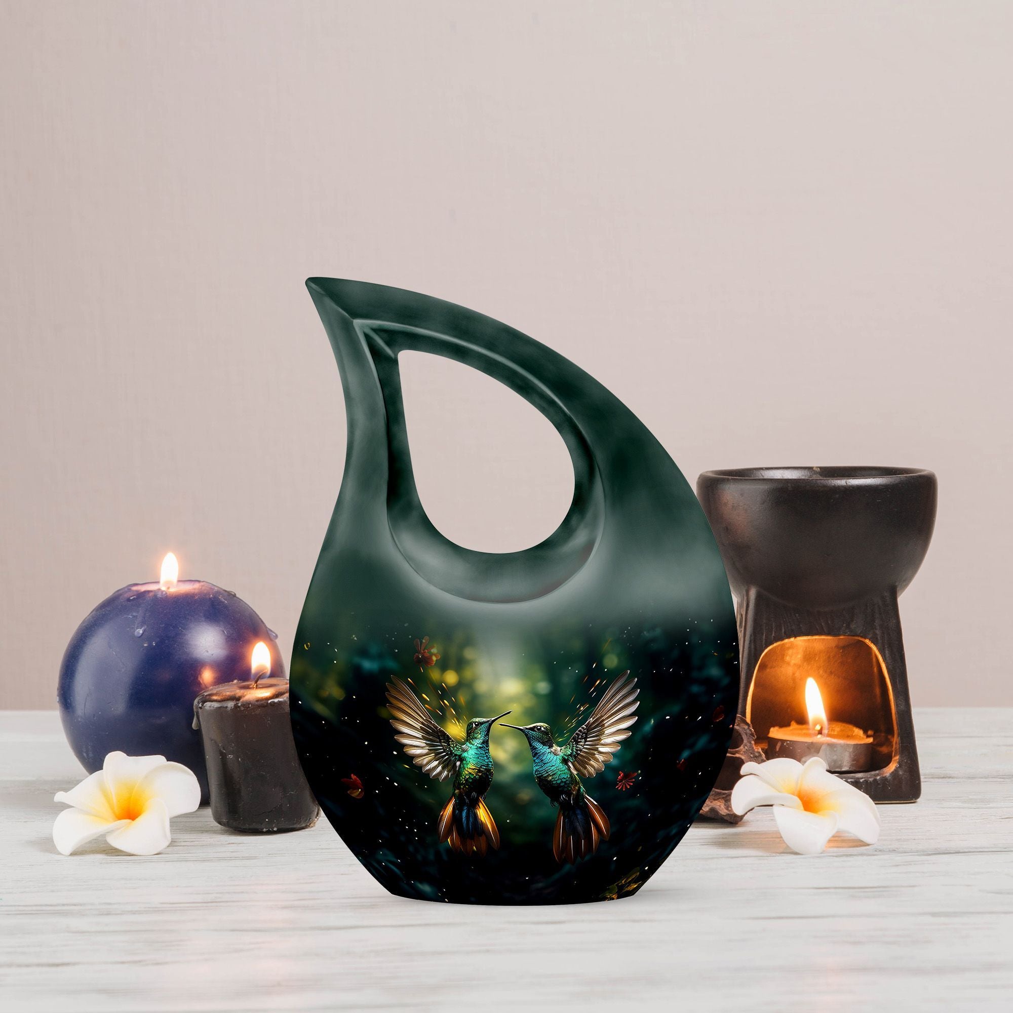 This Green Hummingbird Cremation Urn offers a peaceful and symbolic way to honor a loved one, blending calming green tones with a graceful hummingbird motif that represents hope, healing, and eternal remembrance. Designed especially for men and suitable for women as well, it provides a meaningful tribute for families seeking cremation urns large or a dignified memorial display.