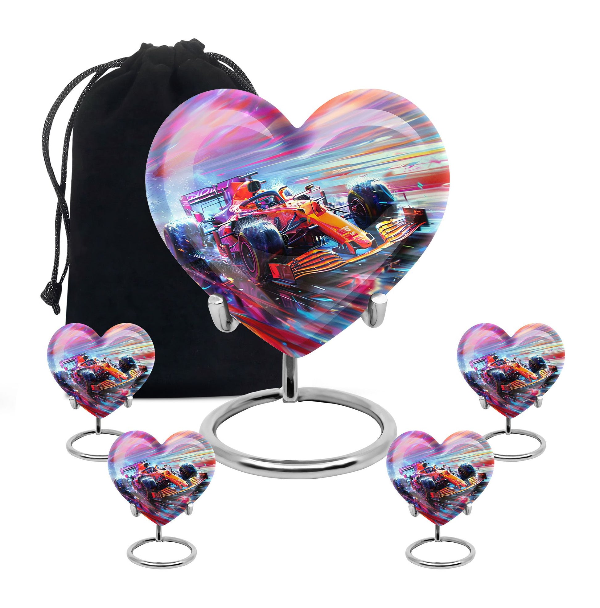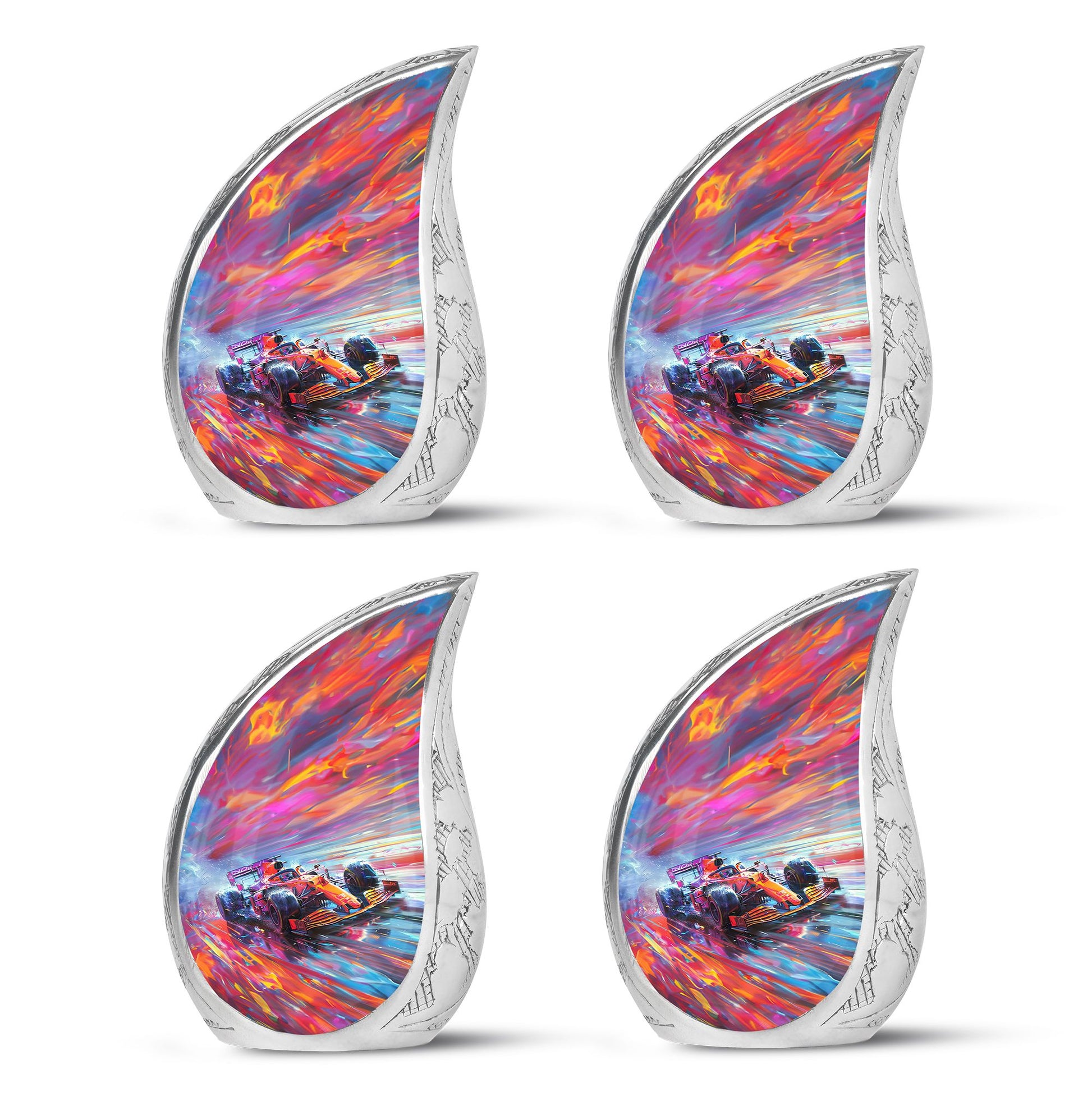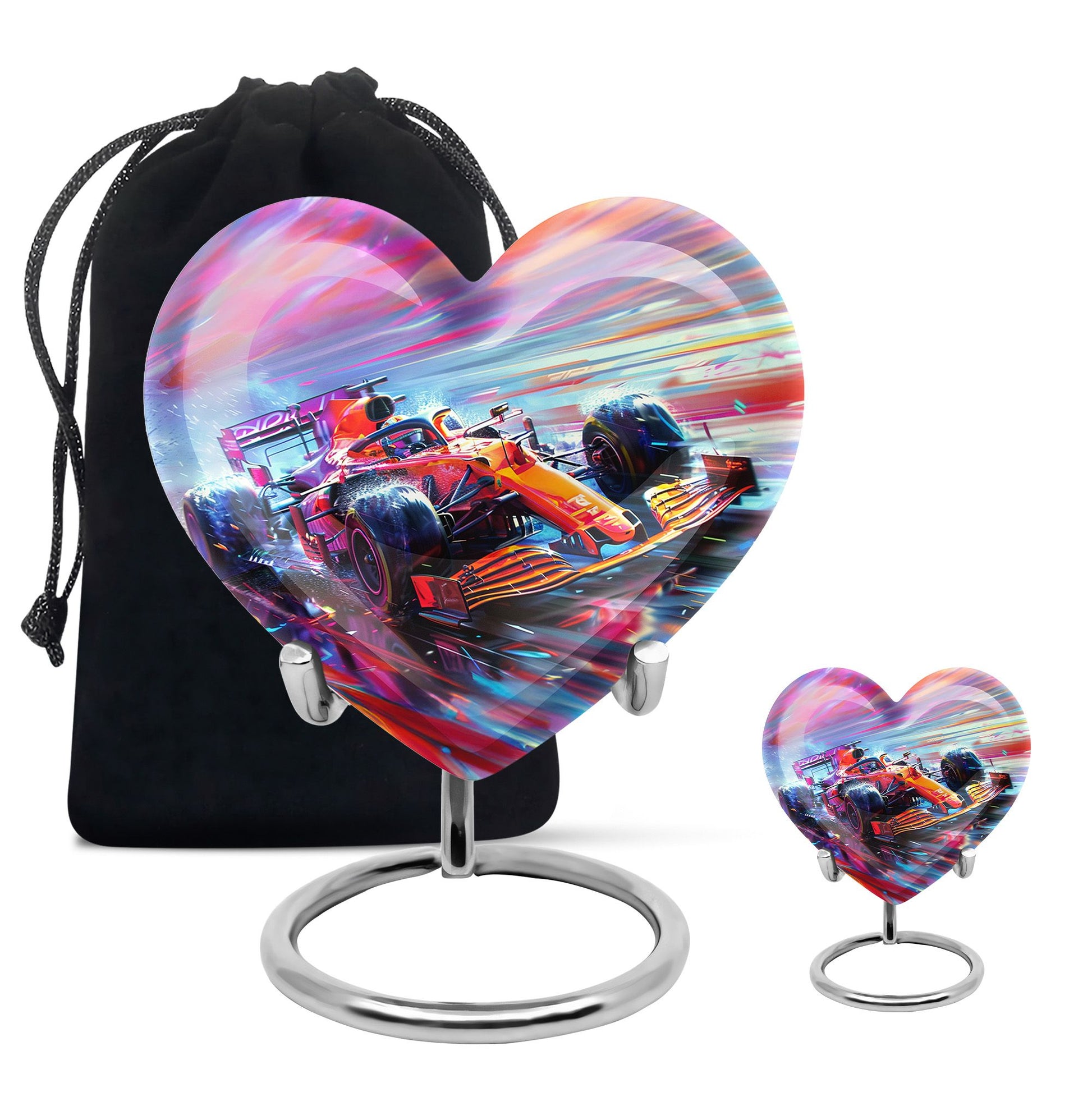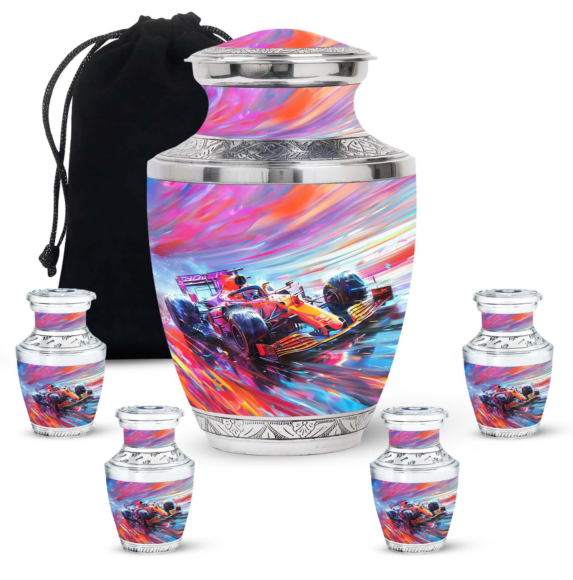 The **Hyperdrive Racing Chaos Urn** embodies the **pulse-pounding intensity of street racing, neon-lit highways, and the rush of acceleration, symbolizing adventure and an unbreakable will**.