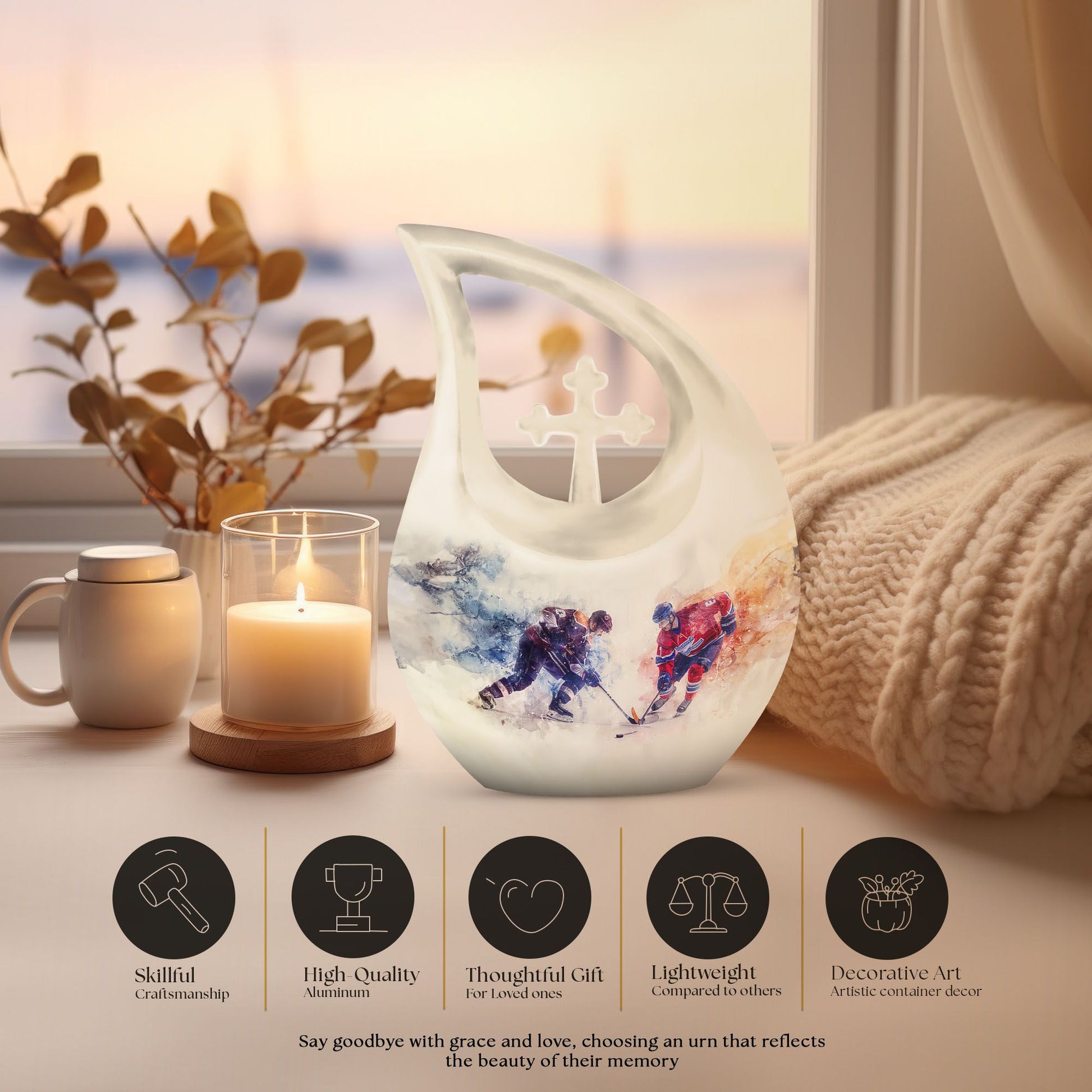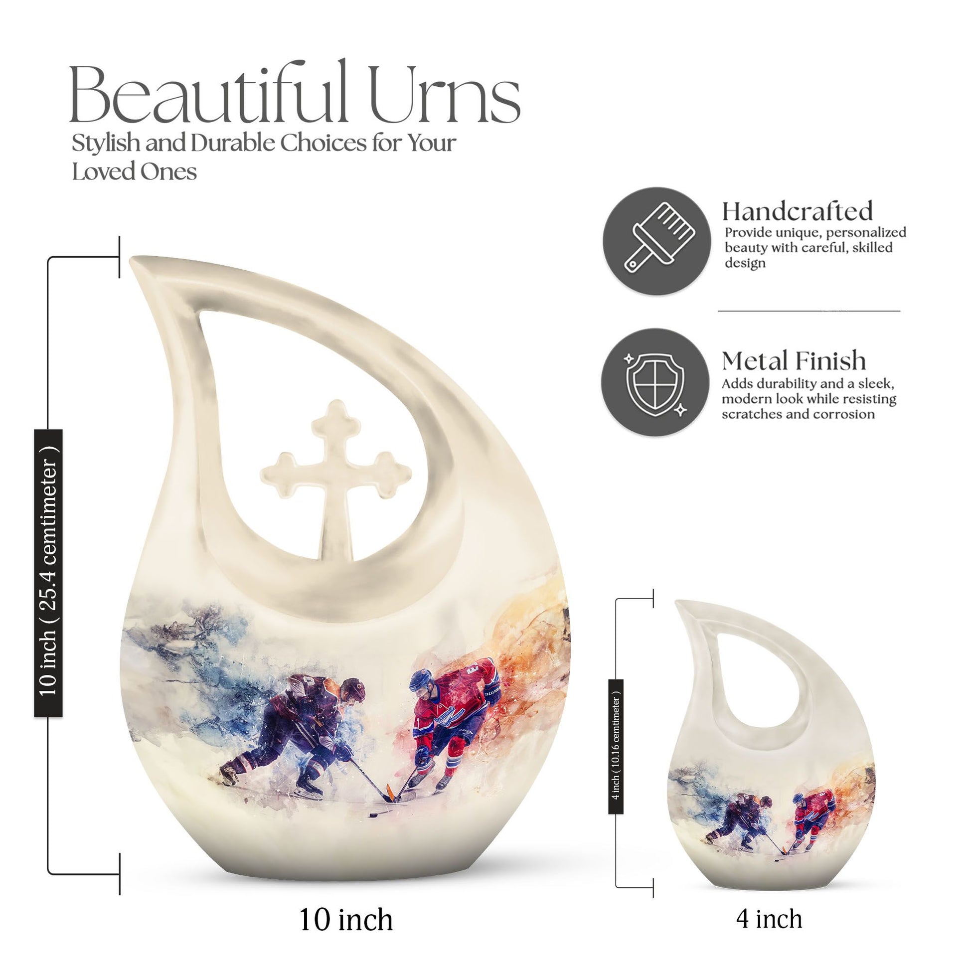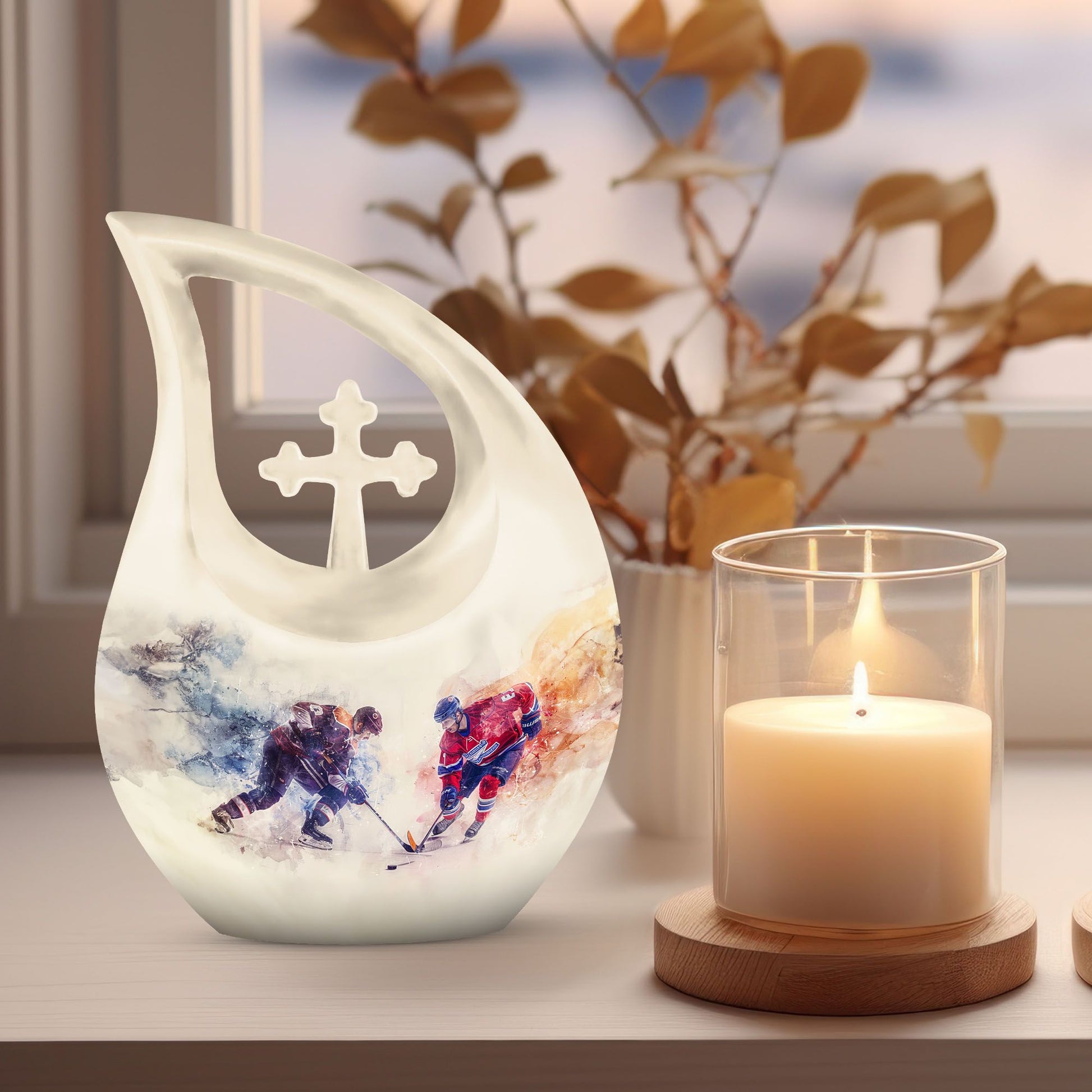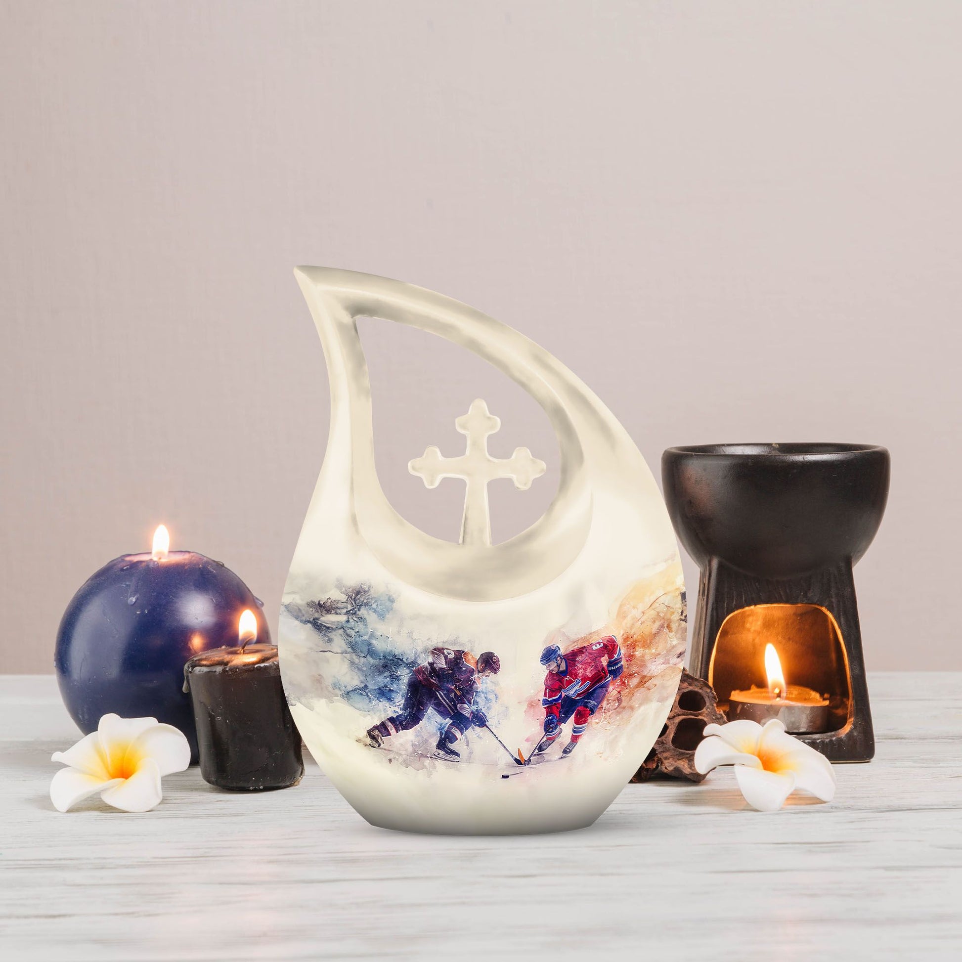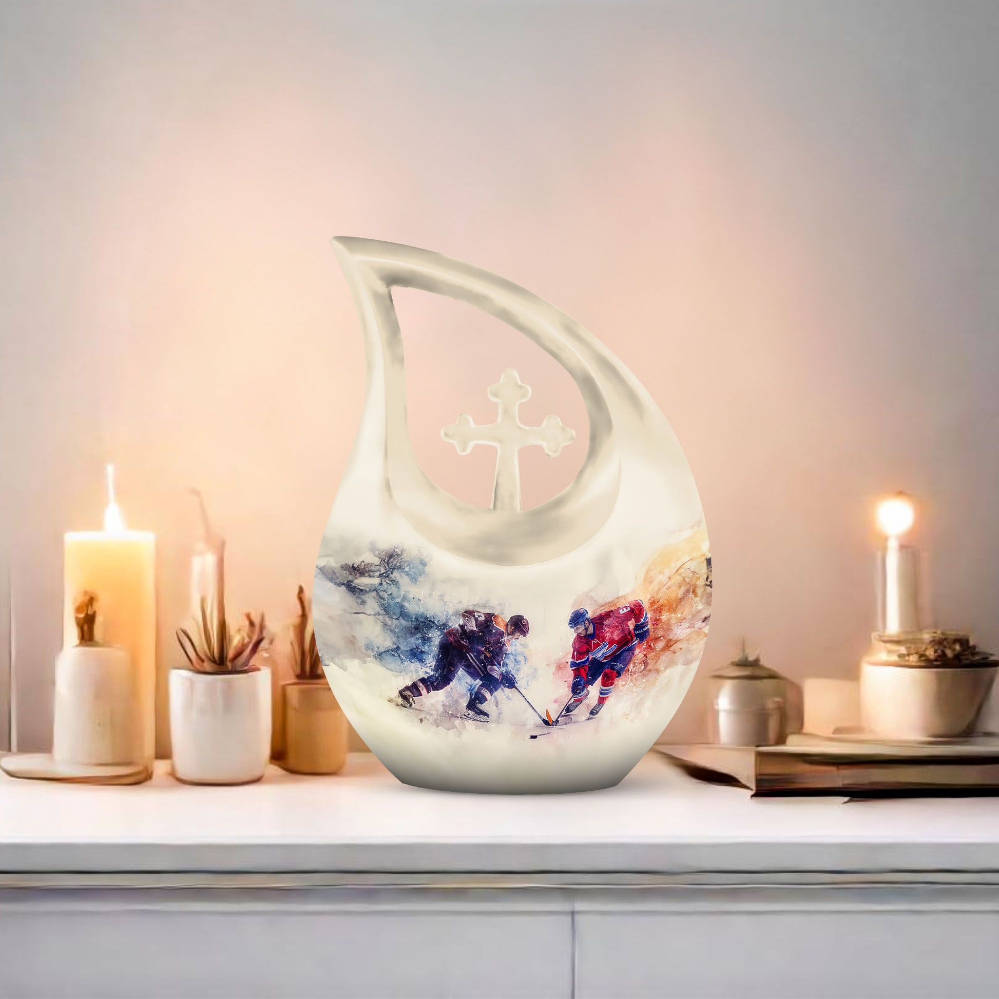 A heartfelt and meaningful tribute, this Hockey Cremation Urn offers families a dignified way to honor a beloved adult. Thoughtfully crafted, it brings comfort to those seeking funeral urns for human ashes, funeral urns for adult ashes women, or a memorial that reflects passion, strength, and cherished memories.
