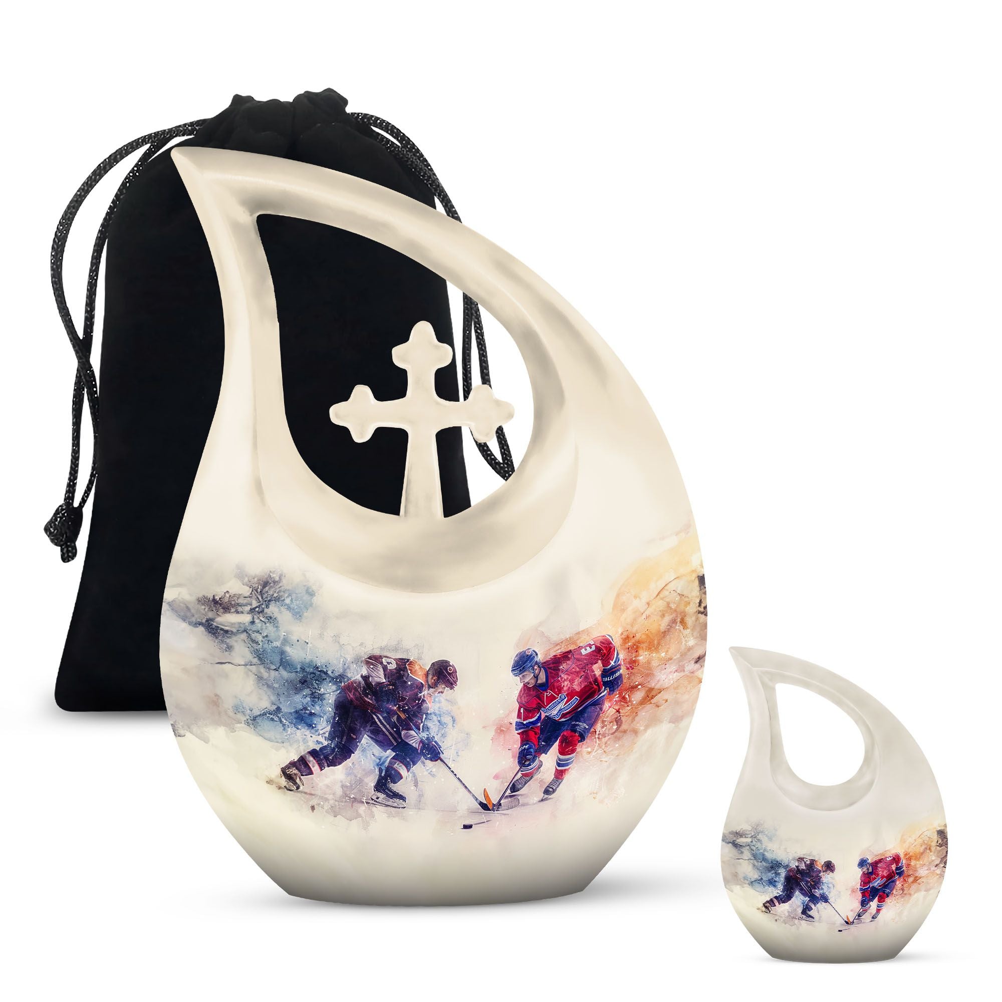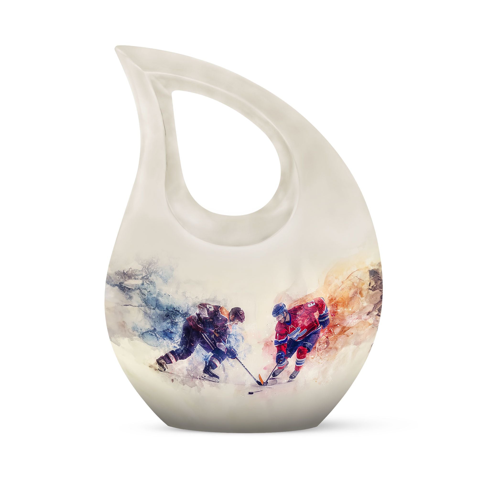 A heartfelt and meaningful tribute, this Hockey Cremation Urn offers families a dignified way to honor a beloved adult. Thoughtfully crafted, it brings comfort to those seeking funeral urns for human ashes, funeral urns for adult ashes women, or a memorial that reflects passion, strength, and cherished memories.