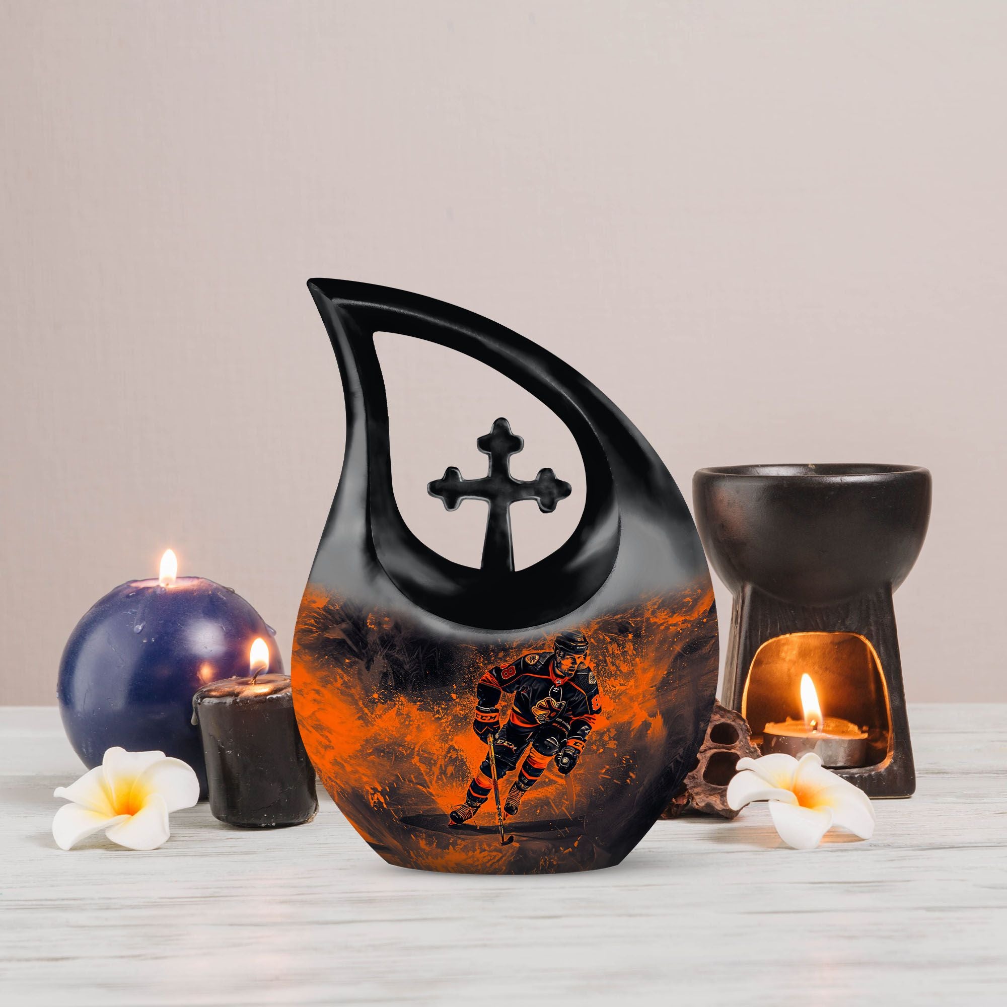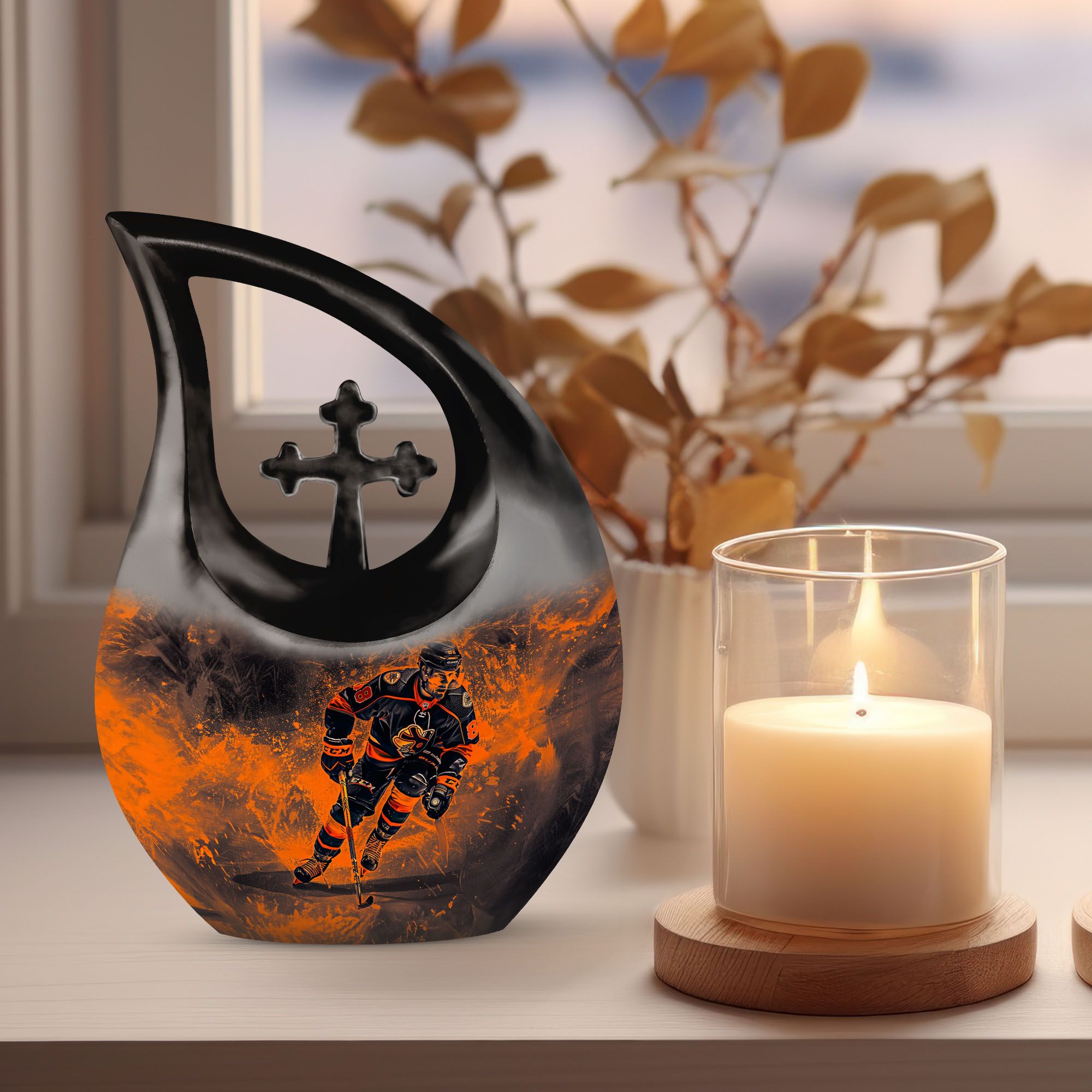 The Ice Hockey Memorial Urn offers a meaningful way to honor a cherished sports lover, providing comfort for families seeking funeral urns for adult ashes men or cremation urns for adult ashes women. Designed for both male and female memorials, it brings a sense of strength, passion, and remembrance.