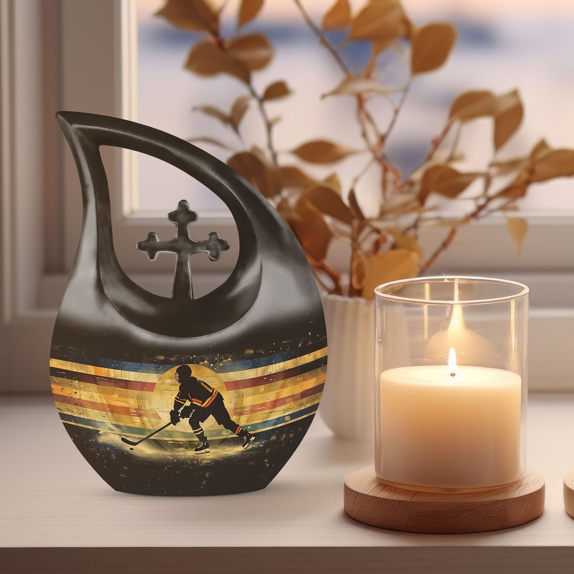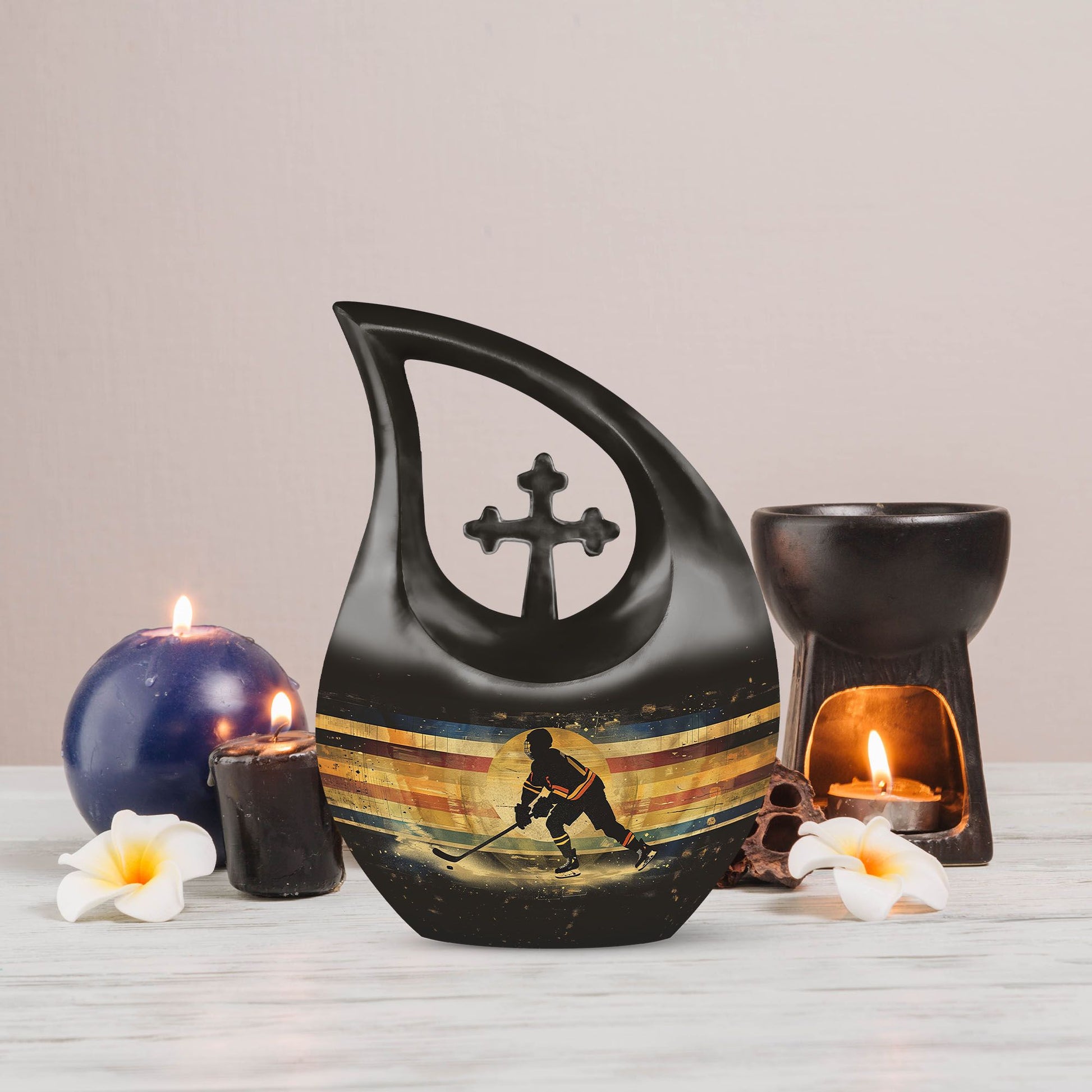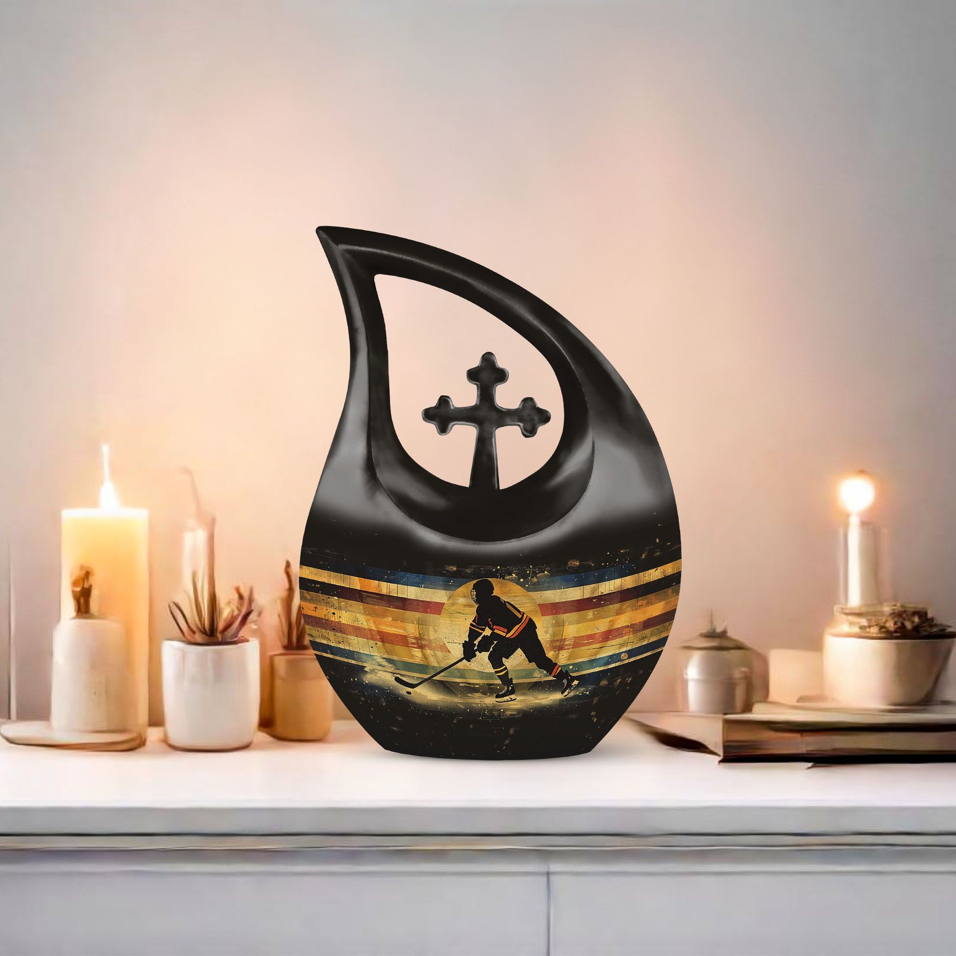 A meaningful and heartfelt tribute, this Ice Hockey Memorial Urn offers a comforting way to honor a cherished adult. Thoughtfully crafted, it provides peace and remembrance for families seeking an urn cremation keepsake, small urns for cremation ashes, or a symbolic keepsake cremation urn for human ashes.