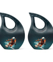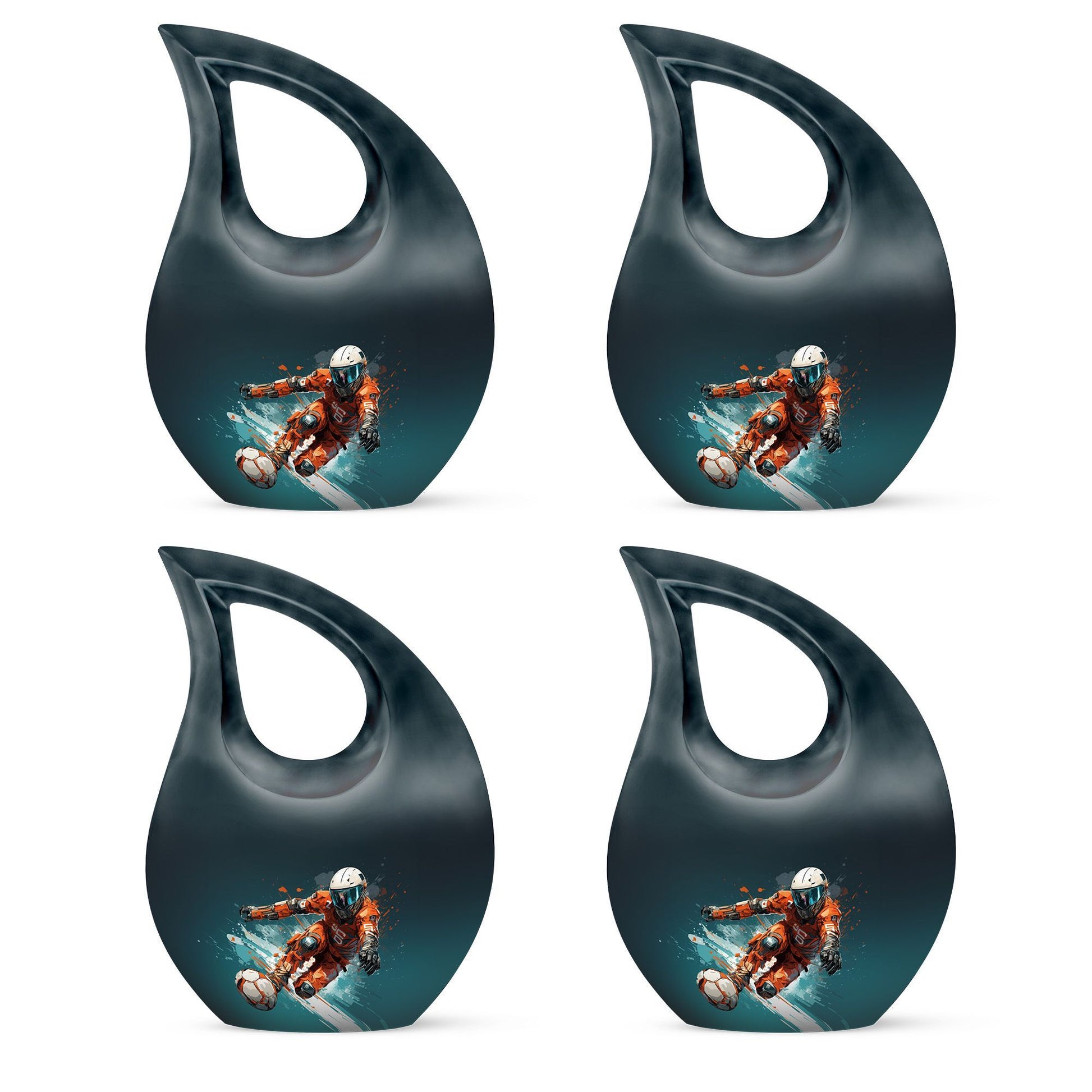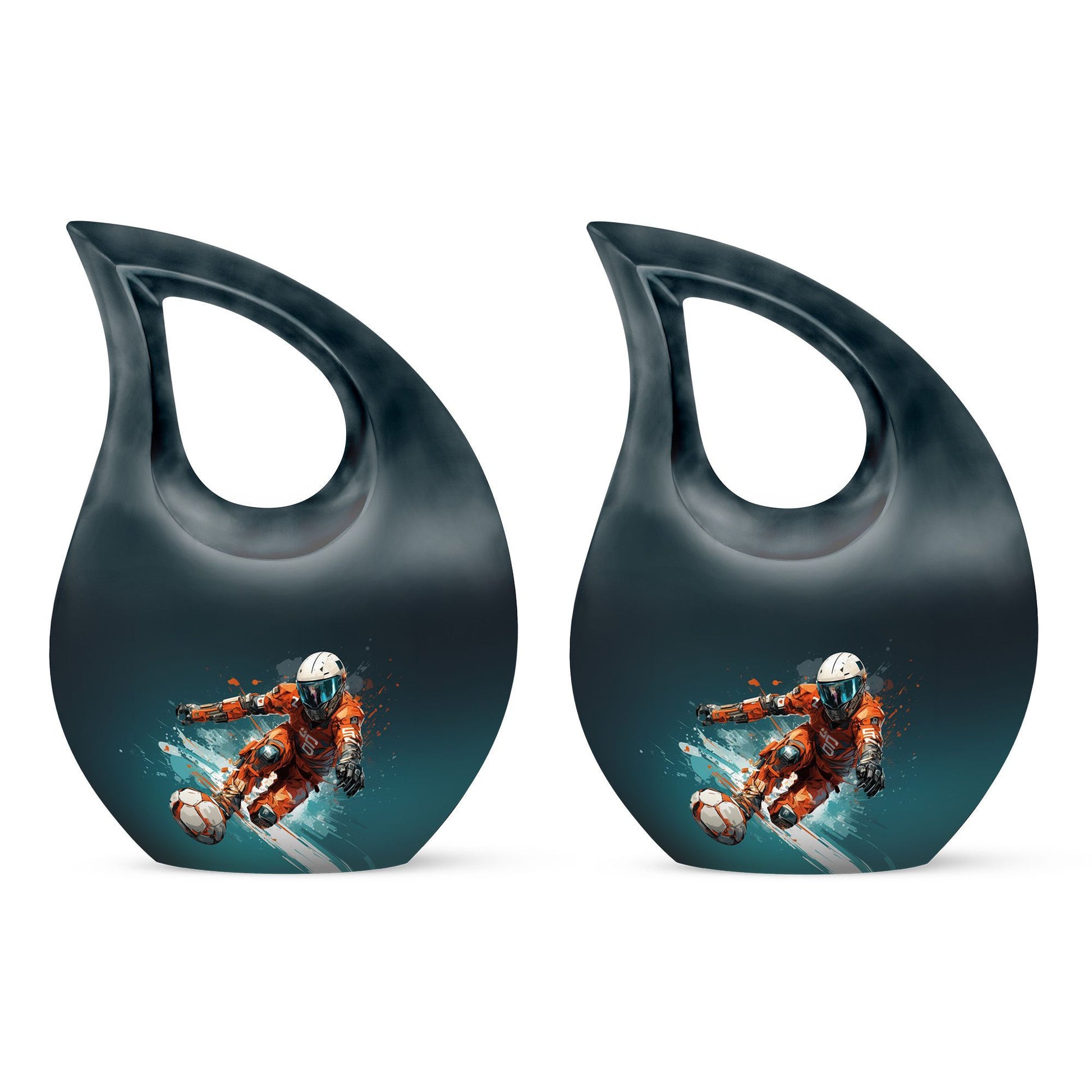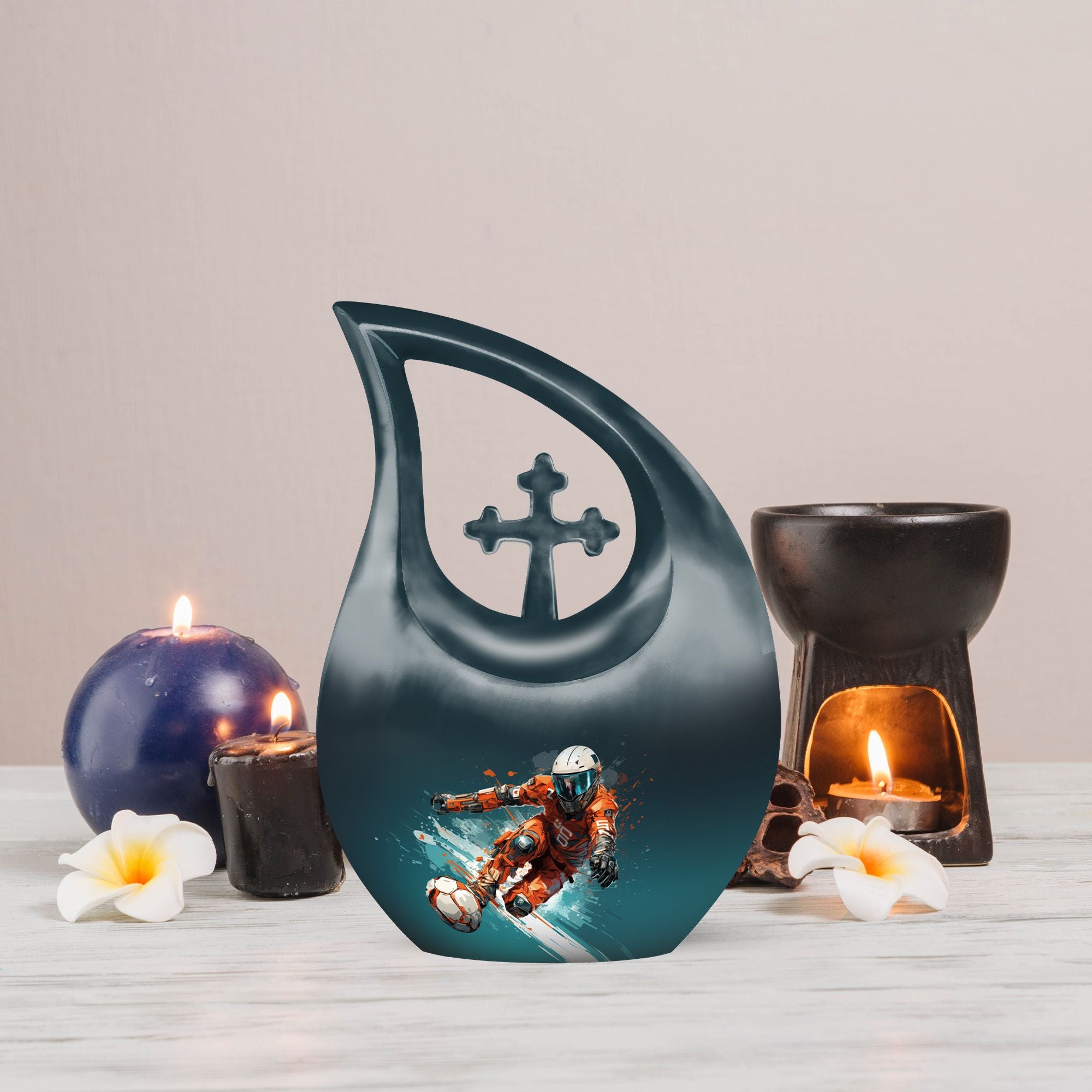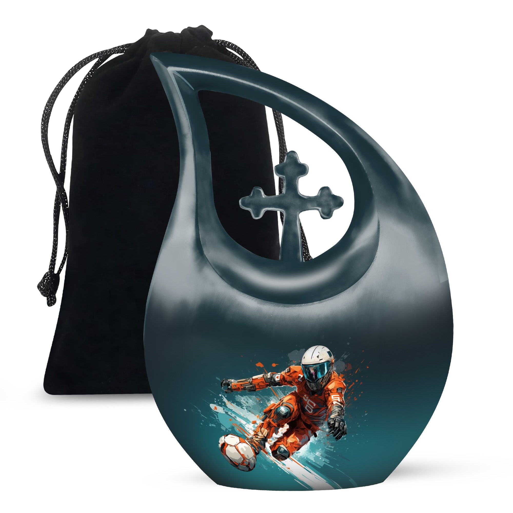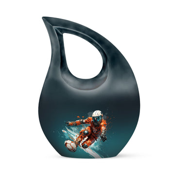 This urn can be complemented with matching keepsakes, allowing multiple family members to hold a symbolic portion of ashes. Its bold athletic design offers comfort, pride, and a meaningful connection to the personality and passions of your loved one.