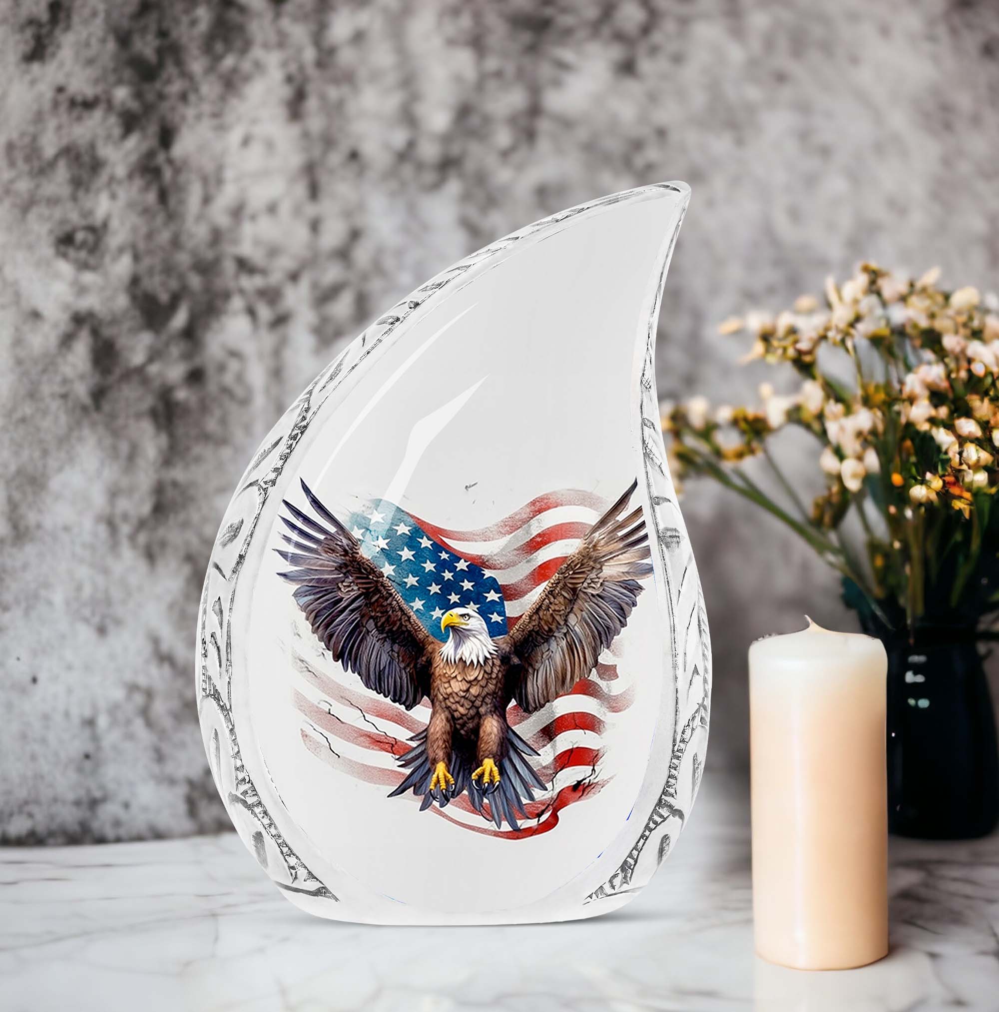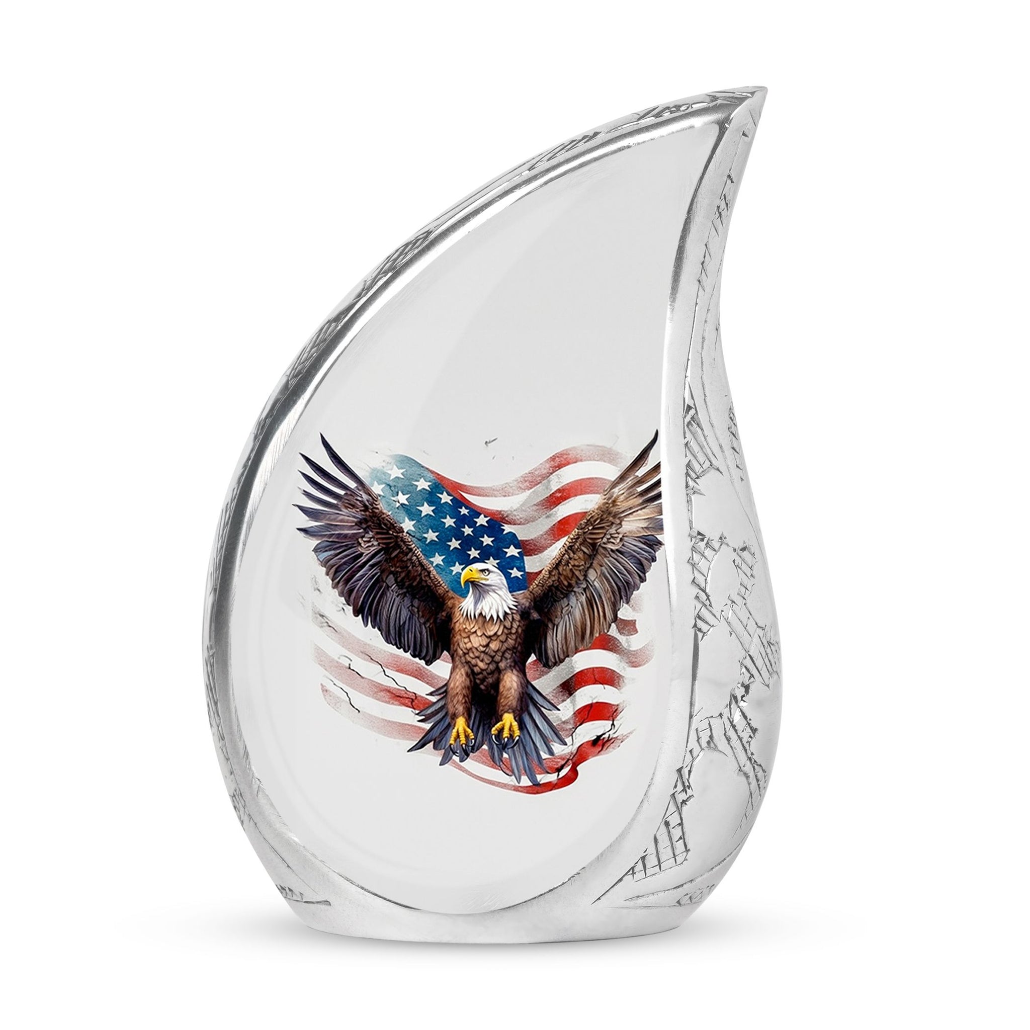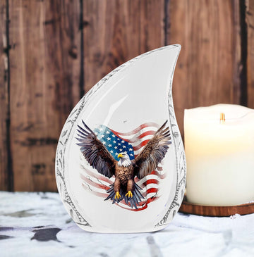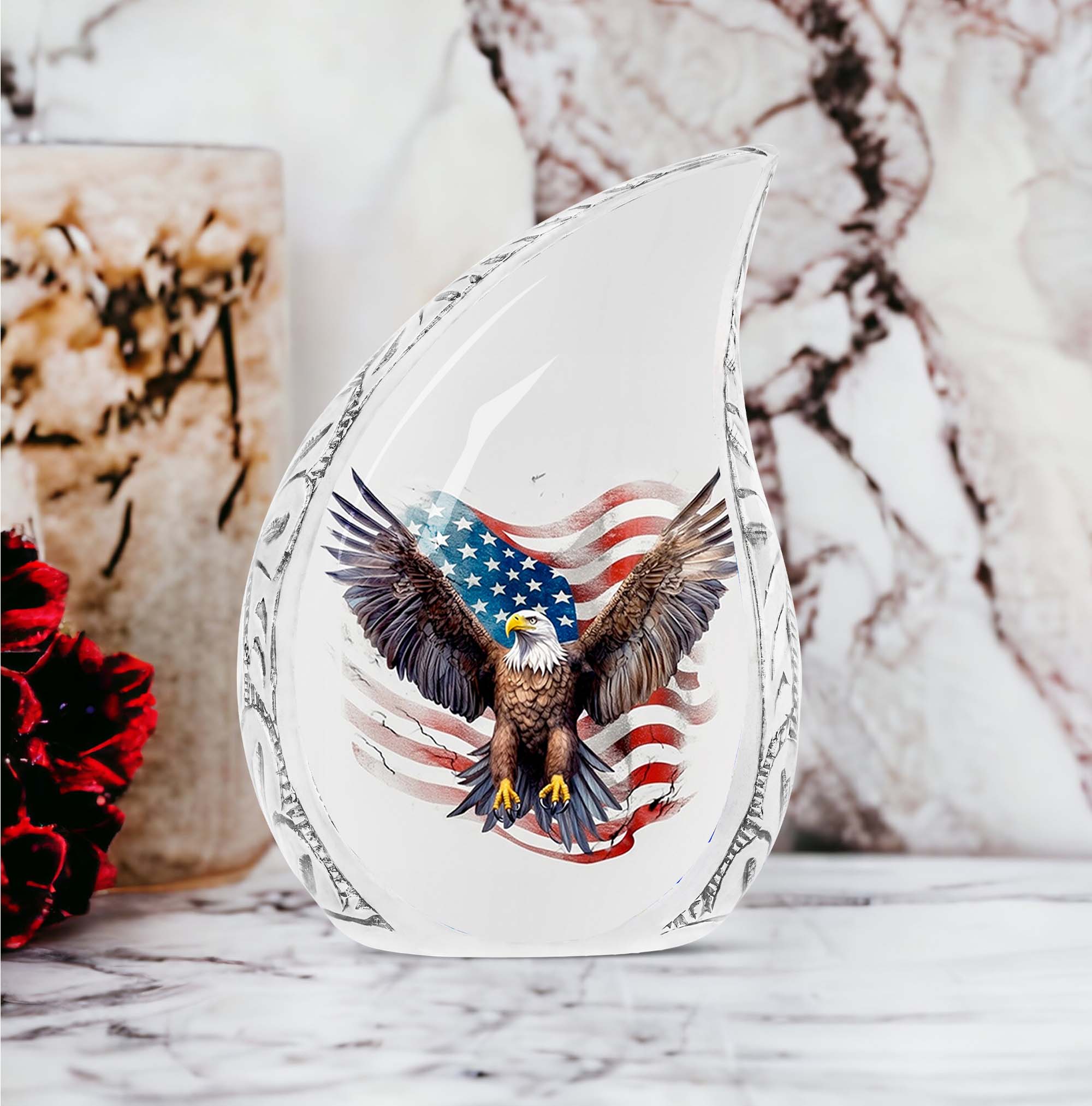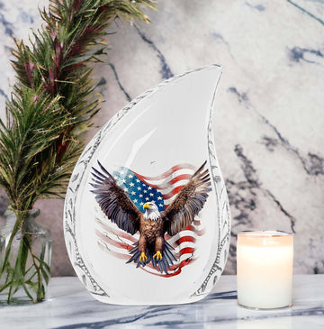 Elegant and dignified, the Eagle Urn pays homage to those who loved classic beauty with a deep respect for tradition. This Large, custom urn is crafted from high-quality aluminium, evidenced by its substantial weight of 3.3 pounds. It stands tall at 10 inches in height and can easily accommodate 200 cubic inches of cremated remains, ensuring a respectful resting place for your loved ones. This personalized urn is ideal for human ashes and can uniquely become a cherished memorial for Dad. Its seashell-large form is kept safe within a luxurious velvet pouch to contain the ashes securely. The urn offers an additional touch of sentiment, with the option to personalize it with engraved names, adding a beautiful yet modest tribute to the memory of loved ones. Opt for this classic urn if you're searching for memorial urns that encapsulate timeless elegance alongside the sentimental value. An ideal choice for customers looking for urns for human remains or decorative urns for ashes that are both dignified and endearing.