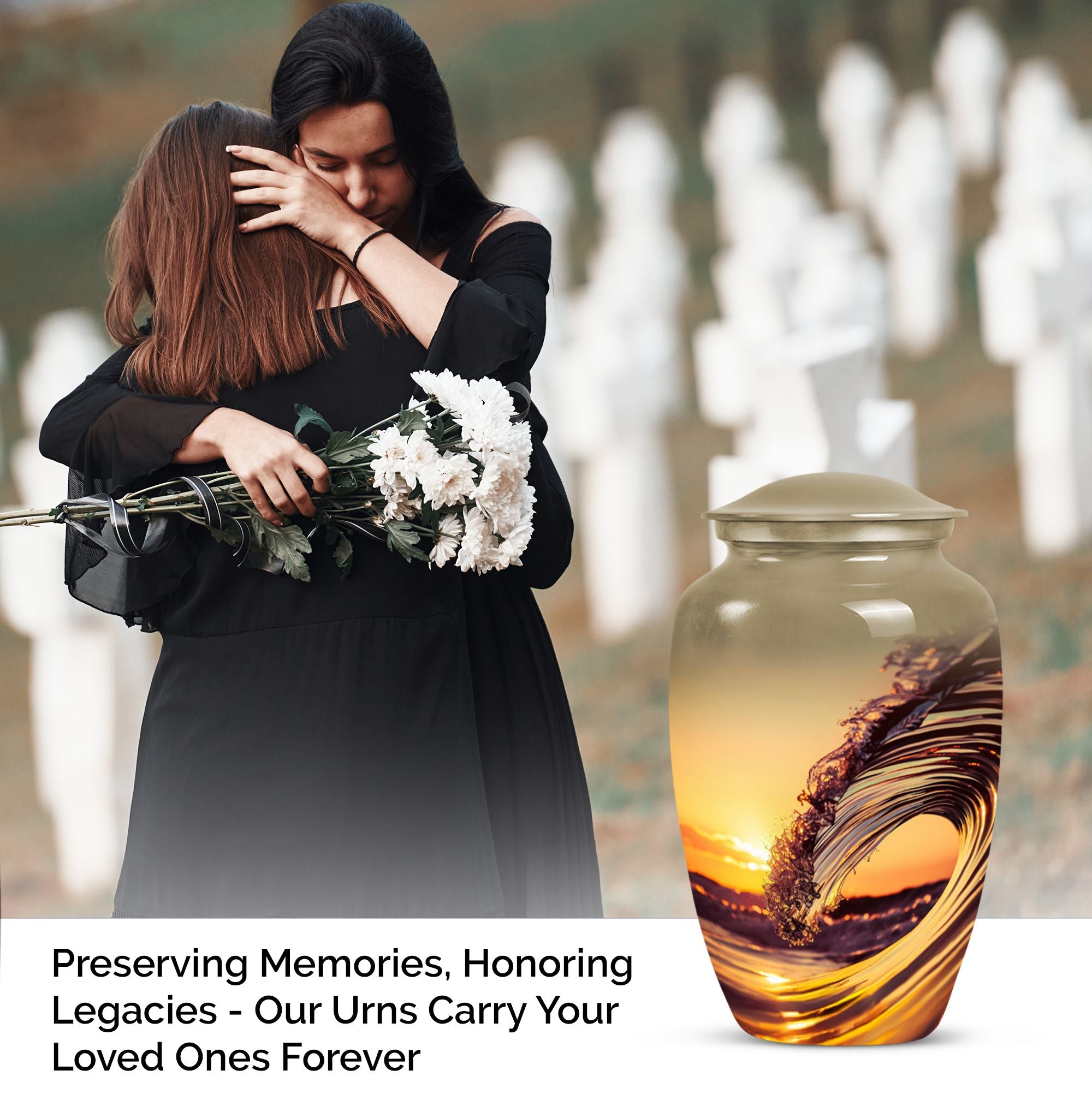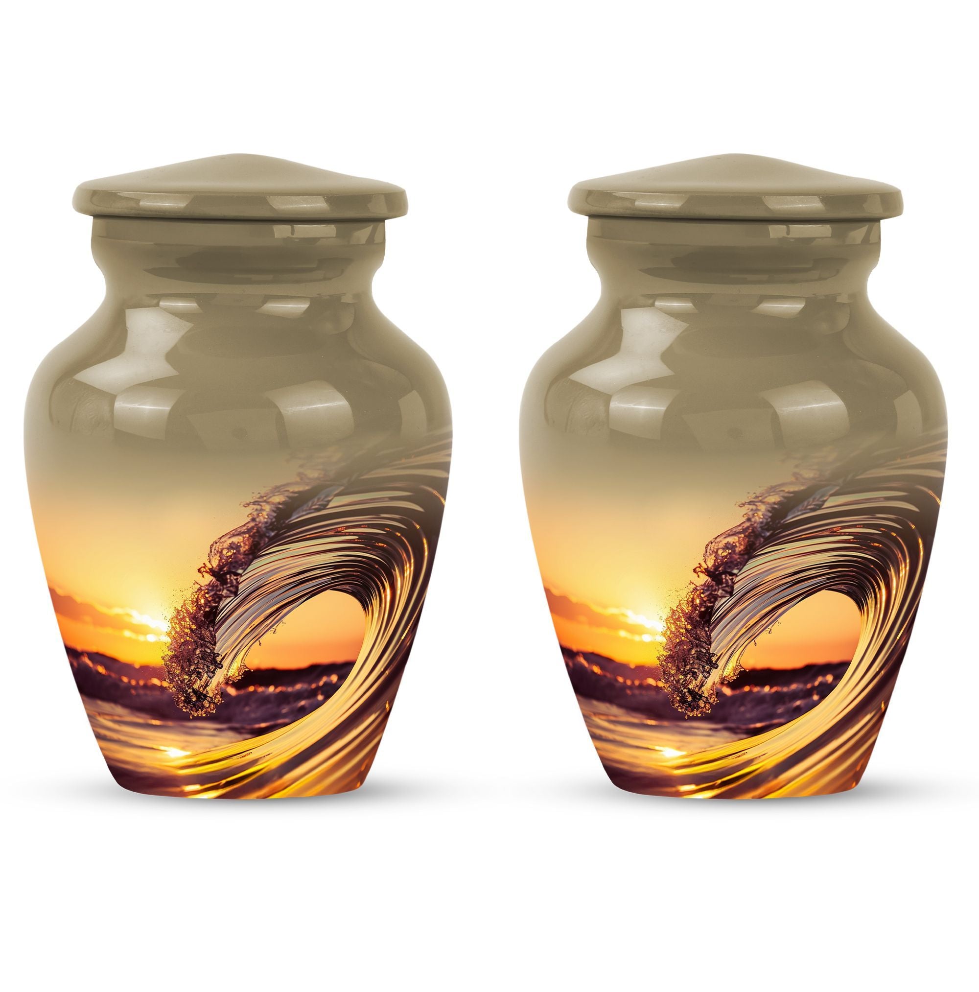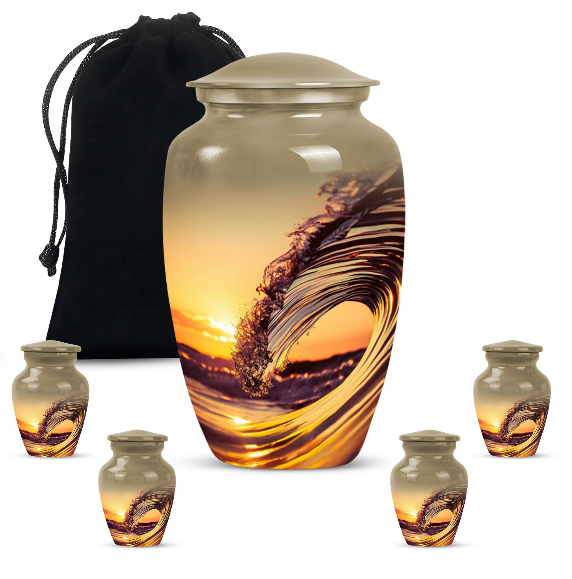 Immerse in serene memories as you embrace the final resting place of your beloved one with this 'Ocean Waves Urn'. This cremation urn is more than a vessel; it's a commemorative piece, meticulously crafted out of aluminium, showcasing an enduring appeal. It is accentuated with a Butterfly theme that adds a symbolic touch of transformation and new beginnings. This large urn, prudently sized at 10 inches in height, can accommodate up to 200 cubic inches, making it apt for adult or senior cremation. It weighs 3.3 pounds, symbolizing a tangible connection with your loved one. The urn comes with a velvet pouch, offering a gentle enclosure for the ashes. With a provision for personalizing with engraved names, the urn preserves your dear one's memory in a truly special way. This cremation large urn resonates with the tranquility of ocean waves, offering a soothing tribute. Let the 'Ocean Waves Urn' serve as a heartfelt reminder of a life well-lived, making a fitting choice among burial ashes urn, human ash urns, funeral urns and all types of cremation urns for human ashes.