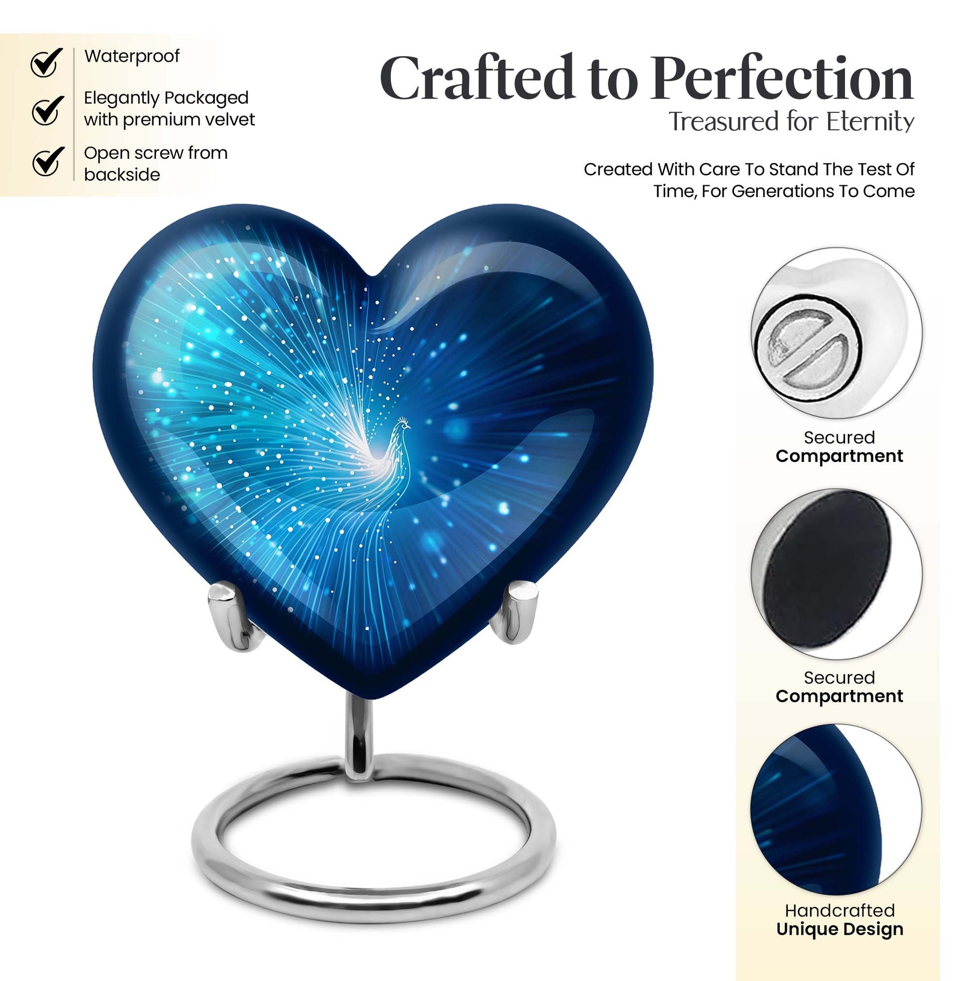 Introducing an exceptional commemoration artifact, our exquisite chicken urn, an enduring tribute to your beloved mom. A prominent feature of this funeral urn is its heart-shaped design, fostering a beautiful, sentimental homage. Enhanced by a floral theme, its beauty amplifies, making it perfect for a serene memorial atmosphere. Crafted with unrivaled precision from robust aluminium, this large cremation urn measures 10 inches in height with an impressive weight of 3.3 pounds. Notably, this cremation urn is spacious enough, featuring a capacity of 200 cubic inches, ensuring complete containment of ashes. To further personalize this tribute, an engraving option is available, allowing you to etch cherished names marking a distinct exclusivity. As part of the package, a velvet pouch accompanies this urn, ensuring secure ash containment. Ideally suited for those searching phrases like 'memorial adult urn', 'human urn ash adult', 'earns for ashes', or 'custom cremation urns' in their quest for a perfect tribute. Acquire our meticulously crafted urn, store your cherished memories with reverence.