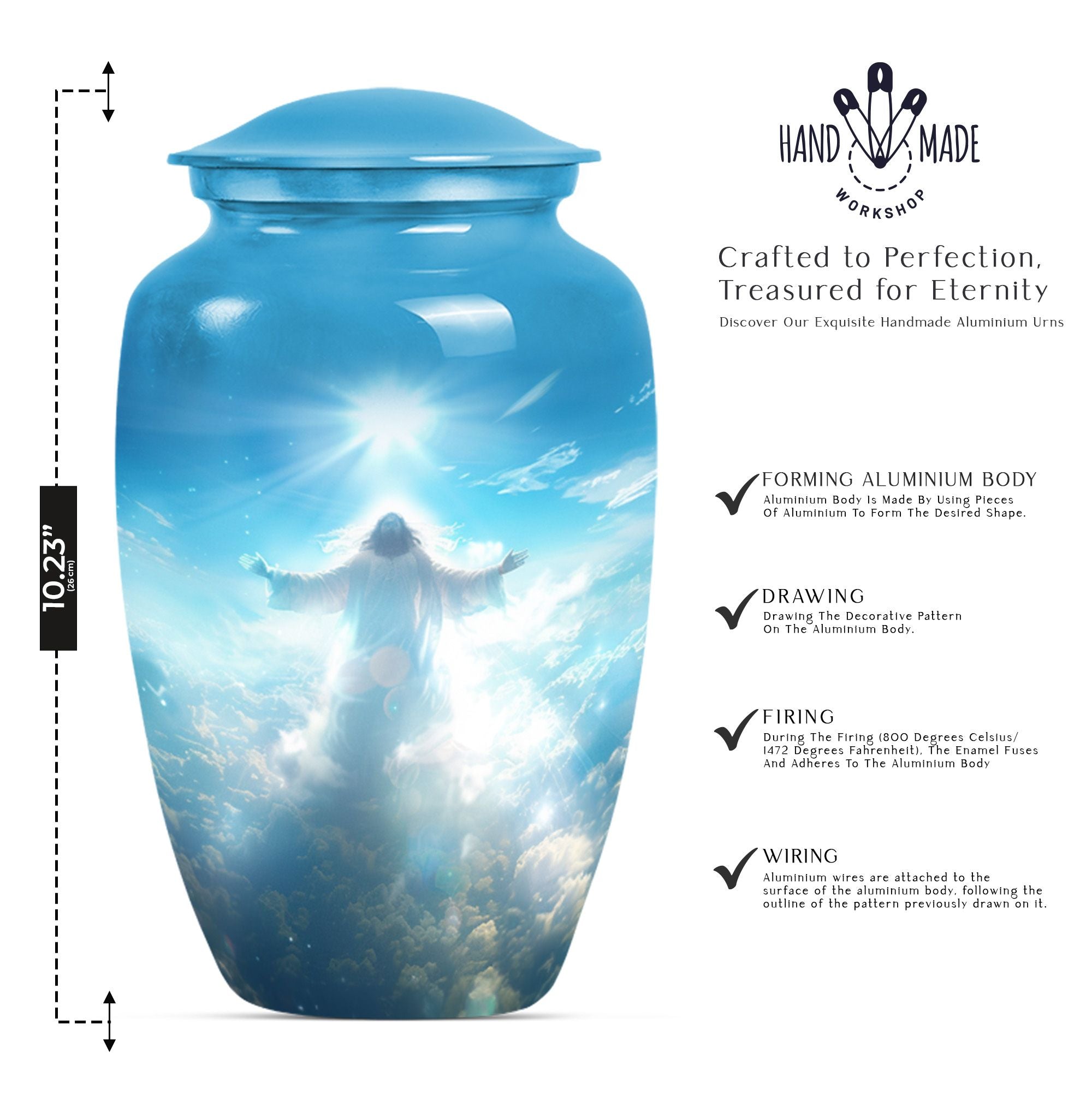 The Jesus Cremation Urn is a timeless symbol of faith and remembrance, designed to hold your loved one’s ashes with grace and dignity. Whether you are looking for urns for ashes adult male or urns for ashes adult female, this piece offers a heartfelt way to preserve memories while reflecting love and devotion.