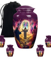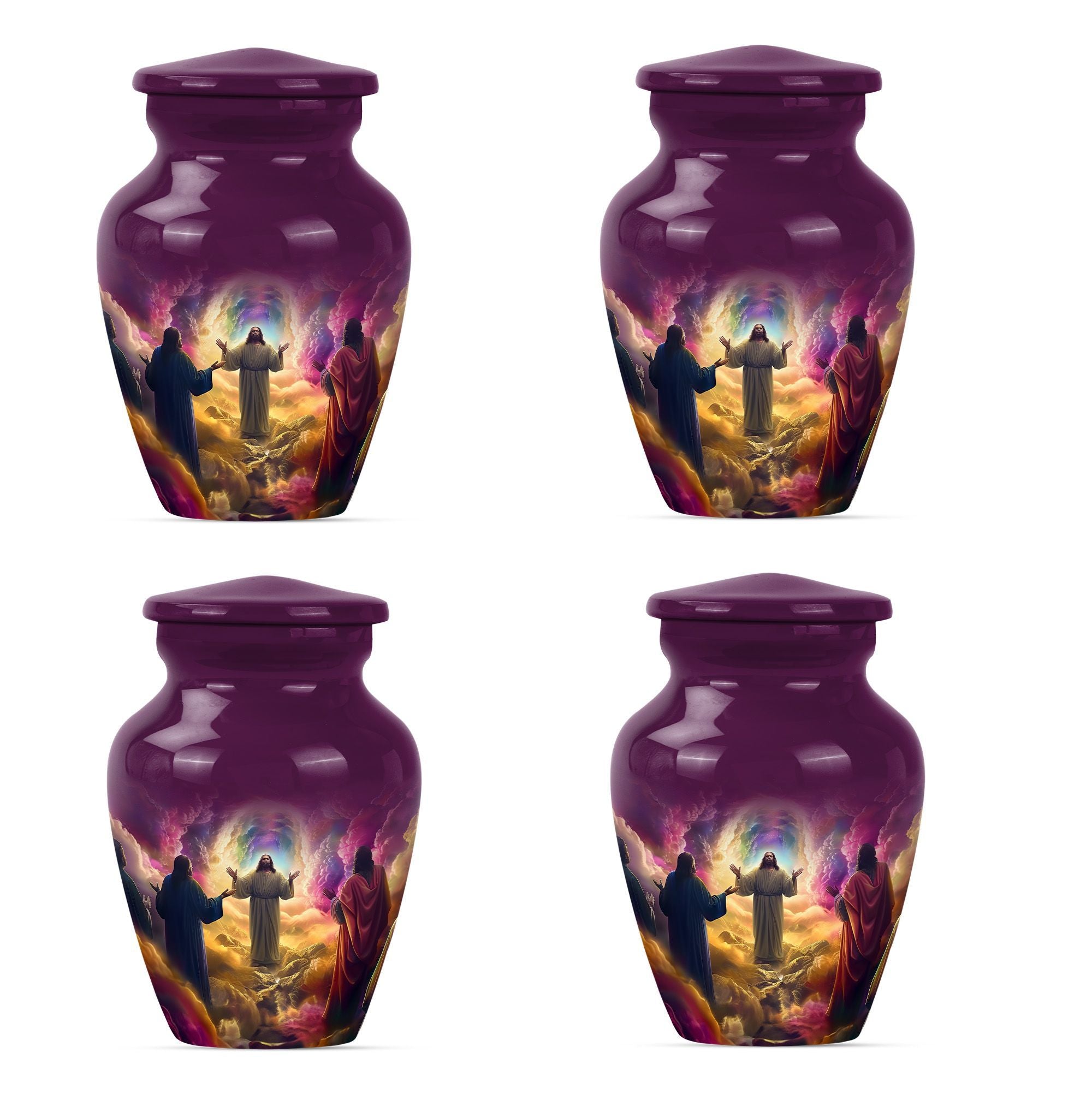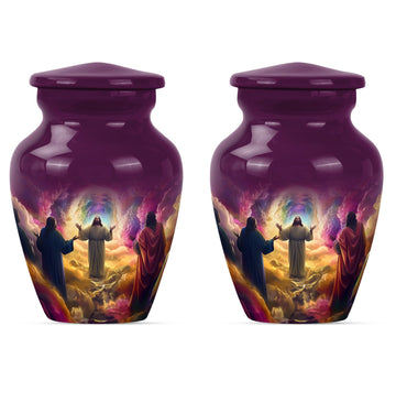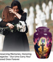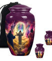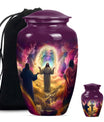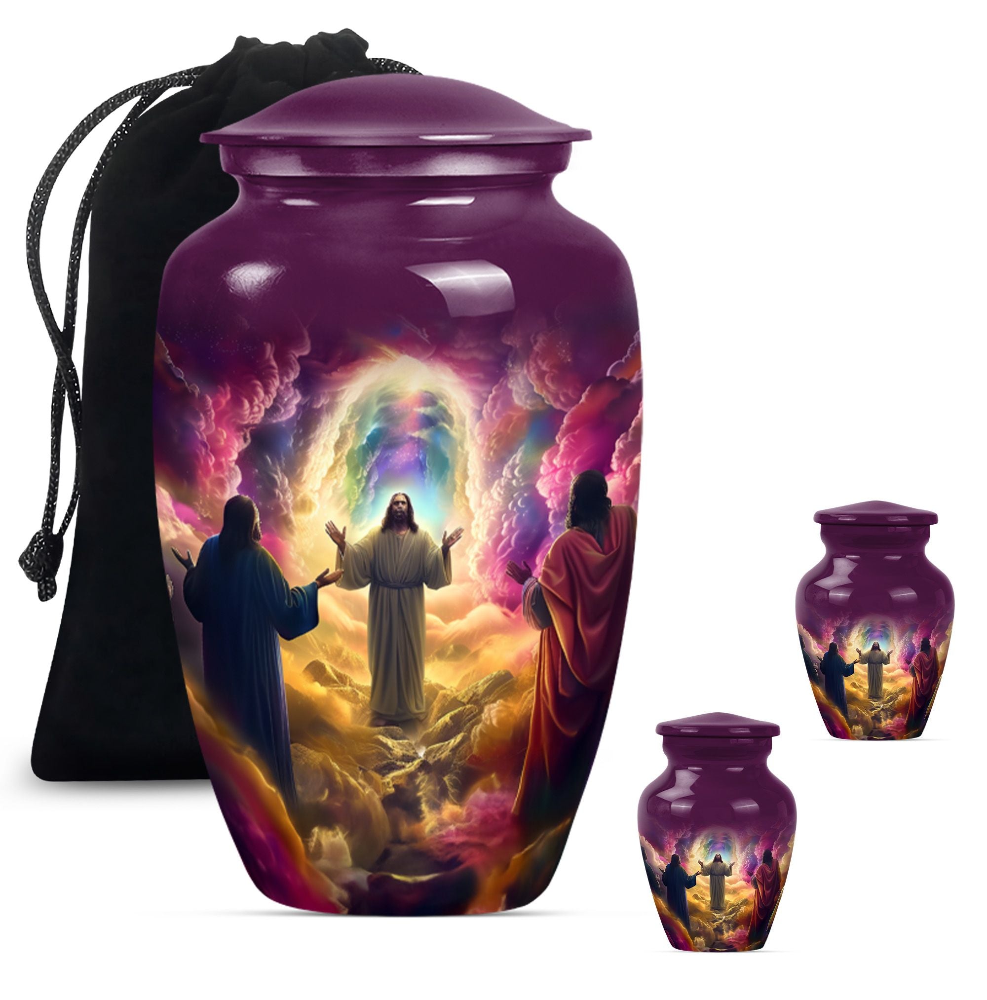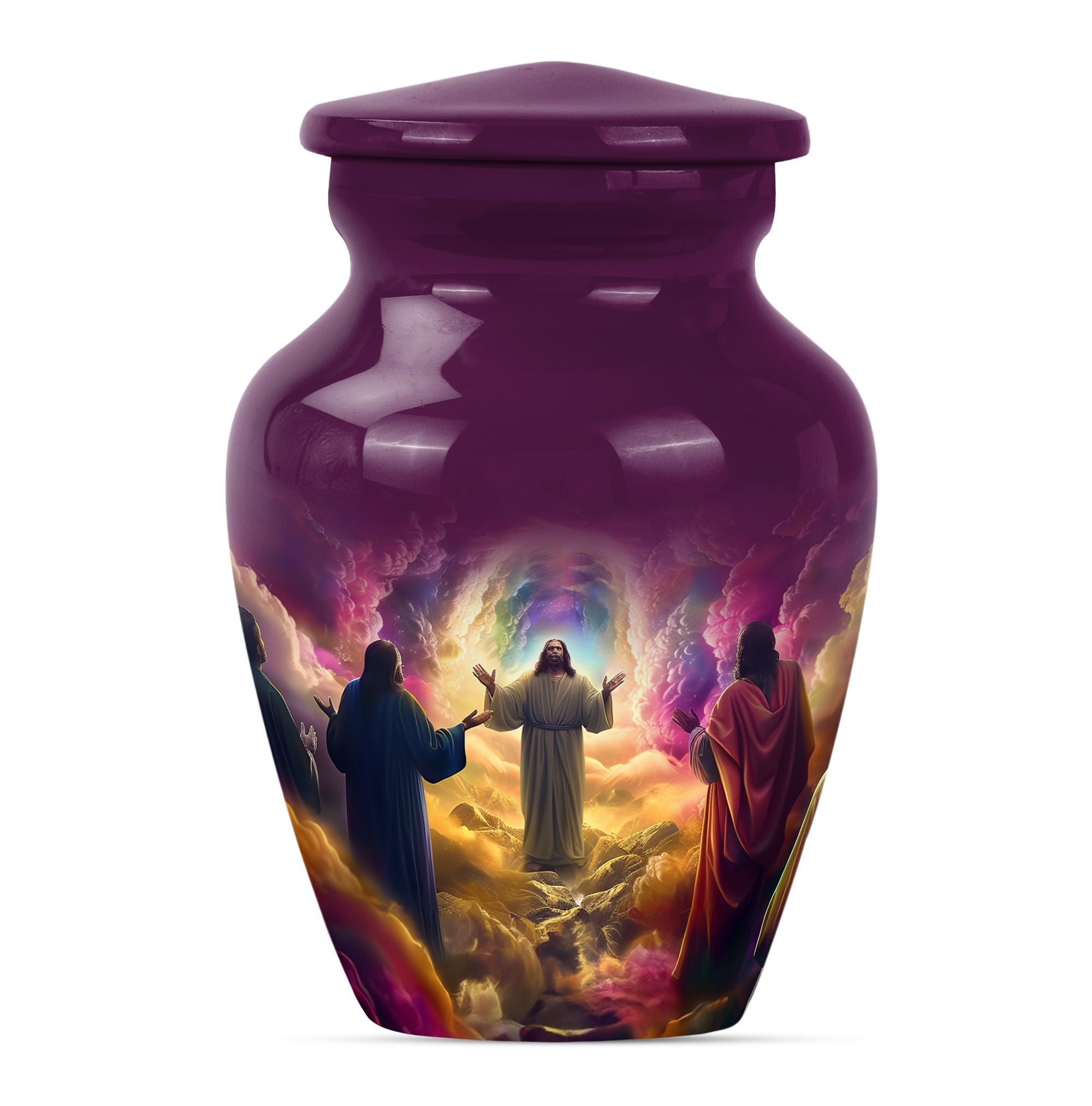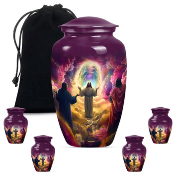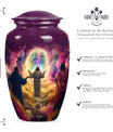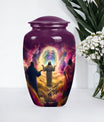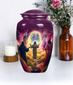 This 10 Inch Jesus Urn is a profound and meaningful piece to pay respect to a beloved departed. Built from high-grade aluminium, the large urn is sturdy and weighs a mere 3.3 pounds, making it manageable yet resilient. Its abstract theme lends it a unique appeal; an understated, non-traditional charm, dear to the sensibilities of many. This cremation urn can hold up to 200 cubic inches of ashes, and comes with a velvet pouch for containment and respectful handling of the remains. Being one of the select cremation funeral urns offering personalization, it allows engraving names to make the urn exclusive to your loved one. No two goodbyes are the same, and this urn appreciates that. This product is aptly poised in the memorial urns category assuring quality and thoughtfulness that elevates your memorium. Whether you're looking for funeral decorative urns or just an urn for ashes, this product rises to the occasion as a meritorious choice.