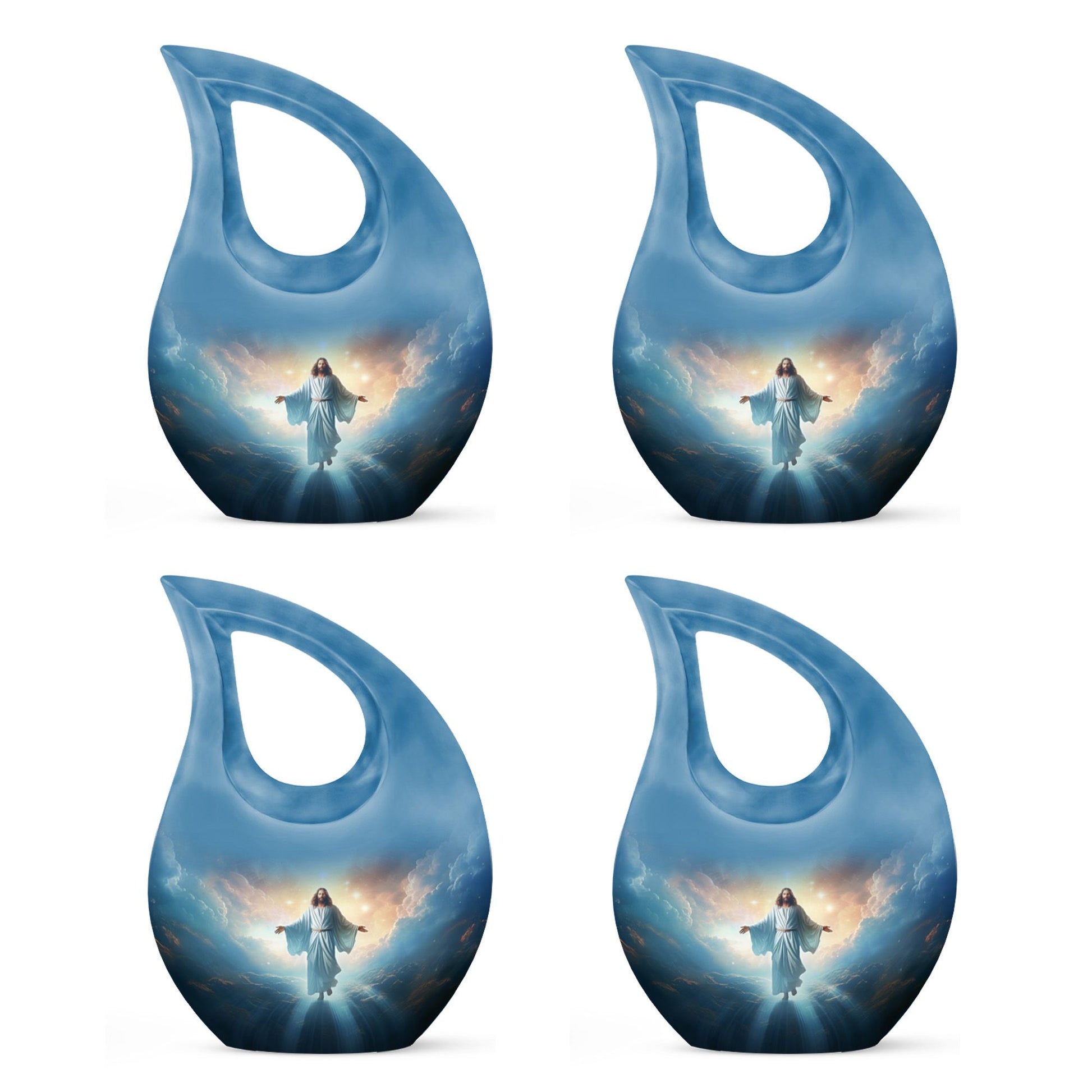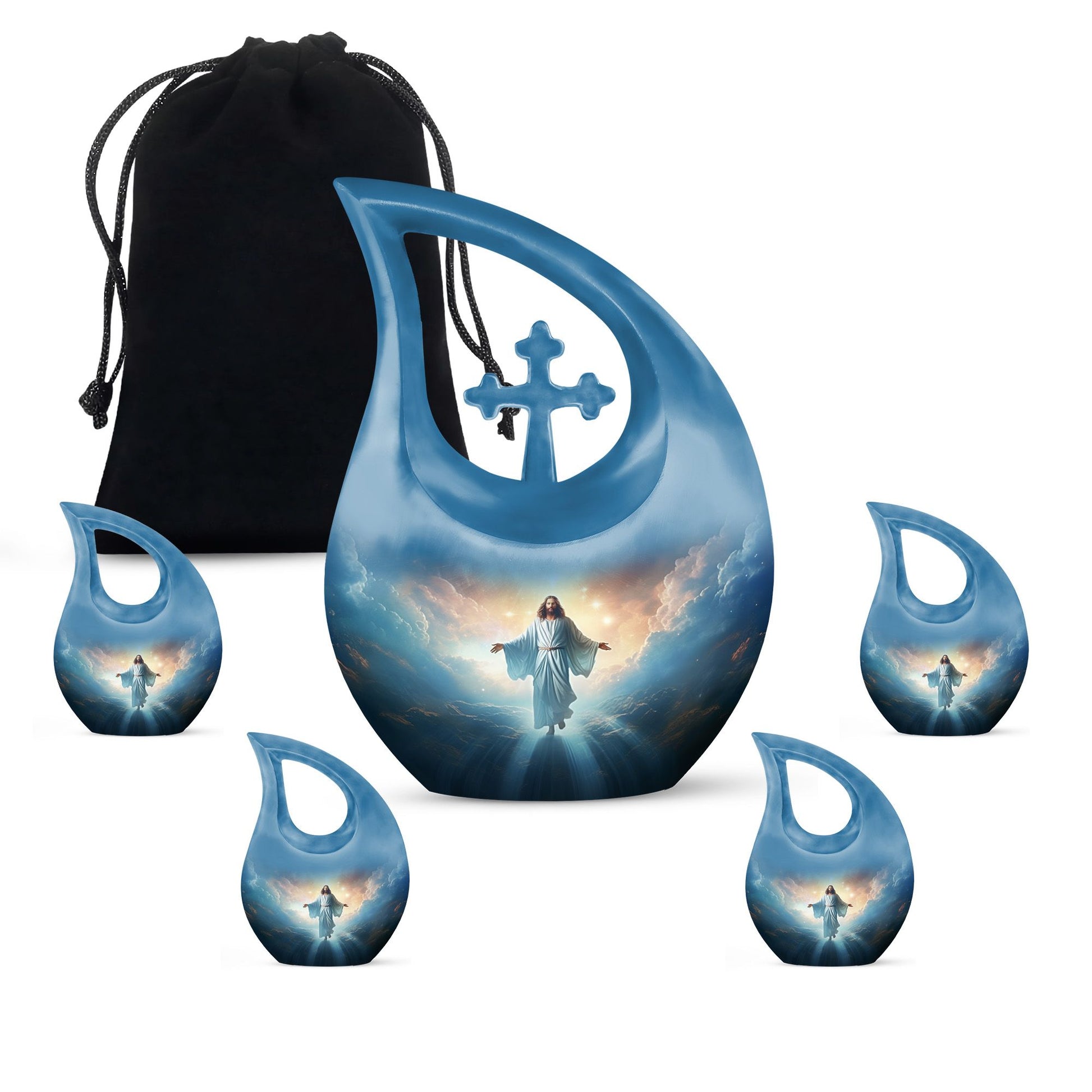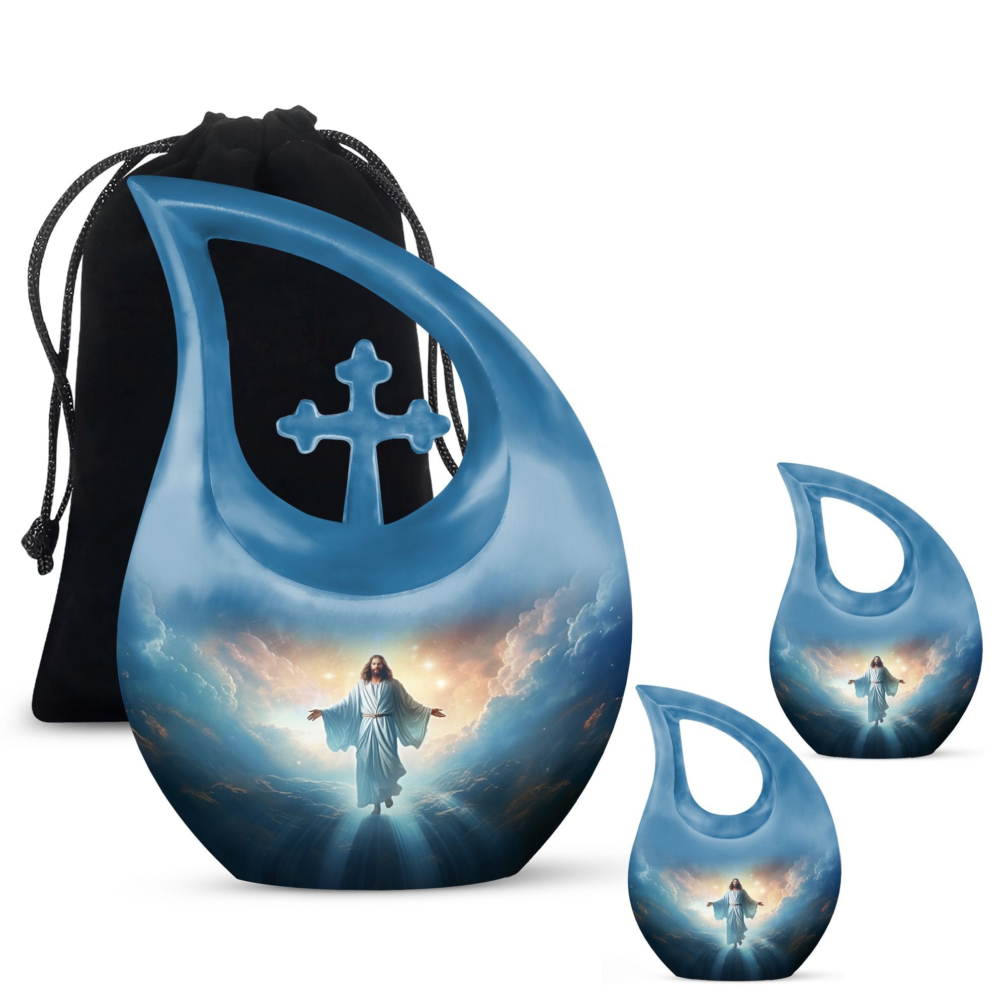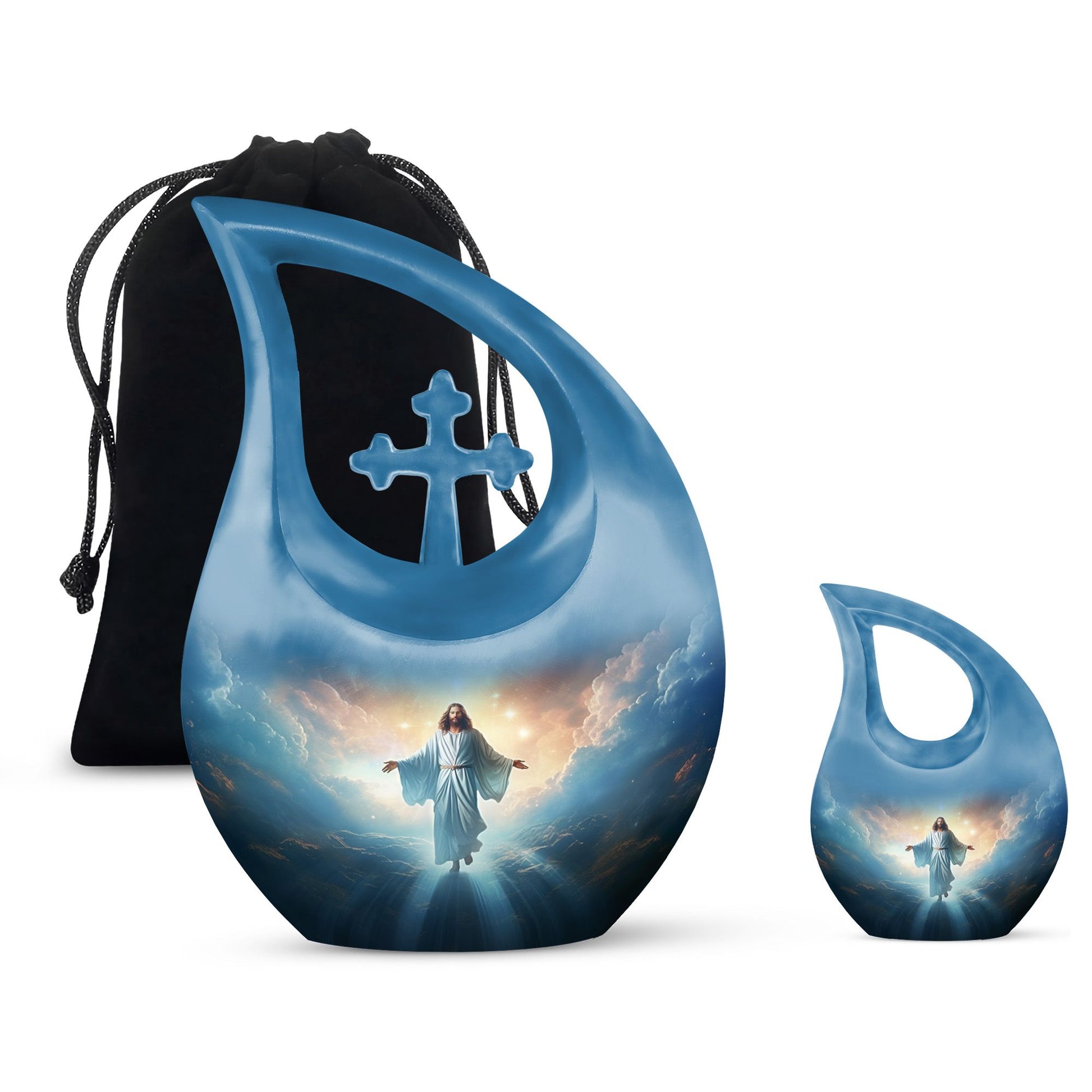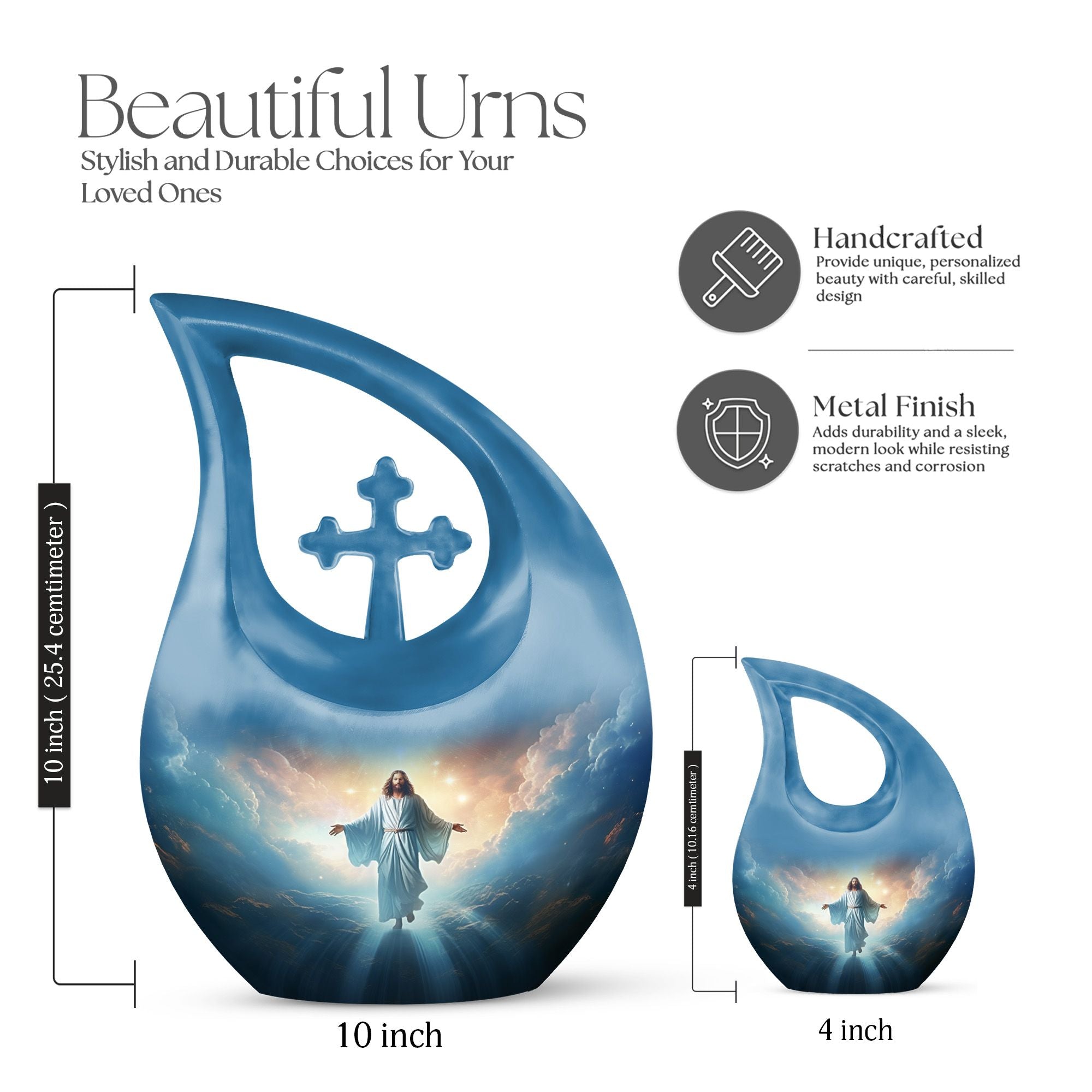 Celebrate a life of faith and devotion with the Jesus-Themed Aluminium Commemorative Urn – Blue Urn for Humans. Designed to symbolize peace, hope, and eternal love, this memorial piece is perfect for families seeking an urn for ashes for men or a meaningful tribute among funeral urns for women. The serene blue tones reflect comfort and spiritual strength during times of remembrance.