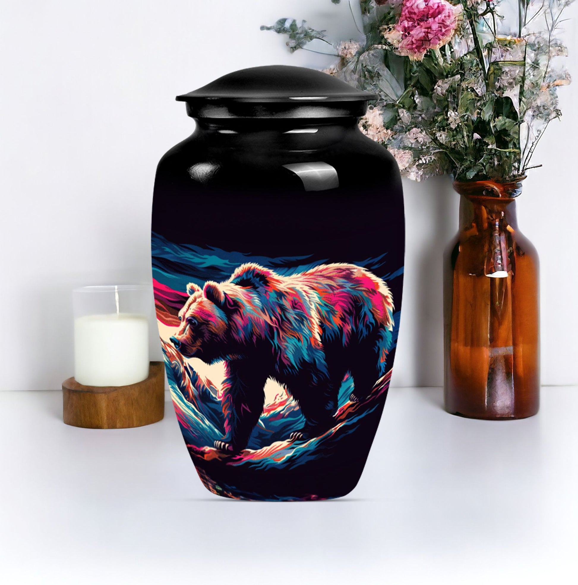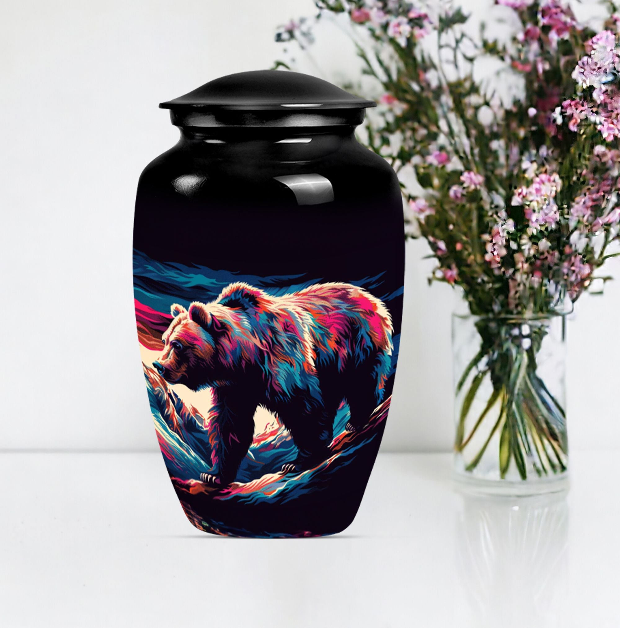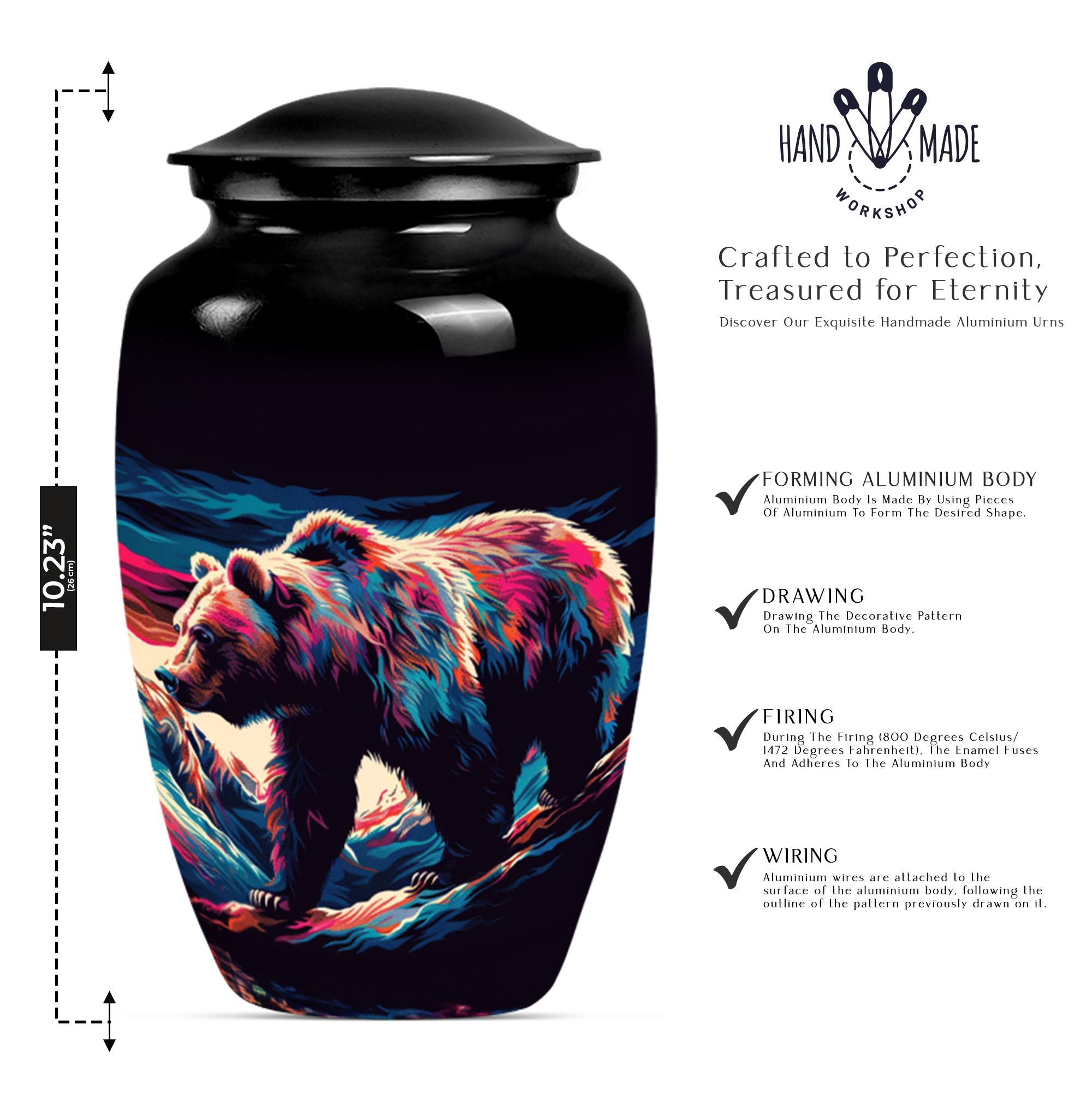 Dive into a remarkable token of remembrance with our 10-inch Aluminium crafted bear urn. This durable, large urn features a profound 'Butterfly' theme, invoking powerful feelings of peaceful resolution and healing. At 10 inches in height and with a capacity of 200 cubic inches, this burial large urn easily accommodates requirements for most adults. Weighing in at a sturdy 3.3 pounds, our cremation urn is a palpable testament of your everlasting bond. We also offer the personal touch of customization; imprint the urn with engraved names, imprinting your memories forever. A hidden feature in our package is a tender velvet pouch, which serves an ideal cocoon for containment of ashes. If you are in search of ash adult funeral urns or an urn for cremation ashes for your beloved mother, this unique, classic urn design is the epitome of sophistication and tranquility. Please note, this funeral cremation urn is designed with heart and passion, rendering each piece distinctive and establishing an emotional connection that is profoundly personal.