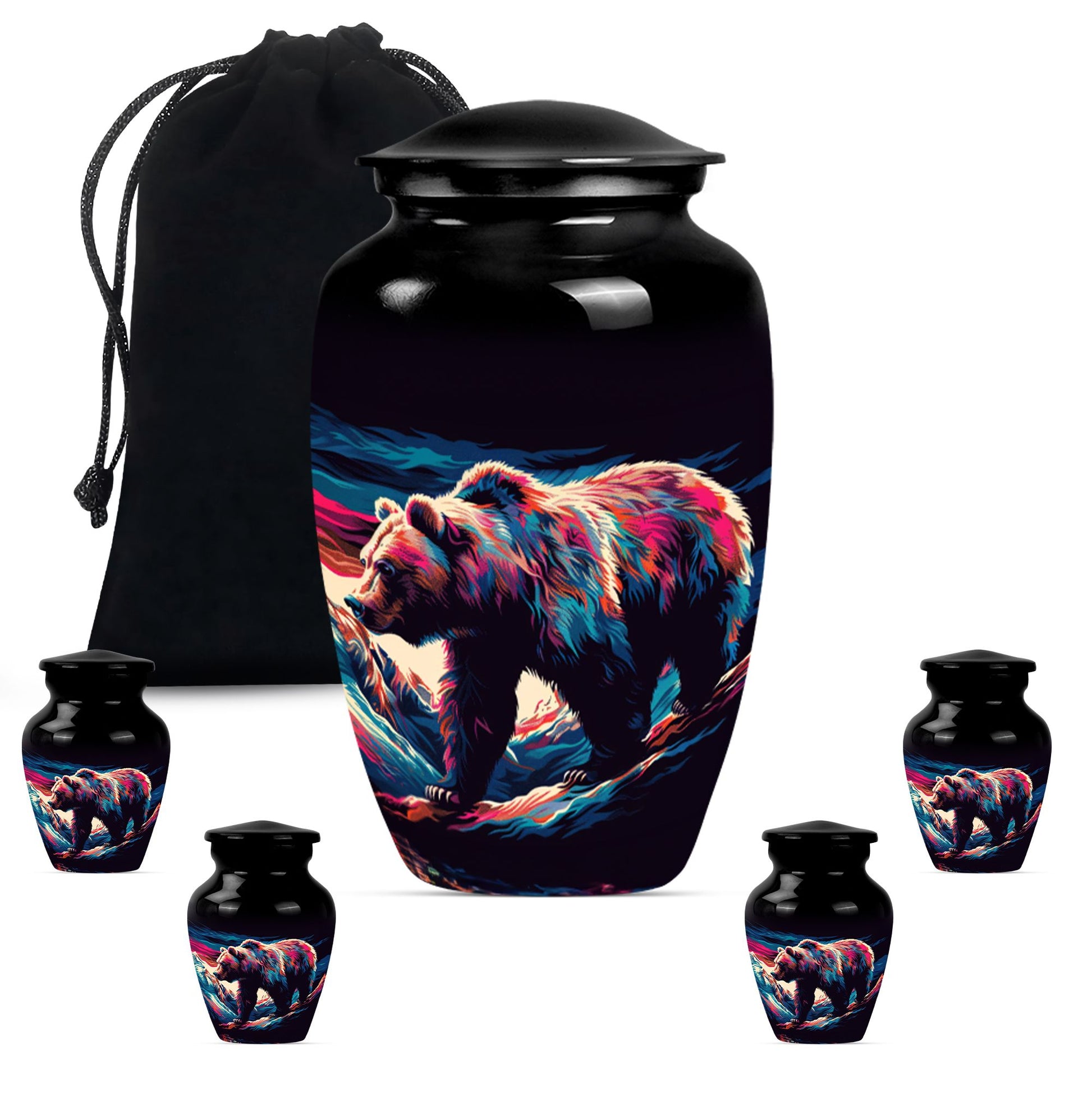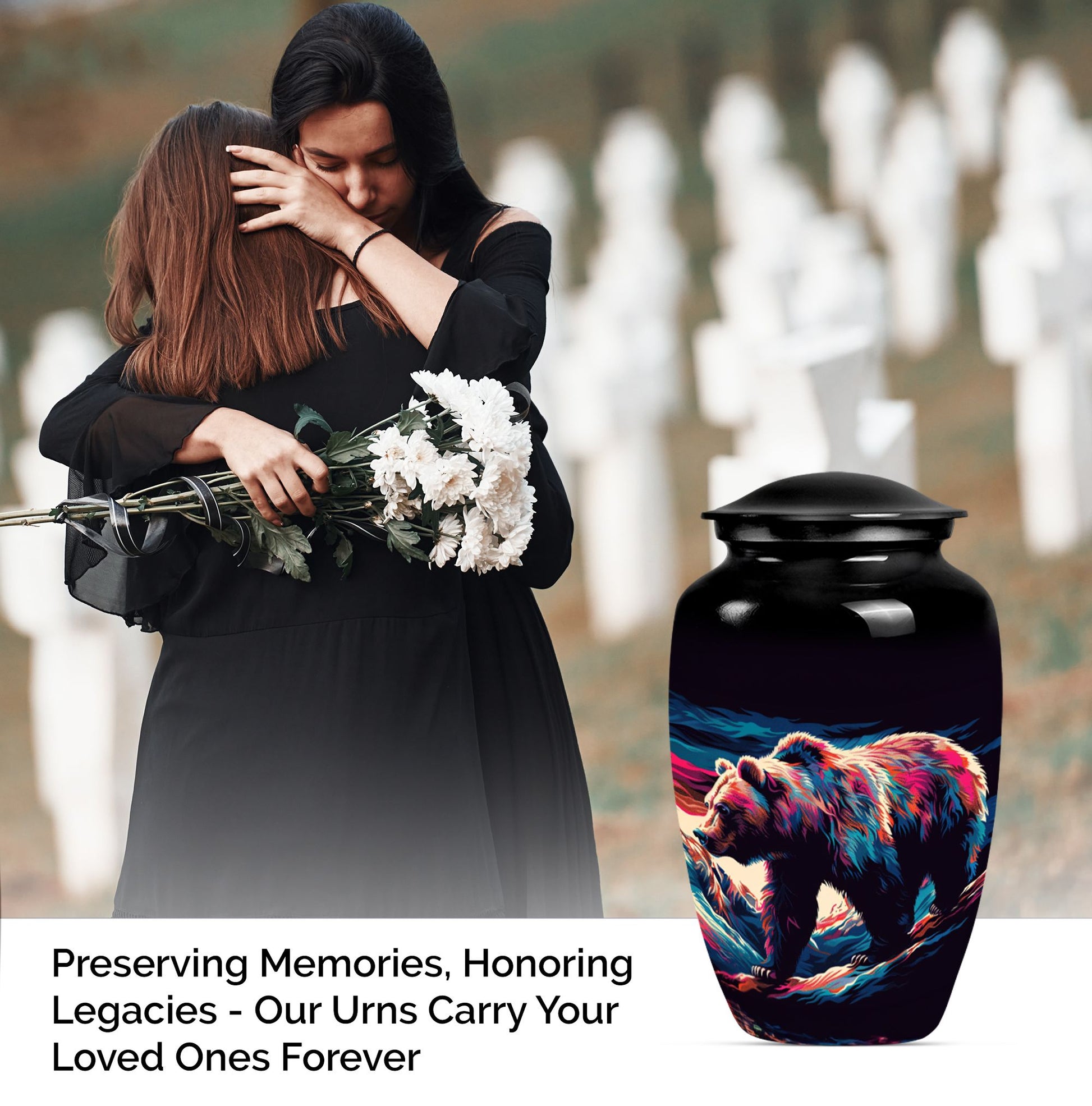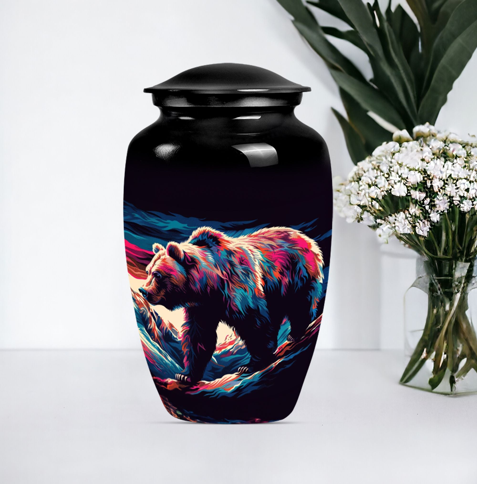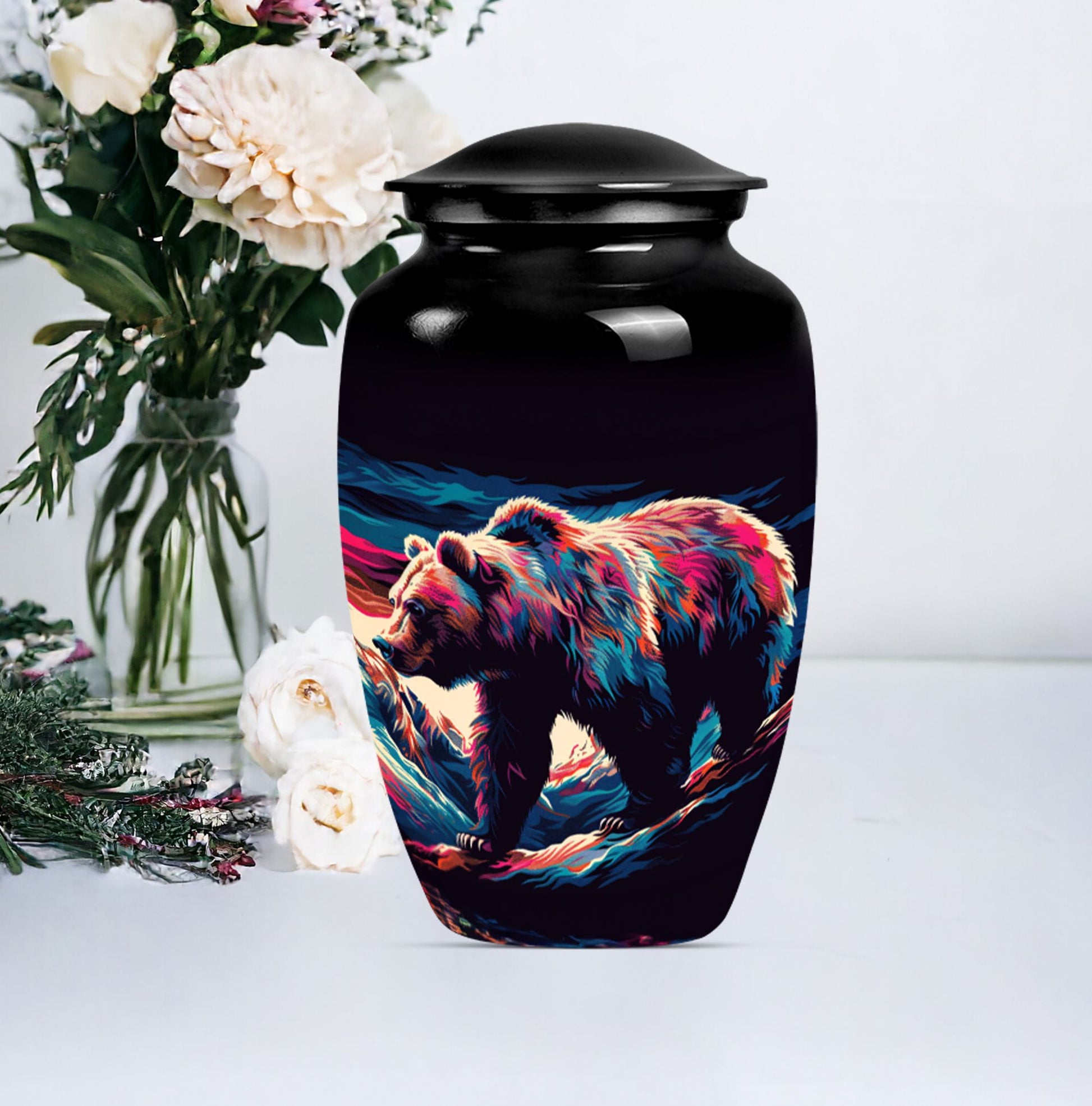 Dive into a remarkable token of remembrance with our 10-inch Aluminium crafted bear urn. This durable, large urn features a profound 'Butterfly' theme, invoking powerful feelings of peaceful resolution and healing. At 10 inches in height and with a capacity of 200 cubic inches, this burial large urn easily accommodates requirements for most adults. Weighing in at a sturdy 3.3 pounds, our cremation urn is a palpable testament of your everlasting bond. We also offer the personal touch of customization; imprint the urn with engraved names, imprinting your memories forever. A hidden feature in our package is a tender velvet pouch, which serves an ideal cocoon for containment of ashes. If you are in search of ash adult funeral urns or an urn for cremation ashes for your beloved mother, this unique, classic urn design is the epitome of sophistication and tranquility. Please note, this funeral cremation urn is designed with heart and passion, rendering each piece distinctive and establishing an emotional connection that is profoundly personal.