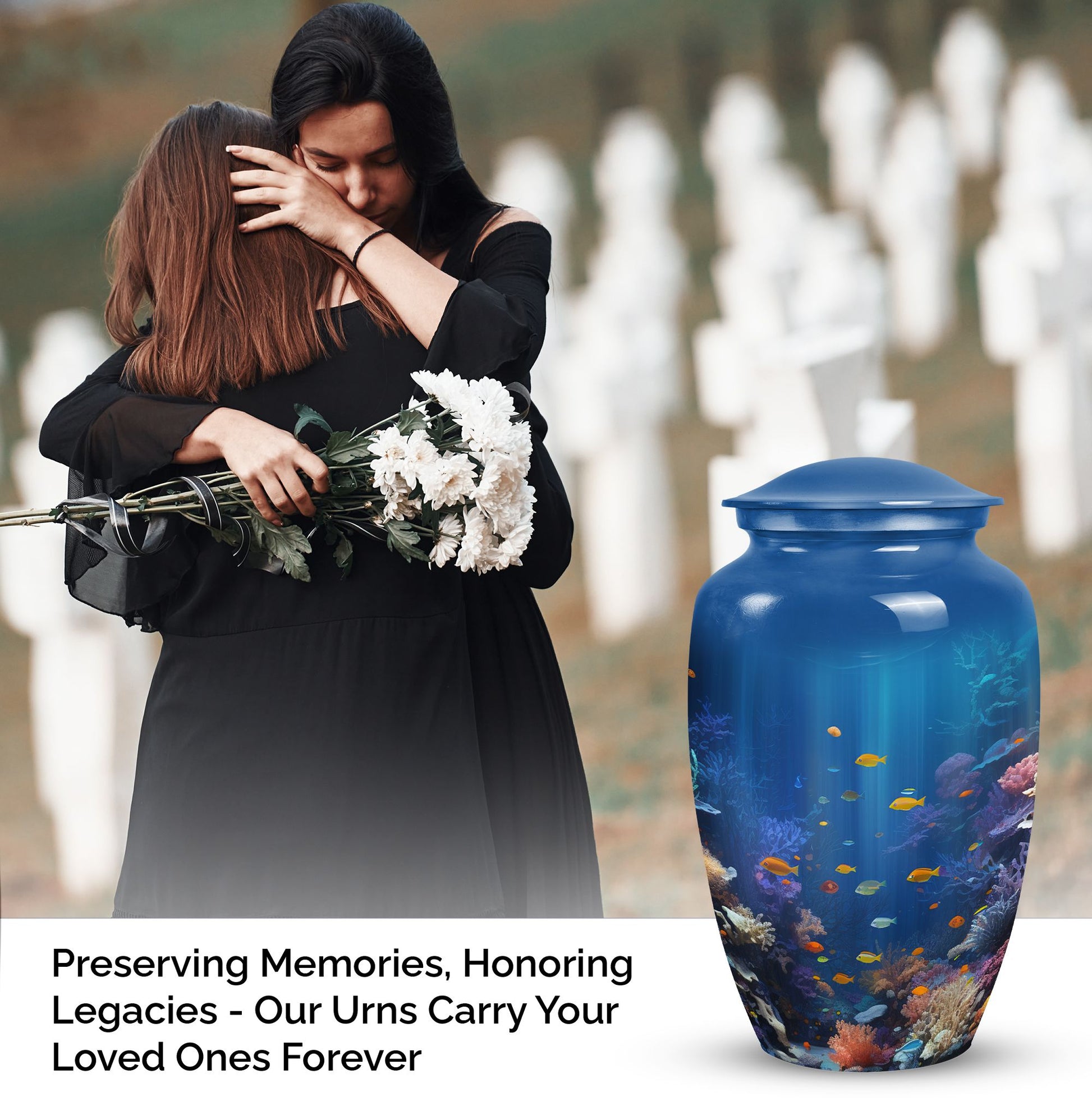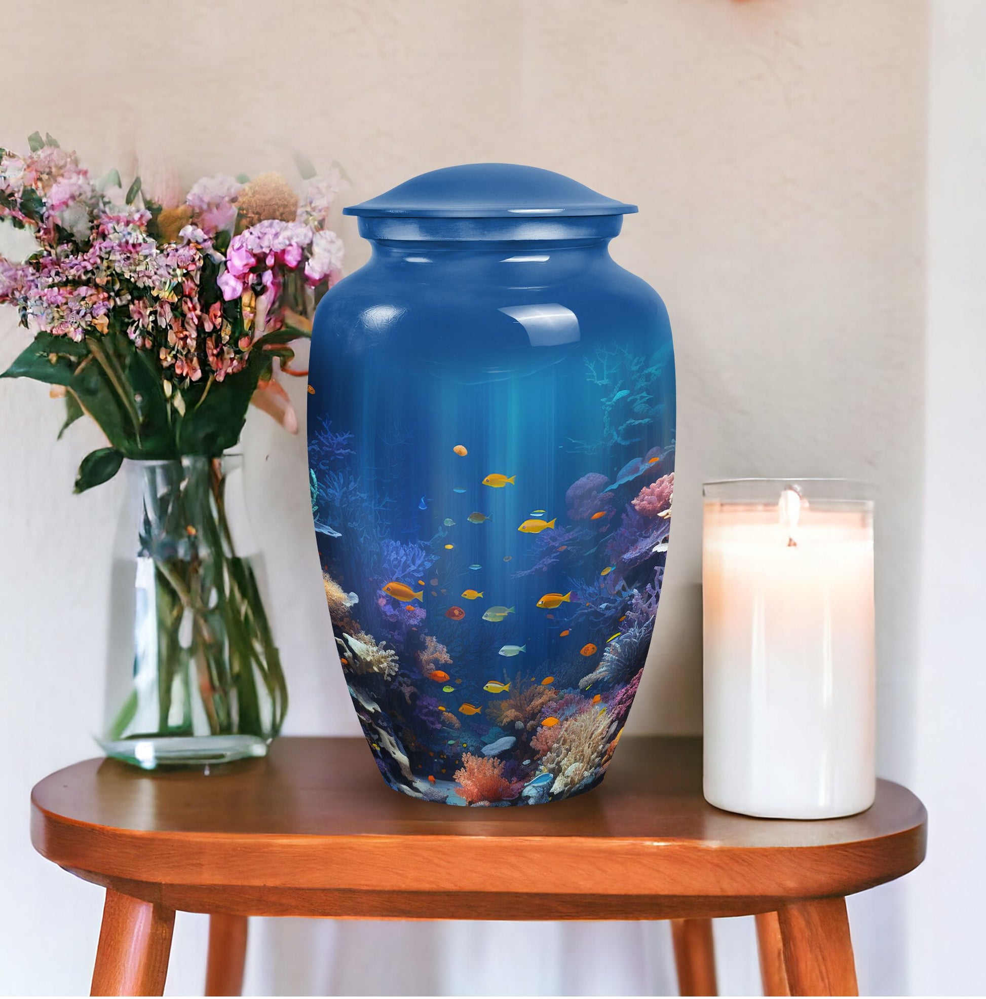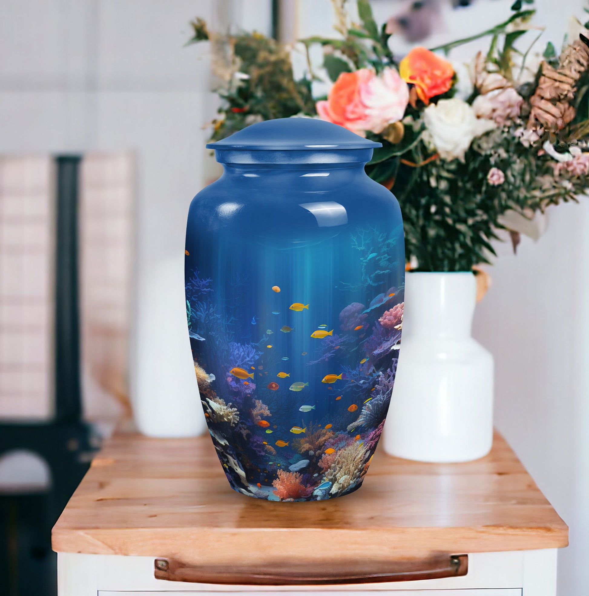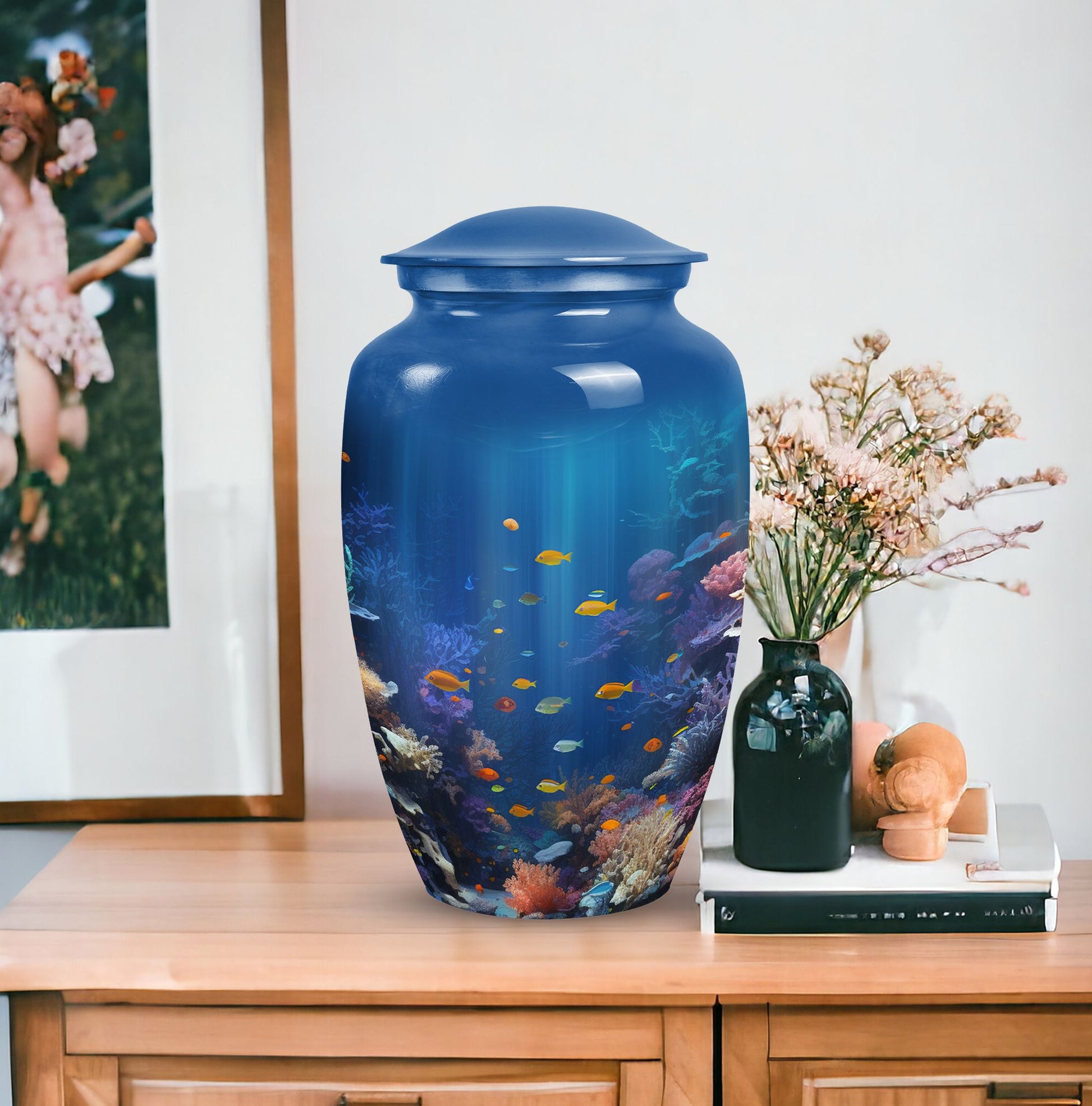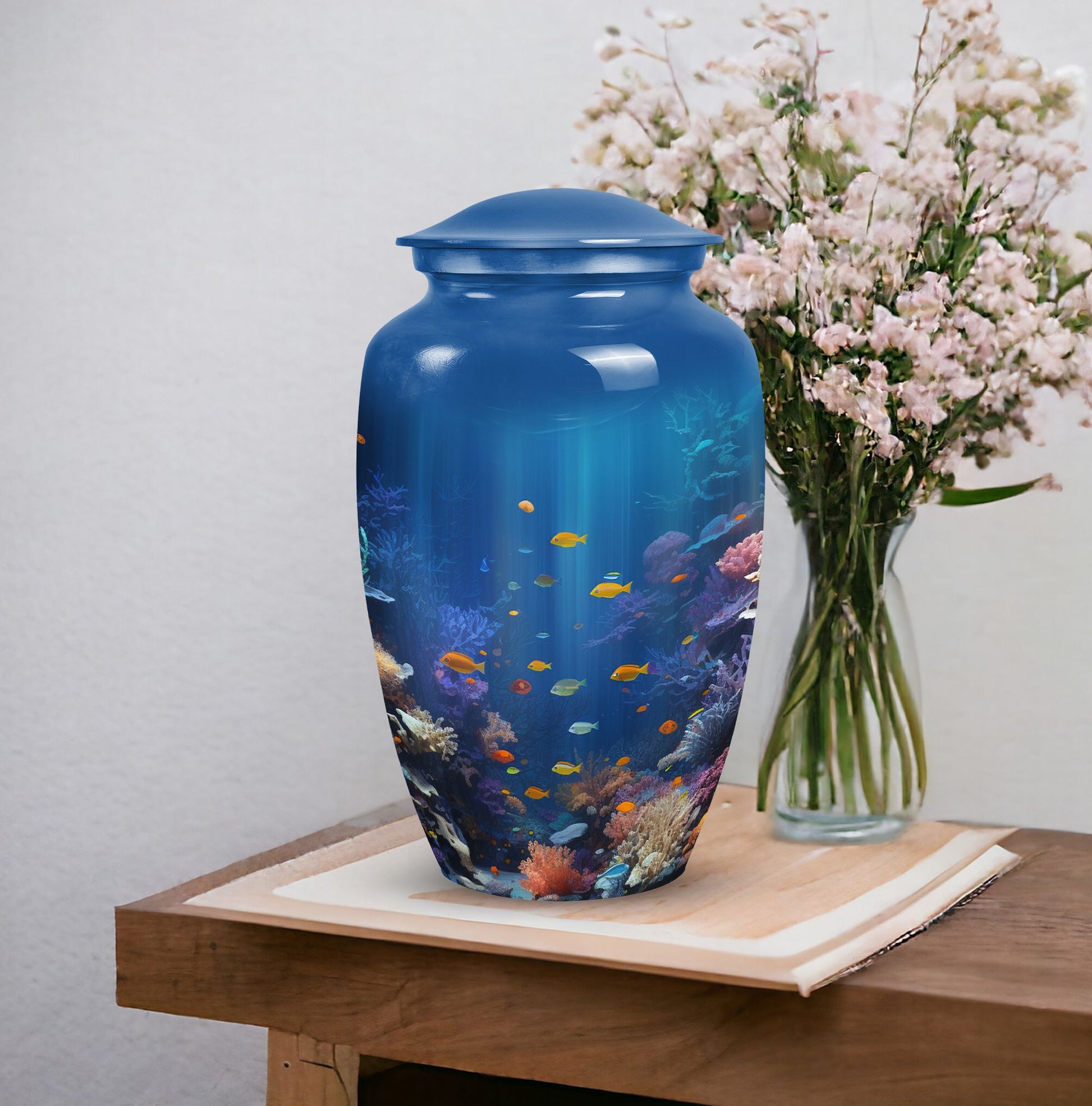 Discover honor and tranquility in our Underwater Urn for Ashes. Specifically designed for adults, especially males, our large urns offer a unique and spiritual home for your loved one's remains. This distinctive piece stands out in its design and quality, ensuring it remains inviolable yet heartwarmingly respectful. Its multifaceted tear-drop form symbolizes both the tears of grief and the ceaseless flow of love, making it a fitting tribute for any person. Crafted meticulously, it doubles as a comforting 'Urn for Mom,' providing a restful place for her spirit to reside. Suitable for burials, these urns are more than just containers; they offer a sense of closure and continuation of love. Our large human ashes urn serves as a meaningful 'Companion Urn,' fostering a shared place for memories. With SEO phrases like 'urn for ashes adult' and 'cremation urns for burial,' this product will ensure your search for a fitting tribute is simplified, significant, and easy to find.