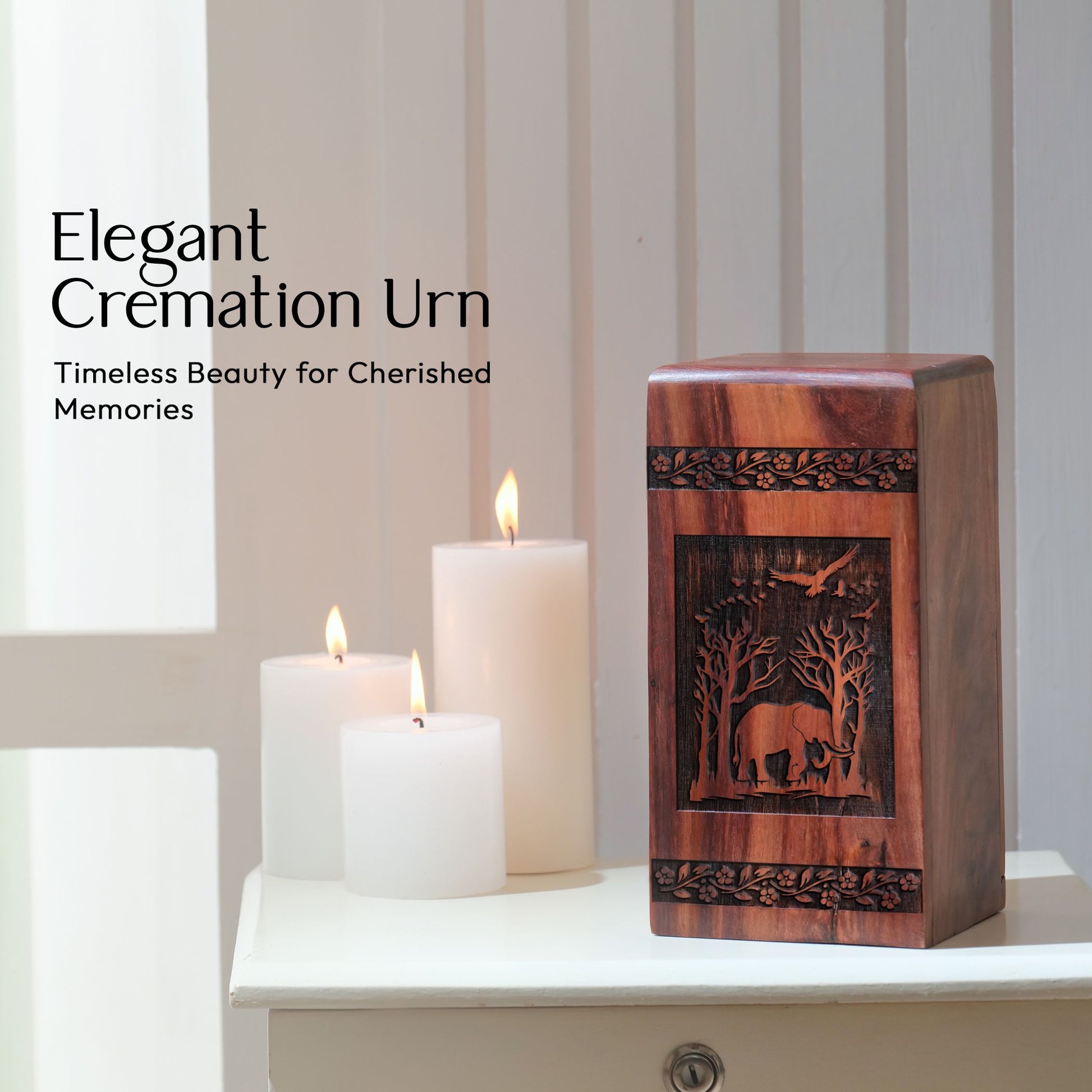 Discover the Elephant Urn, crafted from resilient wood, it's symbolism of strength honors the spirit of your departed loved ones in an extraordinary manner. This Large Urn ensures ample space to hold the ashes of an adult, creating an enduring tribute that is both personal and poignant. The urn showcases keen craftsmanship and meticulous attention to detail, echoing a sense of timeless elegance and profound affinity. Whether you are finding a memorial for an adult male or a cherished family member of any gender, this urn stands as a compelling tribute. Boasting an elevated design beyond the usual, this distinctive memory vessel is an intersection of aesthetics and comfort. By choosing the Elephant Wood Urn, you opt for a meaningful celebration of life cycle and an everlasting home to hold dear the memory of your loved ones. Excellent choice among 'Urns For Ashes Adult Male', 'Urn For Ashes Adult', 'Adult Urns For Human Ashes', or 'Urns For Adult Male Ashes'.