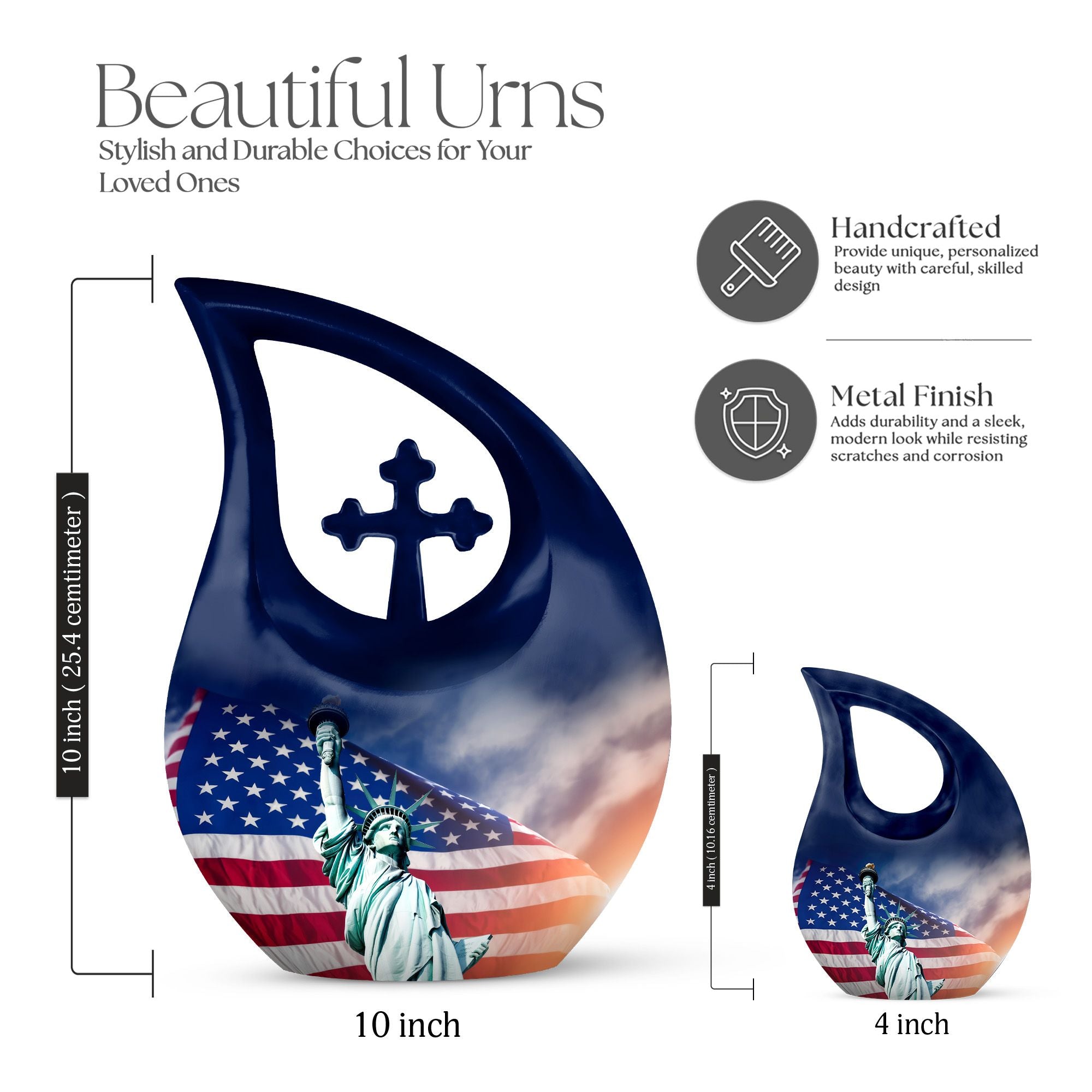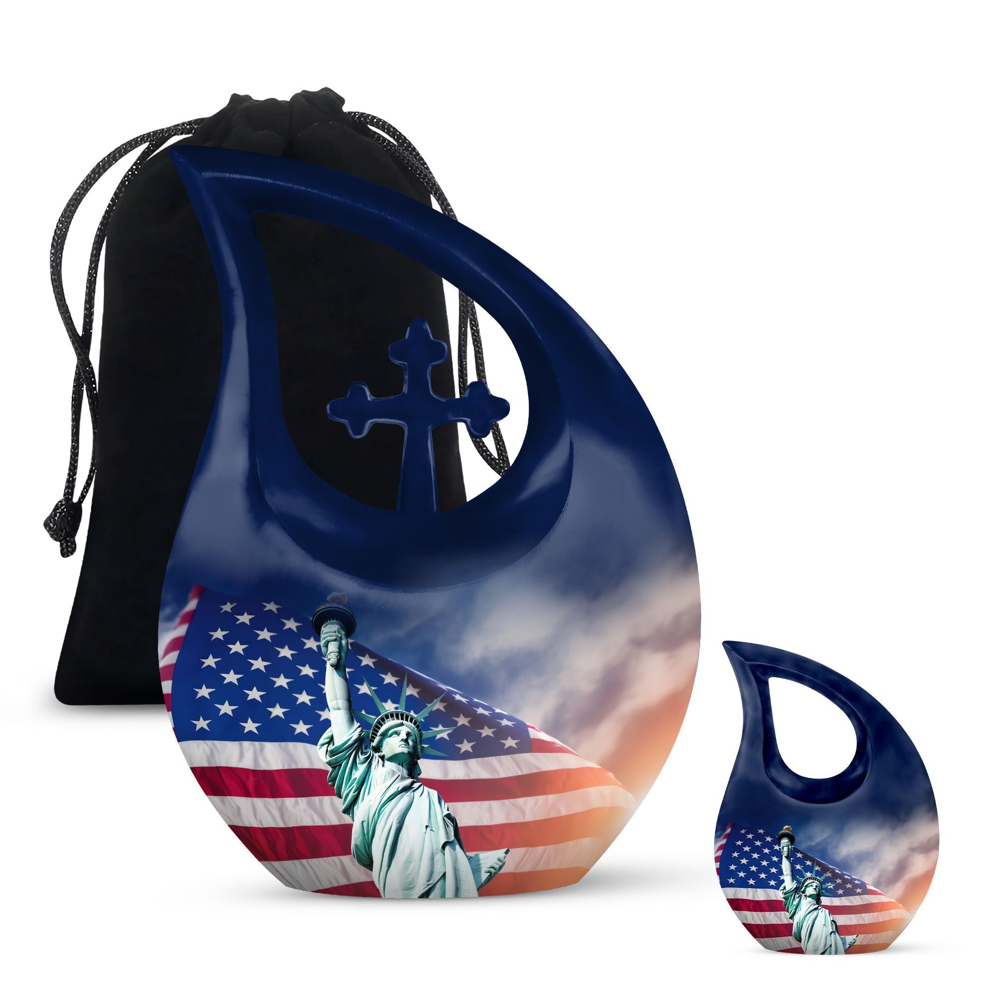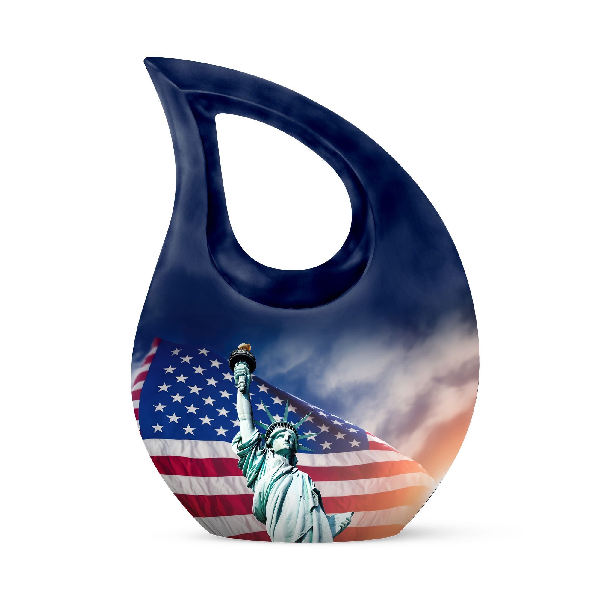 The Liberty With American Flag Urn embodies honor, pride, and eternal remembrance. Designed to celebrate a life well-lived, this elegant memorial piece captures the essence of freedom and devotion to one’s country. Perfect for those who held patriotism close to their hearts, this large urn for human ashes provides a dignified resting place for your loved one. Thoughtfully crafted, it stands as a lasting tribute of love, respect, and loyalty.