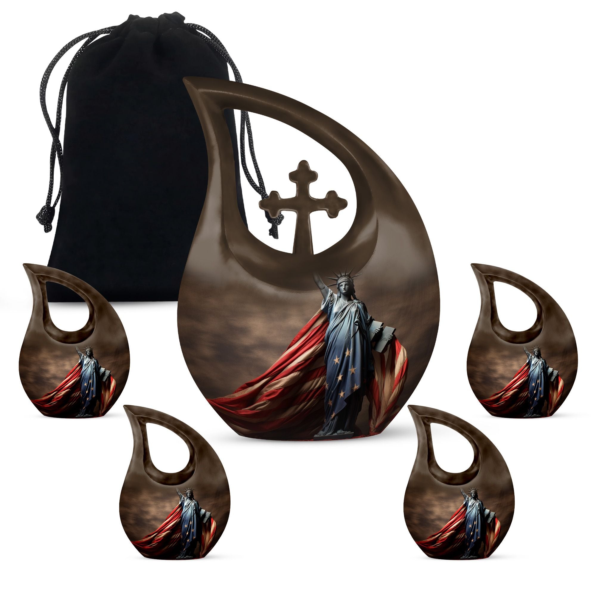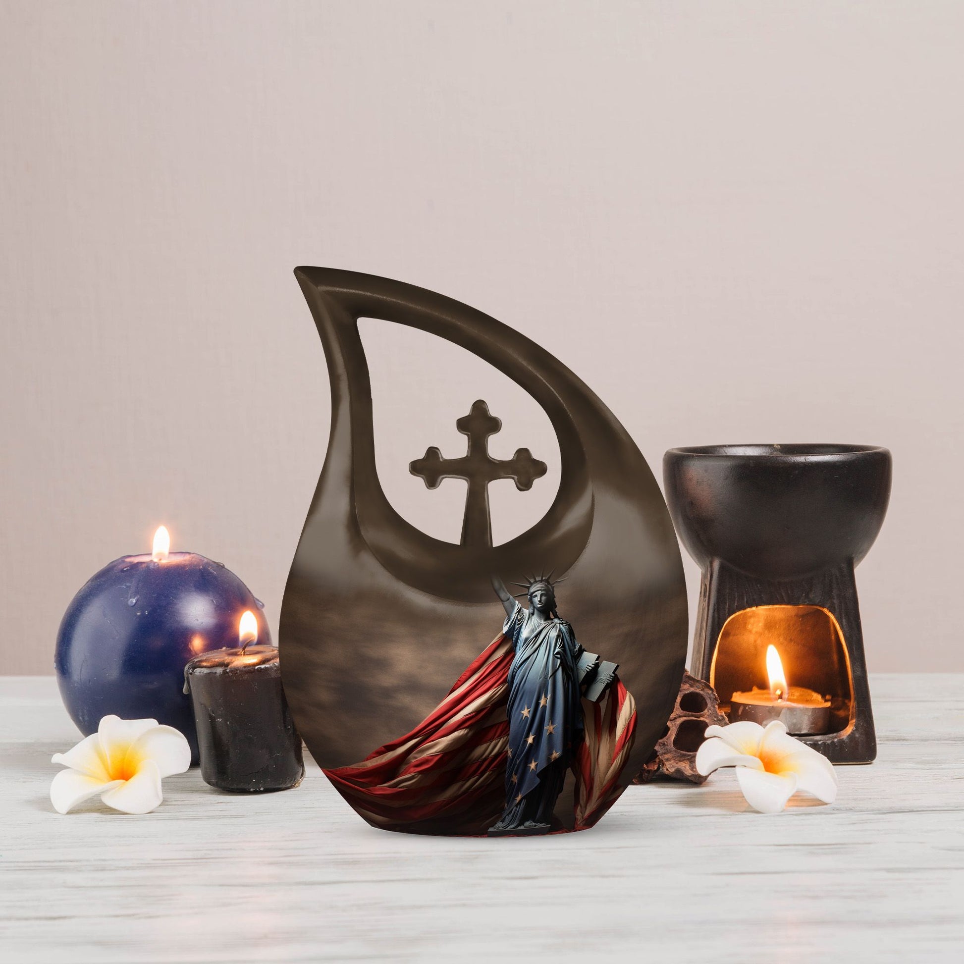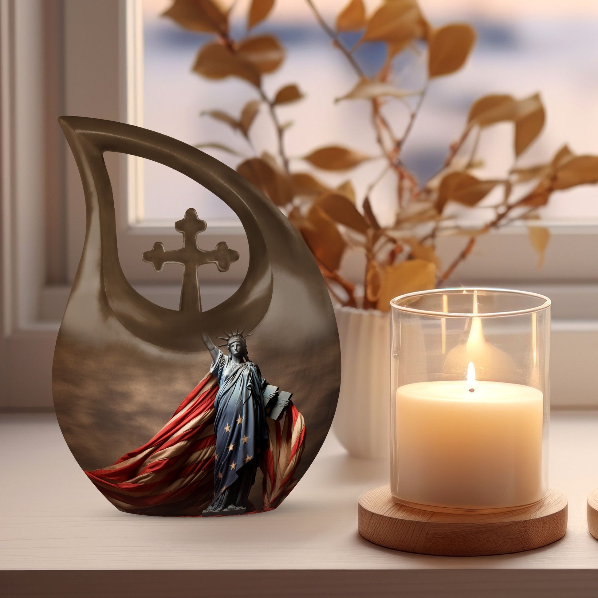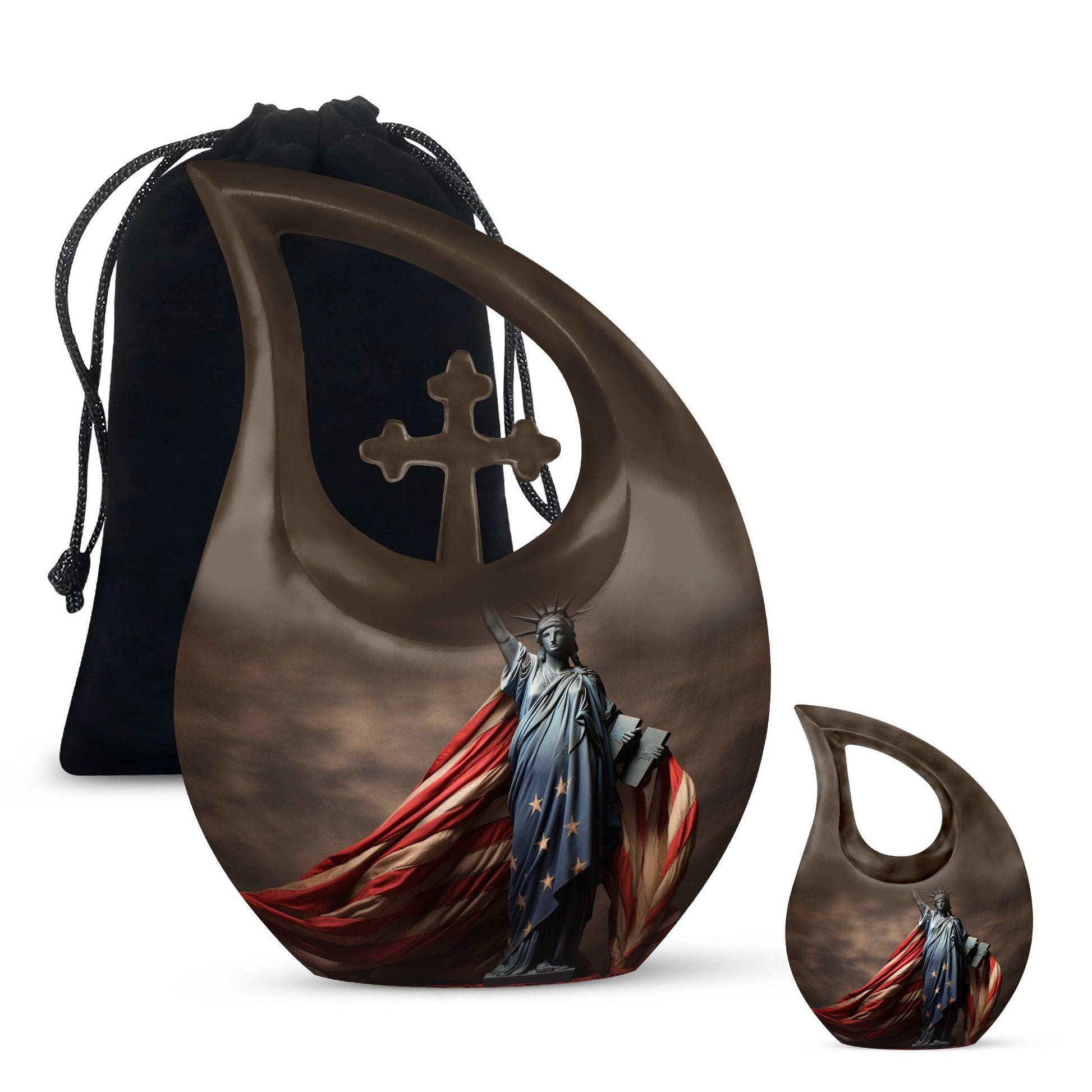 Let the Statue of Liberty with American Flag Themed Urn be a lasting tribute to your loved one’s strength and love for freedom. Crafted with care, this large urn for human ashes ensures that memories are forever preserved with honor and pride.