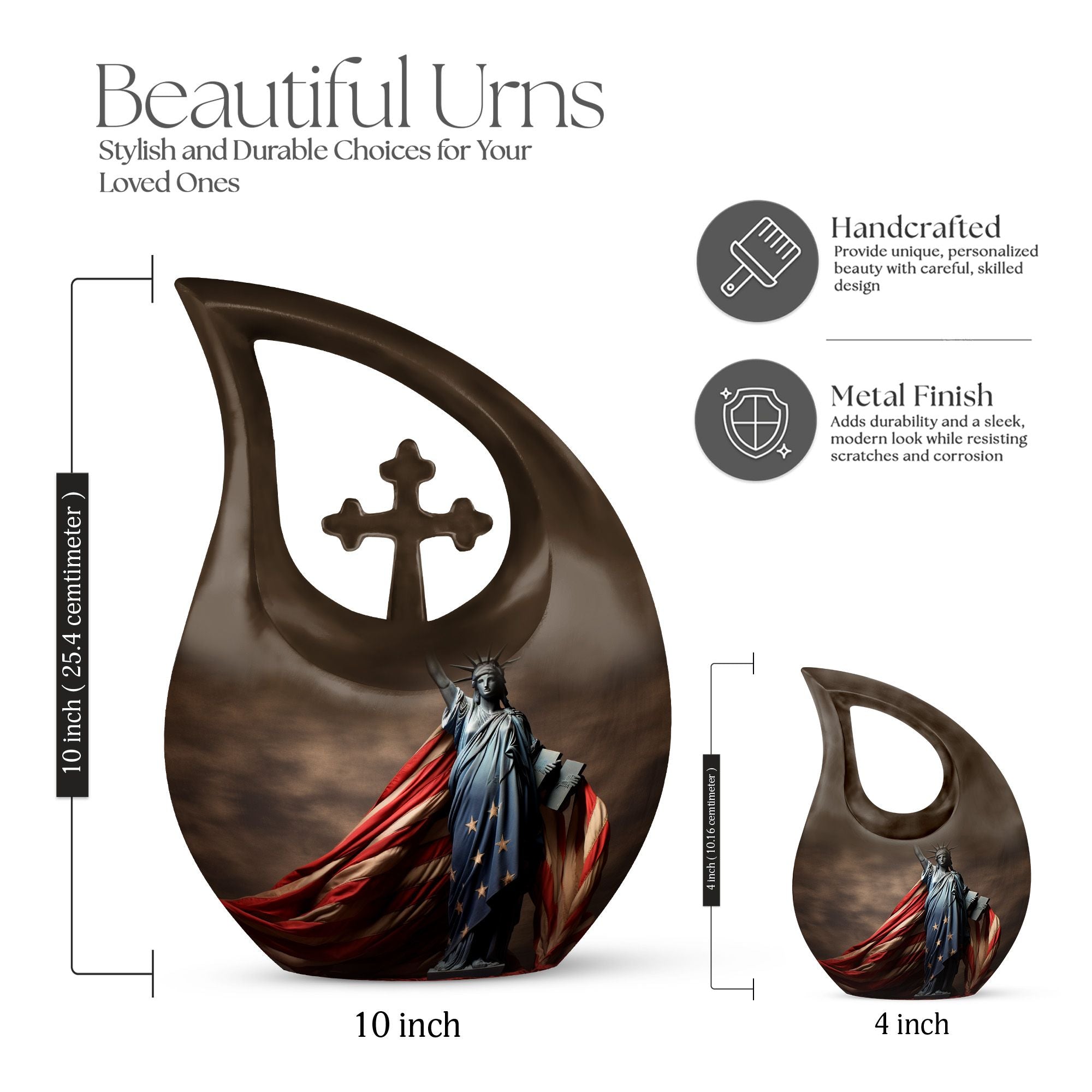Celebrate a life that embodied freedom, courage, and devotion with the Statue of Liberty with American Flag Themed Urn. This stunning memorial vessel is a heartfelt tribute for those who cherished their country and lived with pride. Designed to honor the essence of strength and independence, it serves as a timeless large urn for human ashes that preserves memories with dignity and grace. Perfect for those seeking large urns for human ashes adult female or urns for ashes adult male large, this urn captures both beauty and symbolism.