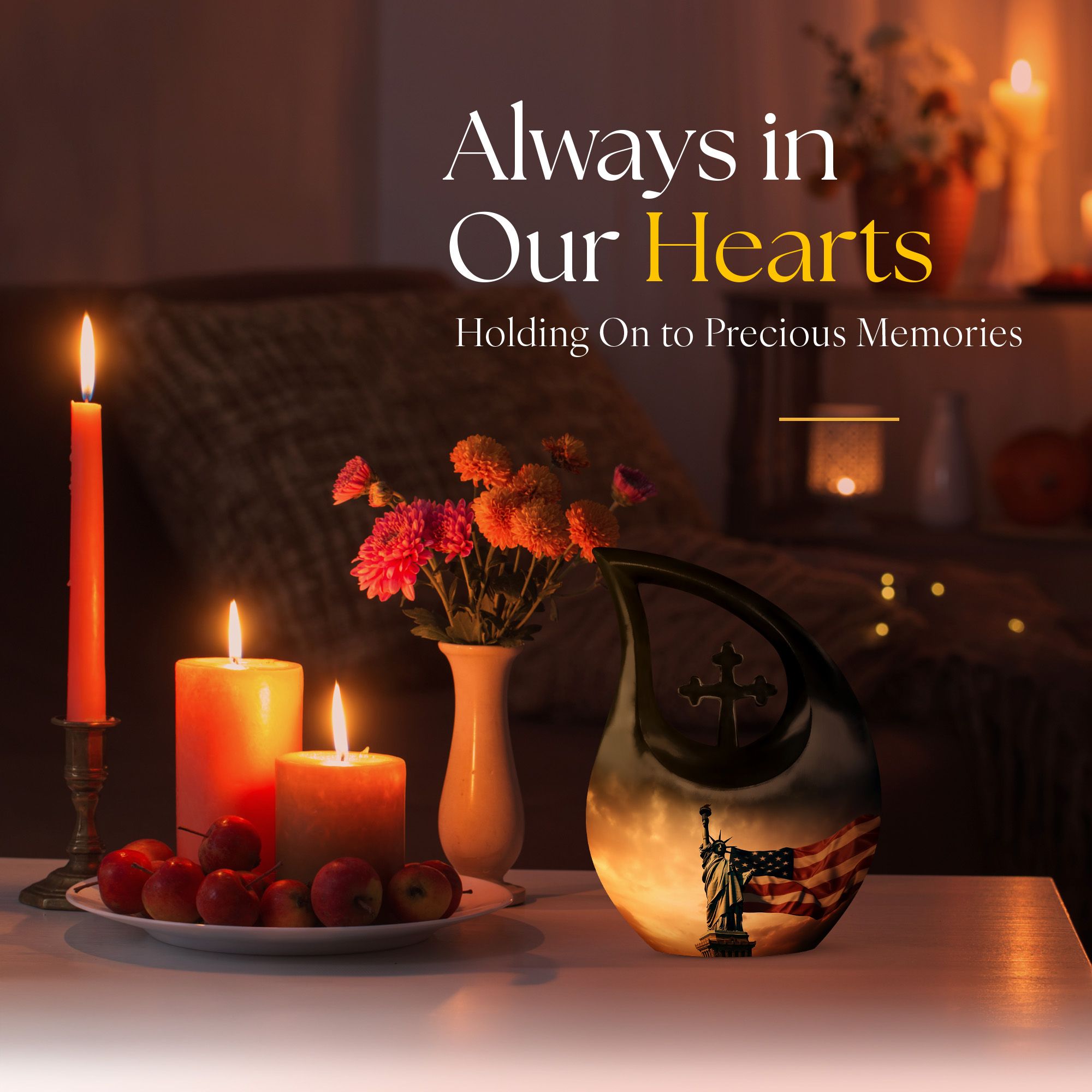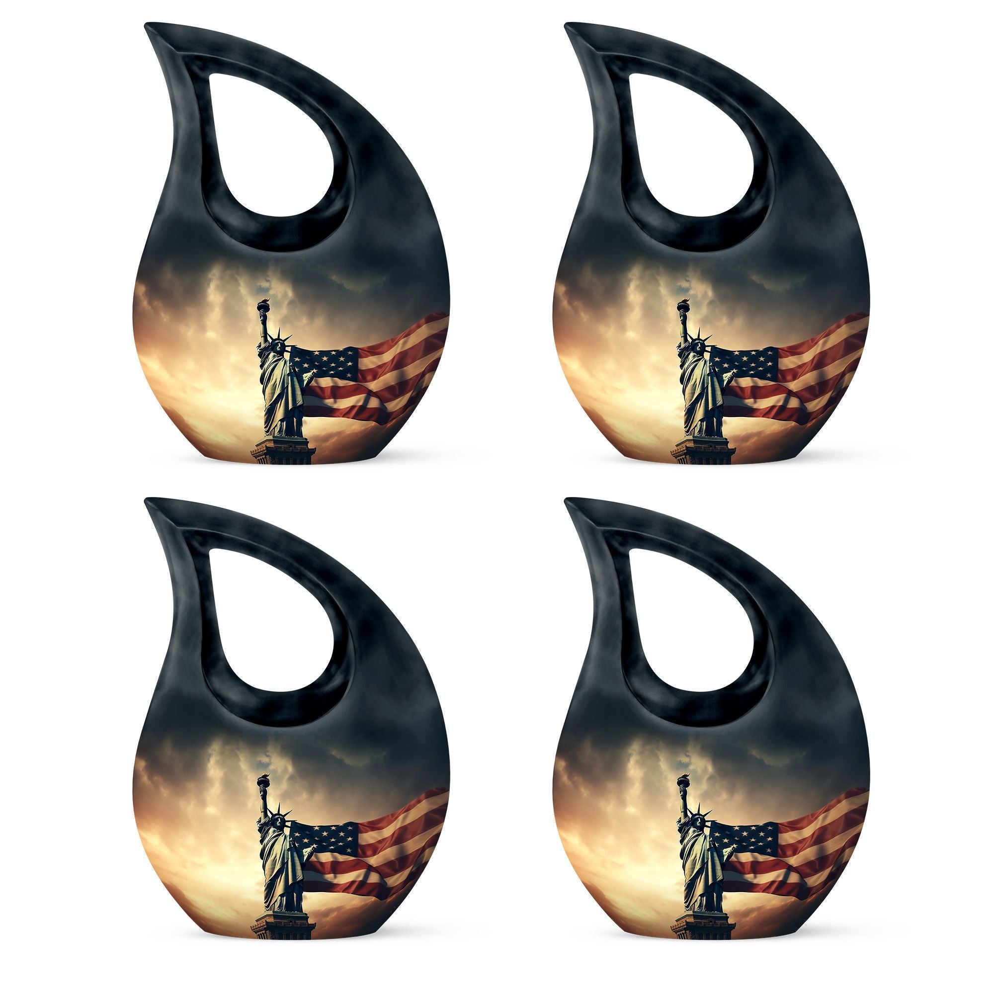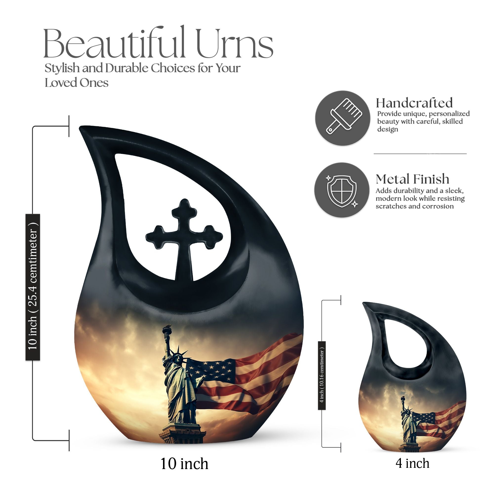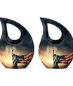 This large urn for female & male is meticulously handcrafted from durable aluminum, ensuring long-lasting beauty and strength. The vivid American flag design paired with liberty motifs evokes deep emotion and respect. Each urn ash adult female and urn human ash adult male is polished to perfection with a protective coating, making it ideal for display in homes, memorial niches, or burial ceremonies.