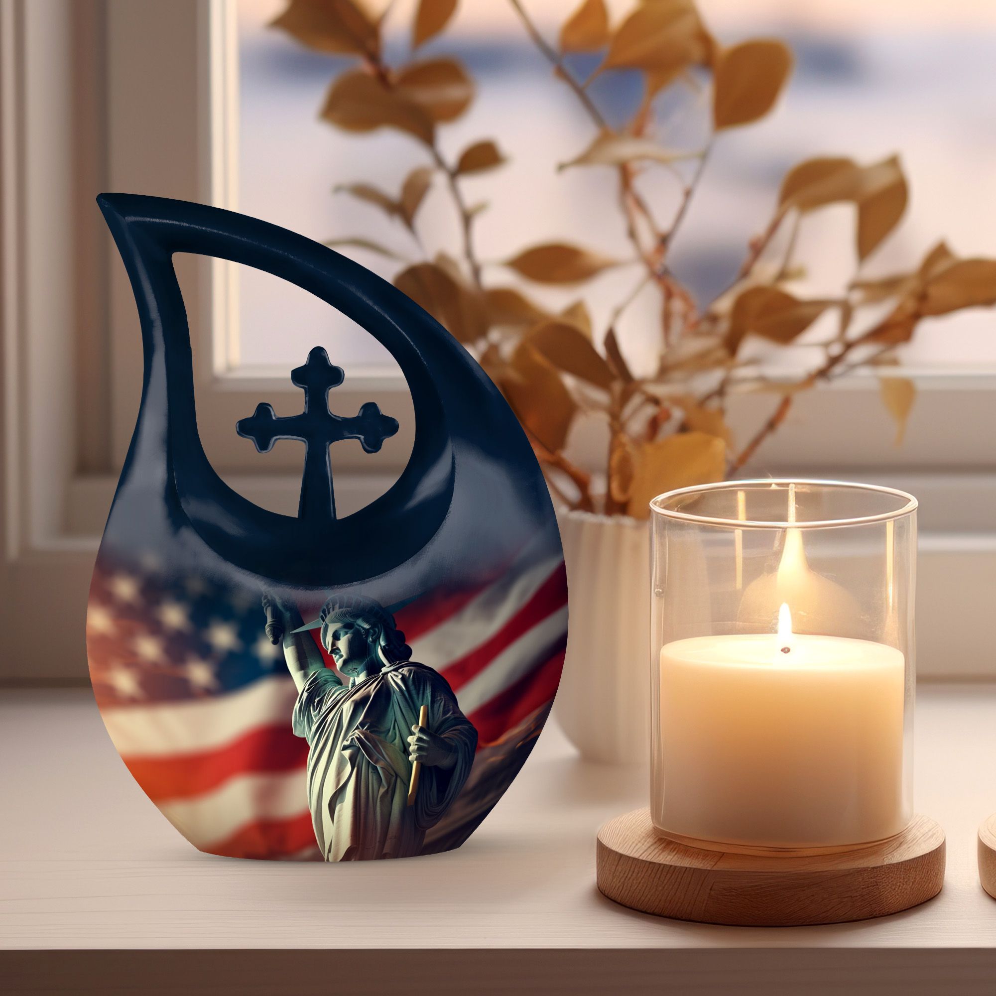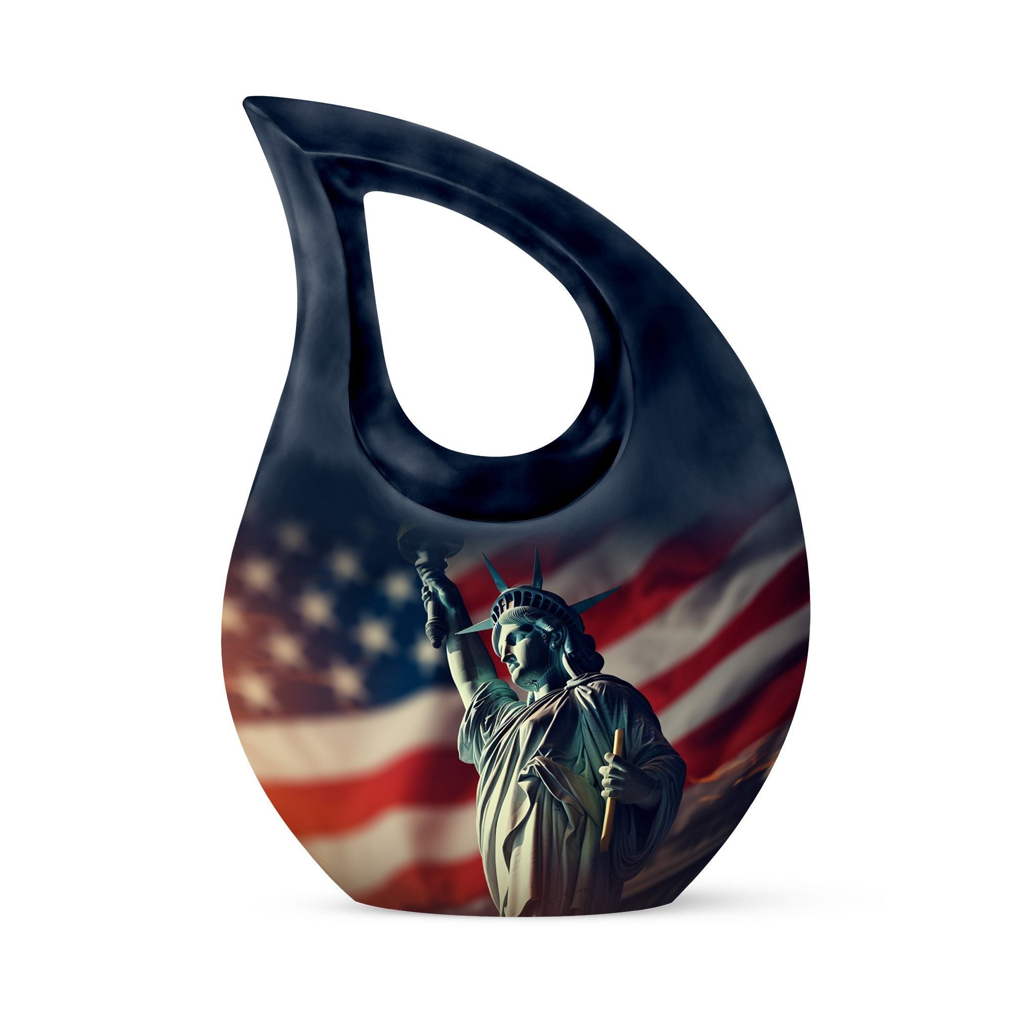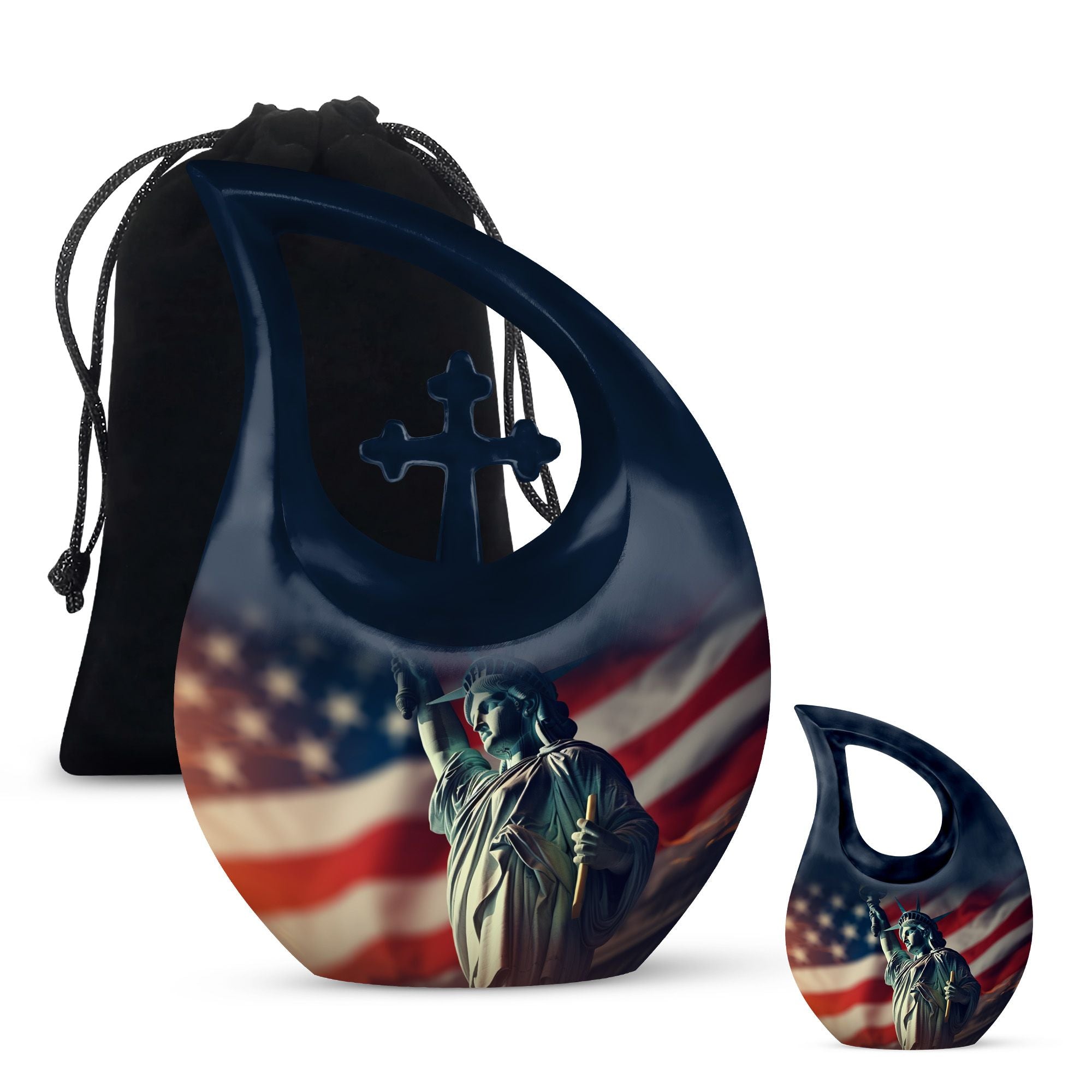 Celebrate a life well-lived with the Statue of Liberty With American Flag Urn, a powerful symbol of freedom, courage, and enduring love. Designed to honor the cherished memories of your loved one, this elegant urn for female adult or urn human ash adult male offers a heartfelt way to keep them close forever. The combination of the Liberty statue and waving American flag reflects both pride and peace — a tribute to lives that stood tall and true.