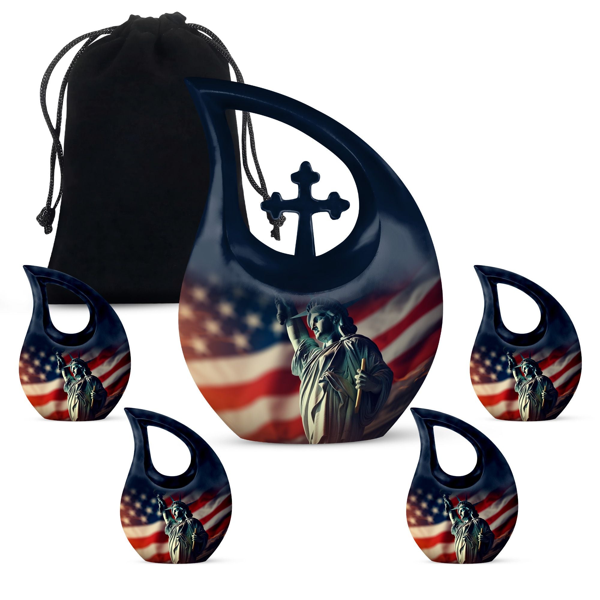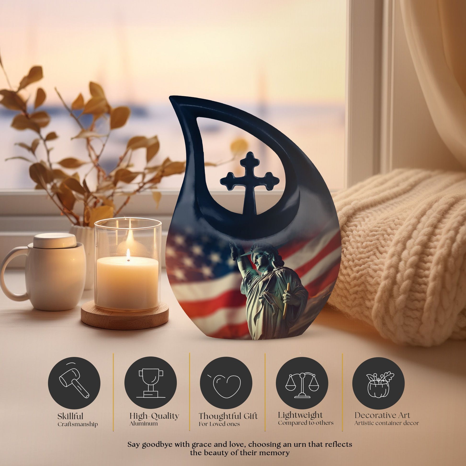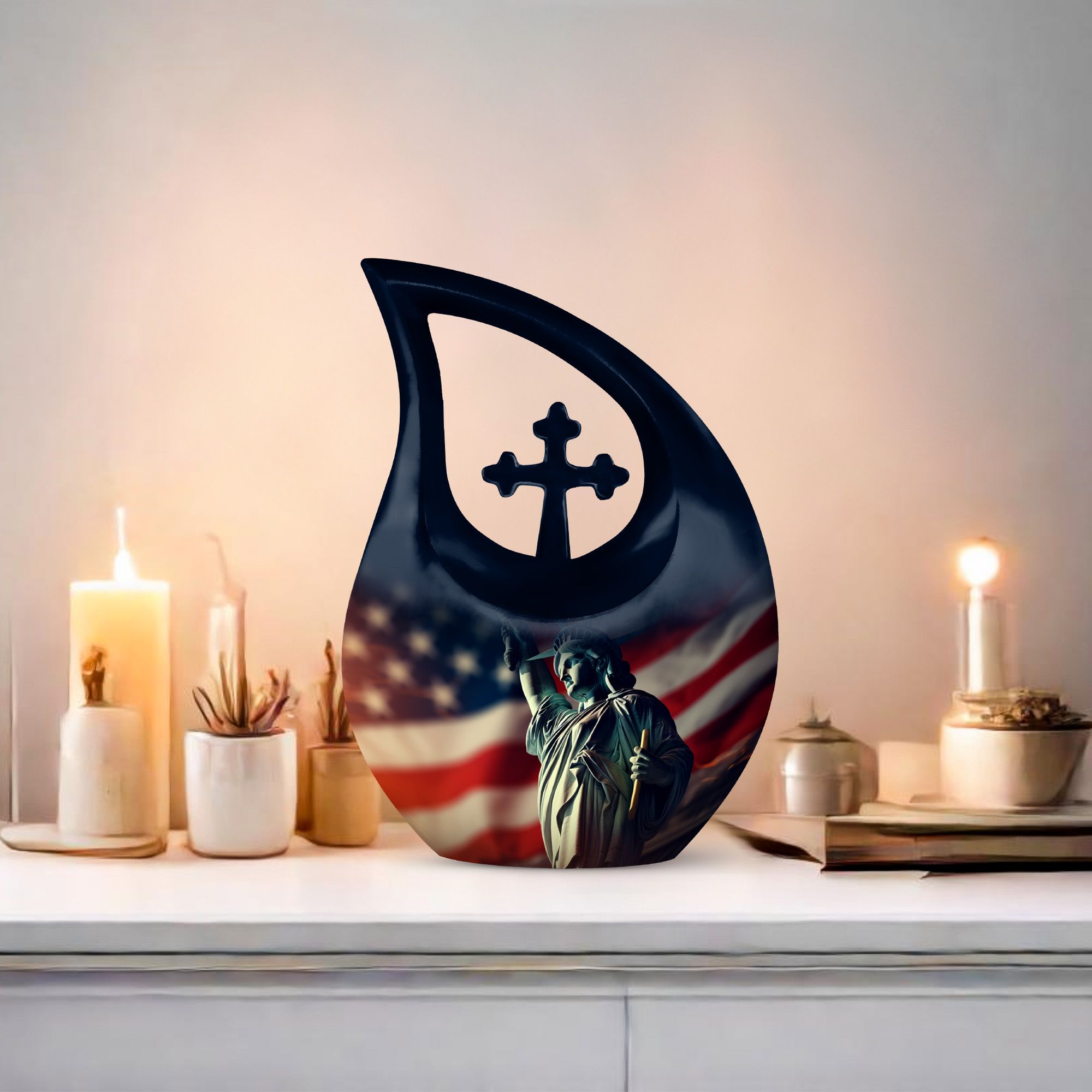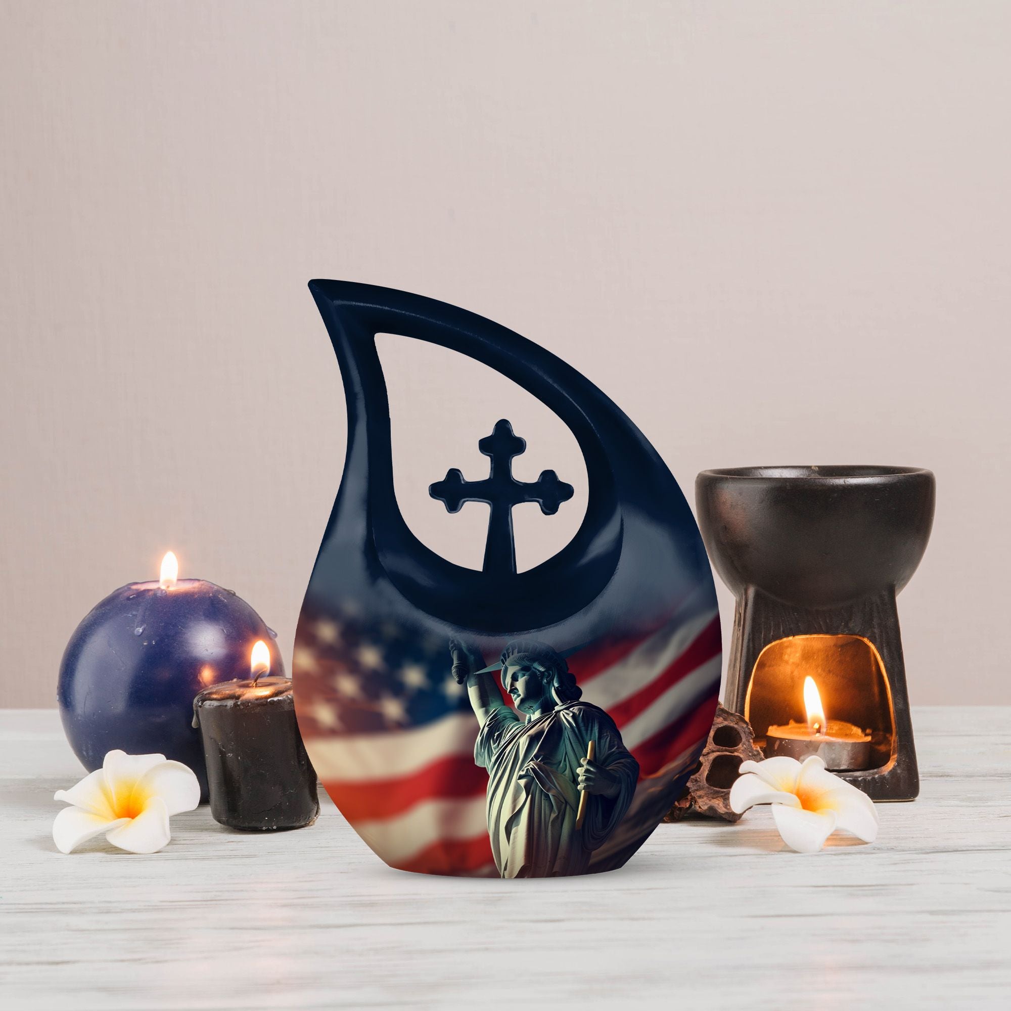 Celebrate a life well-lived with the Statue of Liberty With American Flag Urn, a powerful symbol of freedom, courage, and enduring love. Designed to honor the cherished memories of your loved one, this elegant urn for female adult or urn human ash adult male offers a heartfelt way to keep them close forever. The combination of the Liberty statue and waving American flag reflects both pride and peace — a tribute to lives that stood tall and true.