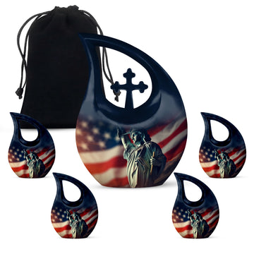 This urn human ash adult female and urn adult male serves as a timeless keepsake, representing unity, liberty, and the beauty of a shared heritage. Each urn embodies both artistry and emotion, ensuring that the memory of your loved one remains preserved in a vessel as dignified as their life.