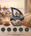 A breathtaking symbol of everlasting love, this large urn human ashes reminds us that through faith and memory, beauty continues to bloom — lighting the path of remembrance with every reflection.