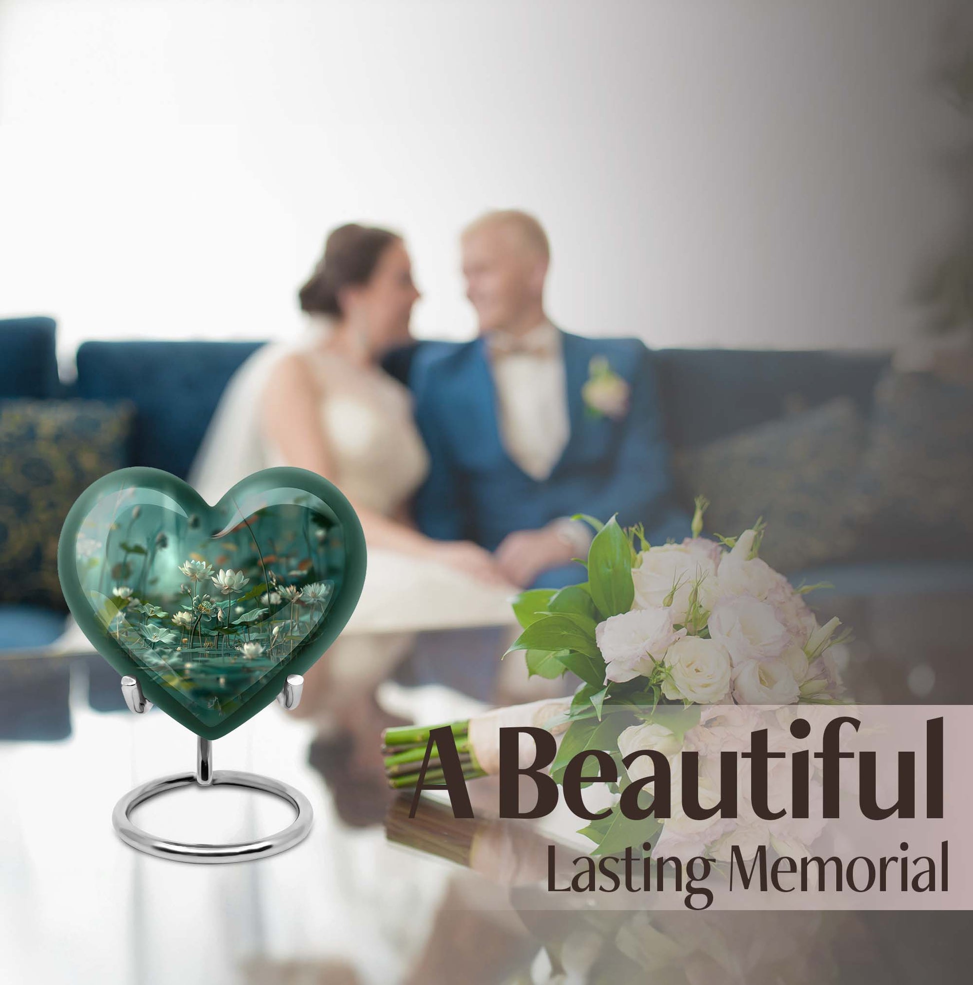 Honor the memory of loved ones with the exquisite Lotus Urn. This cremation urn is delicately crafted from high-quality aluminium and features an intriguing abstract theme that adds a touch of uniqueness to its appearance. Standing proud at 10 inches in height and weighing a sturdy 3.3 pounds, this urn is more than just a memorial item; it's a statement of love. It boasts an ample capacity of 200 cubic inches, making it a fitting final rest for both men and women. Personalize it with engraved names to add a truly personal touch to this timeless keepsake. The urn comes with a velvet pouch for tasteful and respectful containment of ashes. Whether you are looking for cremation urns for dad, an urn for mom, or a large burial urn with a cross design, our Lotus urn captures the eternal love and respect you hold for your departed. This is not just any urn, but a remarkable tribute to life and love that goes beyond the ordinary.