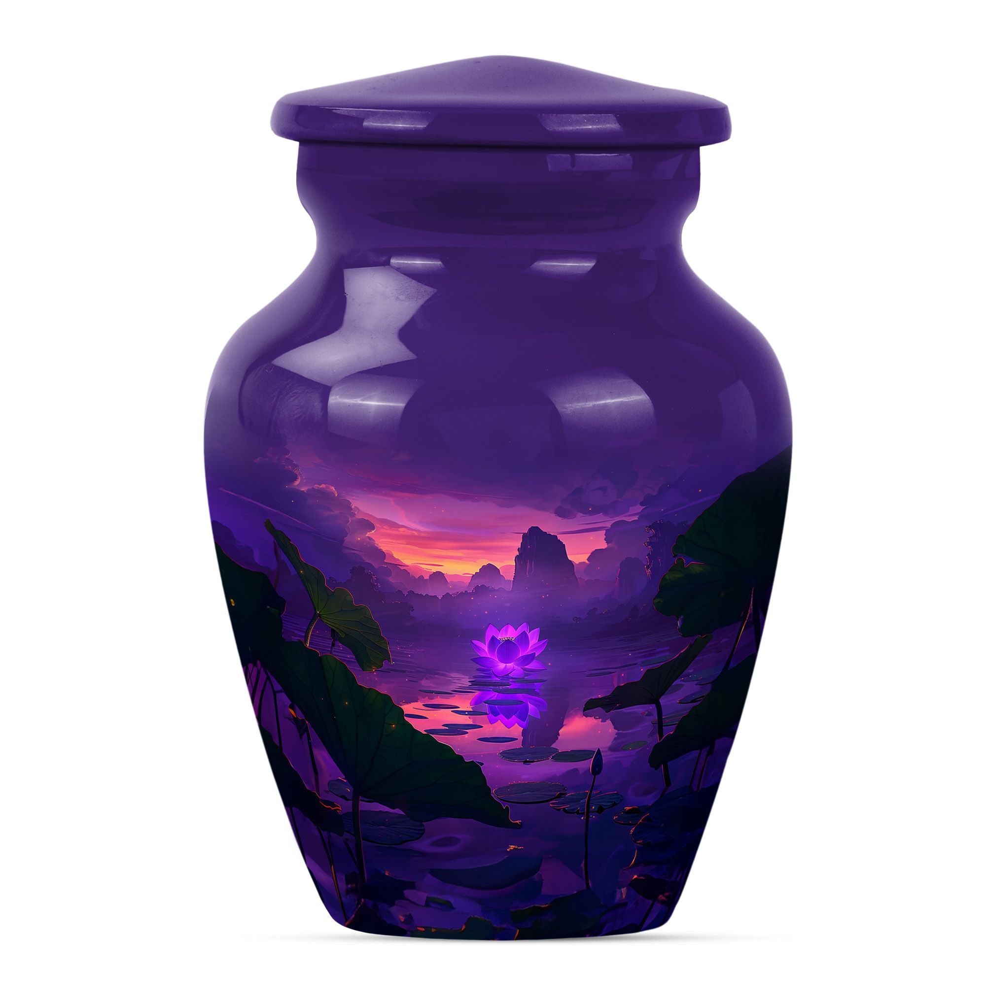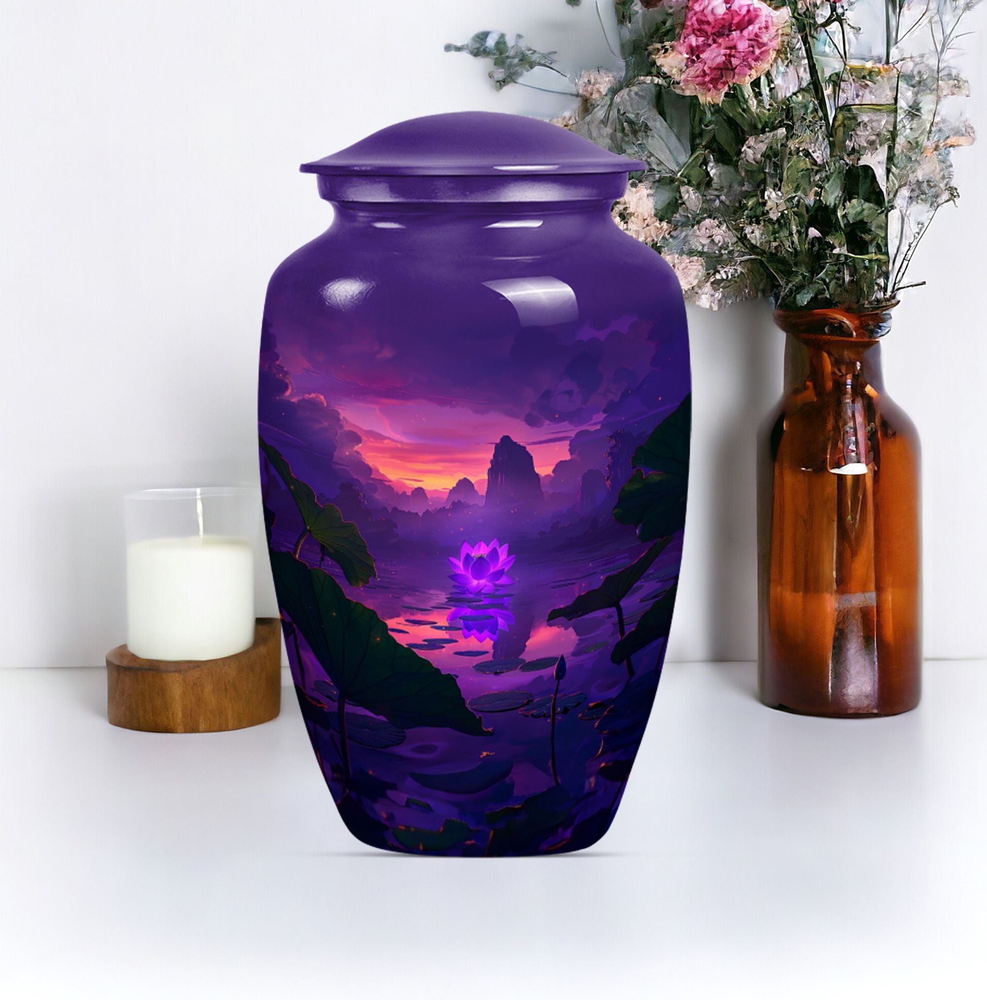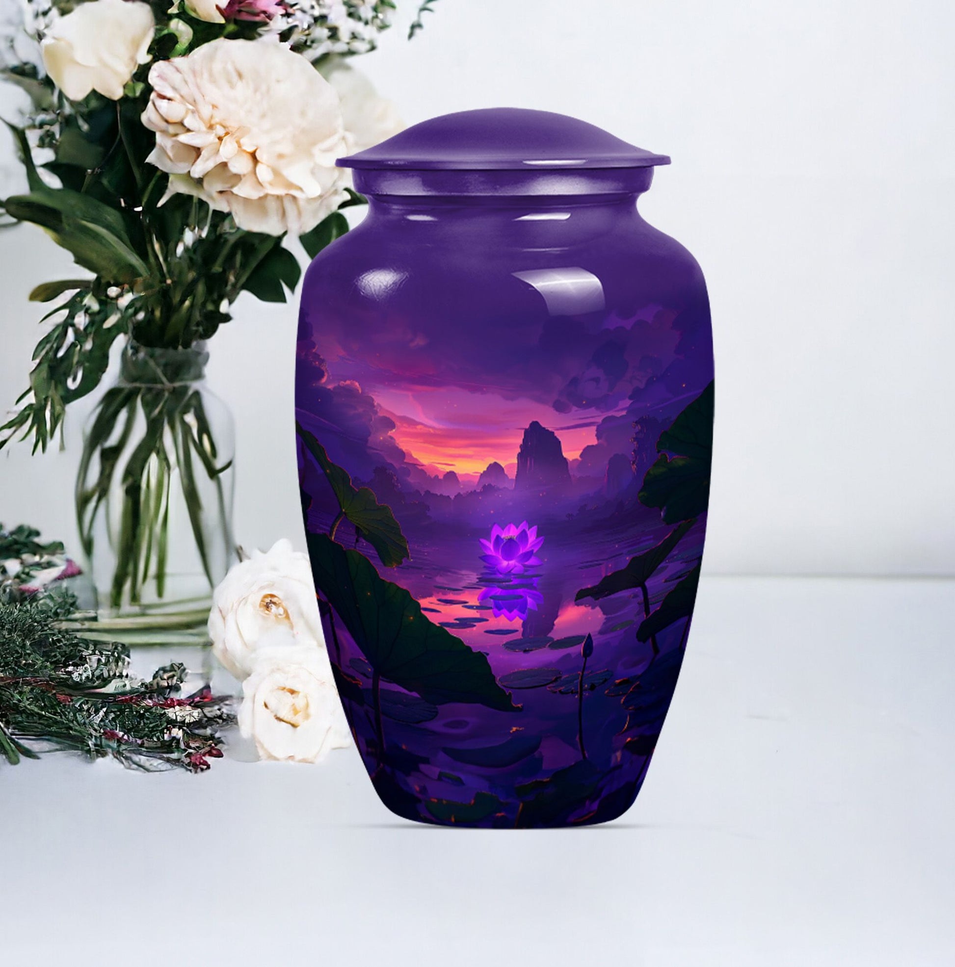 Cherish the memories of your loved ones with our 10-inch Lotus Urn, a prestigious selection in funeral urns for human ashes. Crafted meticulously from top-quality aluminium, this 3.3-pound urn is characterized by an abstract theme. Its large type generously accommodates 200 cubic inches of ashes, making it a fitting resting place for your dear one. This memorable piece comes in a classic urn style that exudes a timeless appeal, further signifying enduring love and tribute. Our memorial urns are uniquely delivered with a velvet pouch to respectfully contain and protect the ashes. Enhance this urn's uniqueness by personalizing it with engraved names, tailoring a touching tribute to the departed soul. Savour the lasting reminiscences with our lotus urn, a timeless piece amongst stone urns that is shaped with utmost respect and care for your emotional sentiments. Note: Design is not a key feature of this urn.