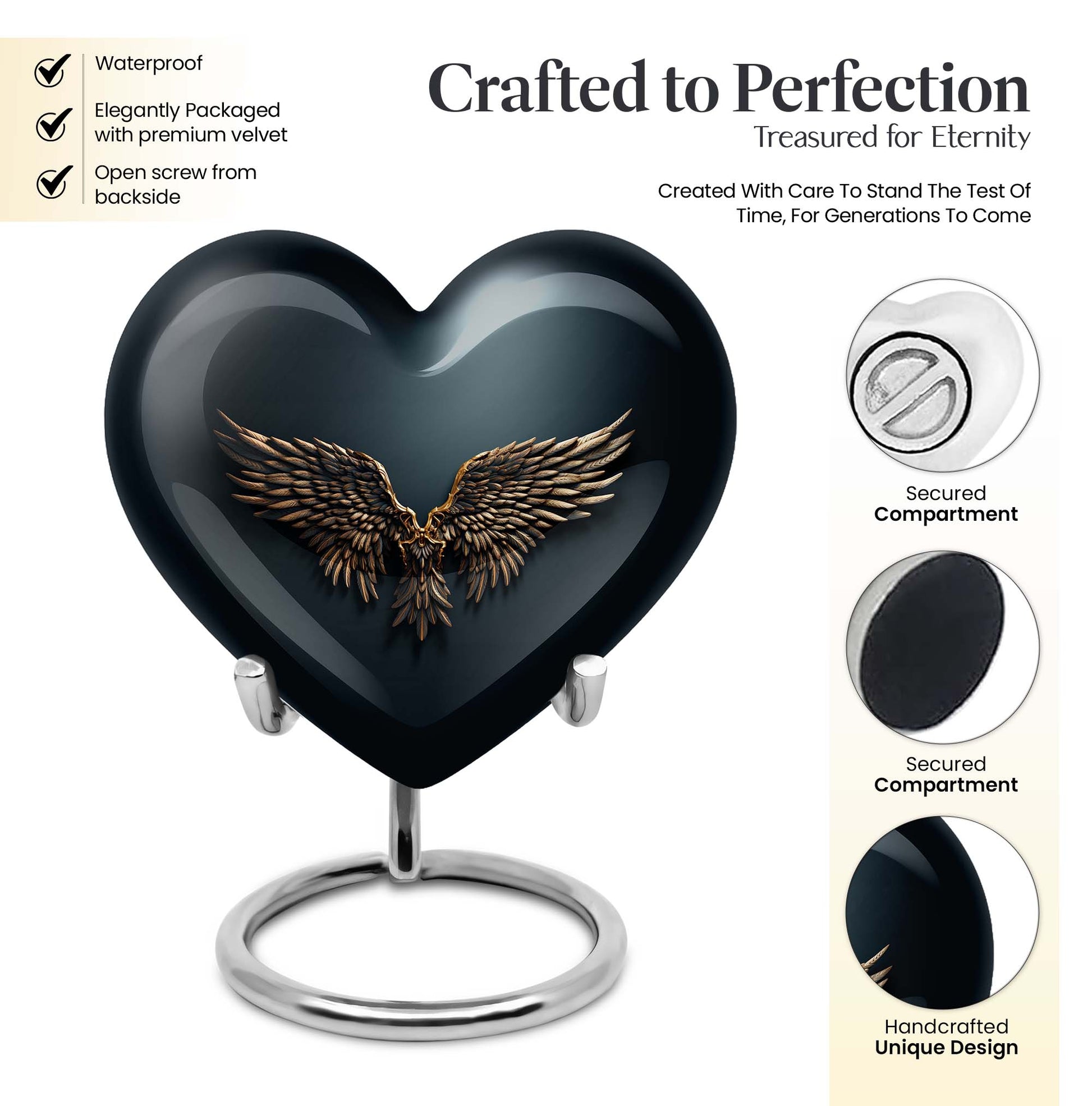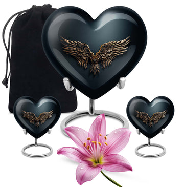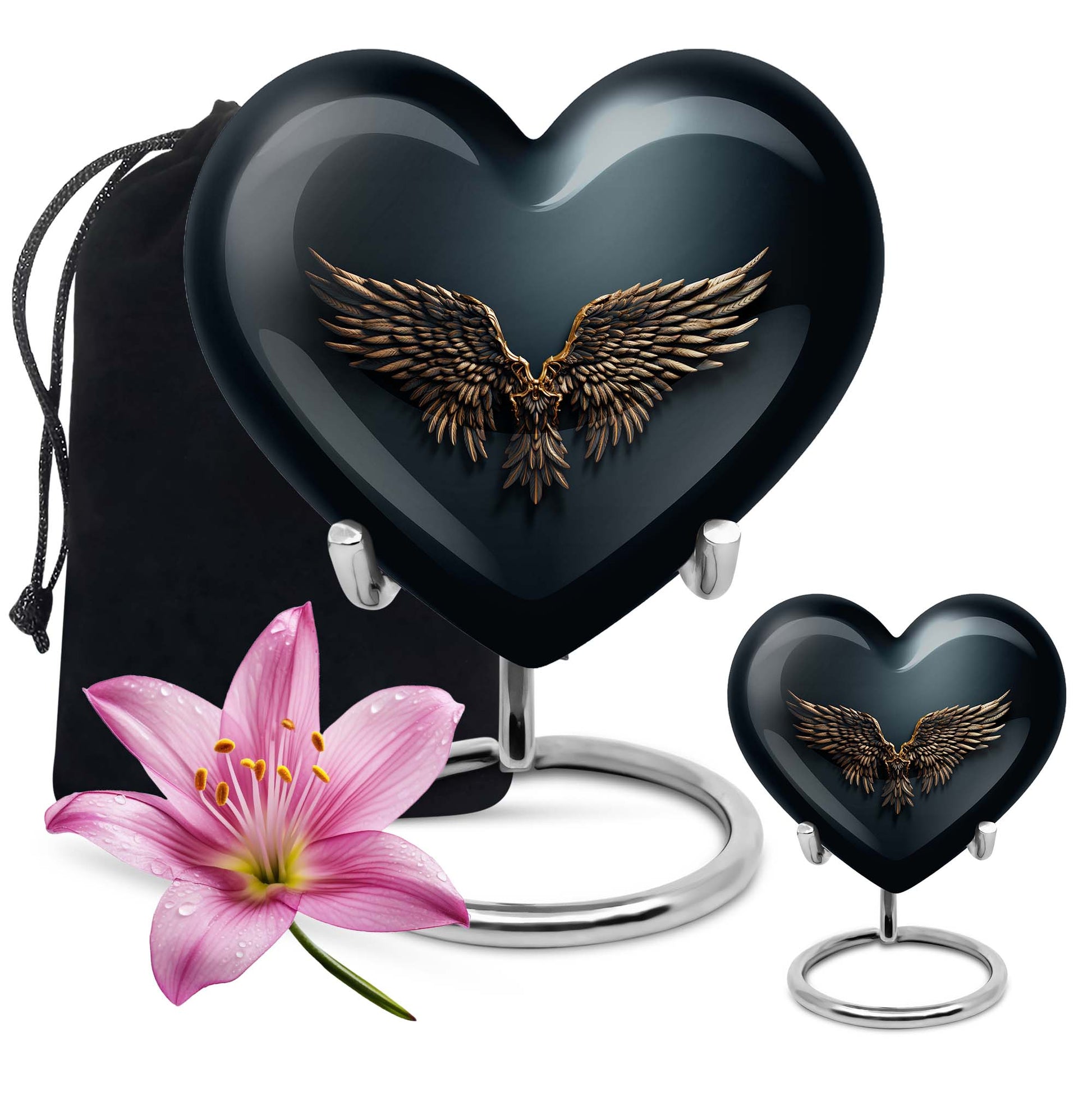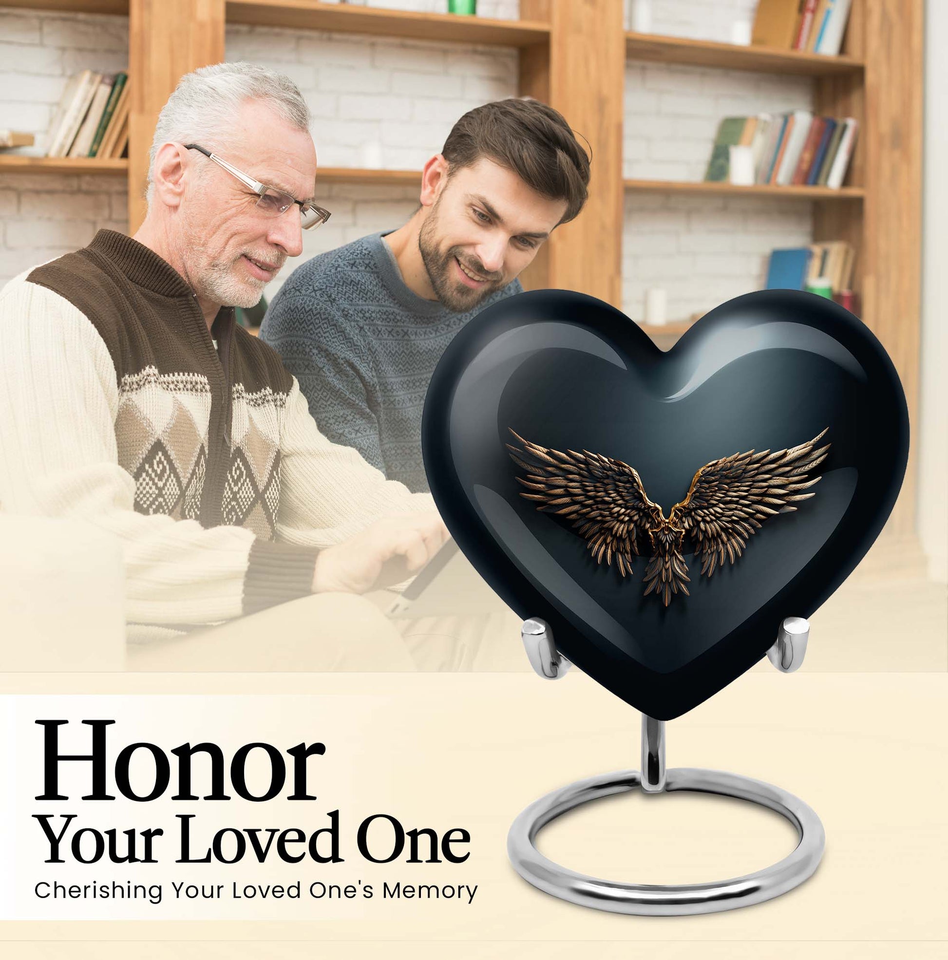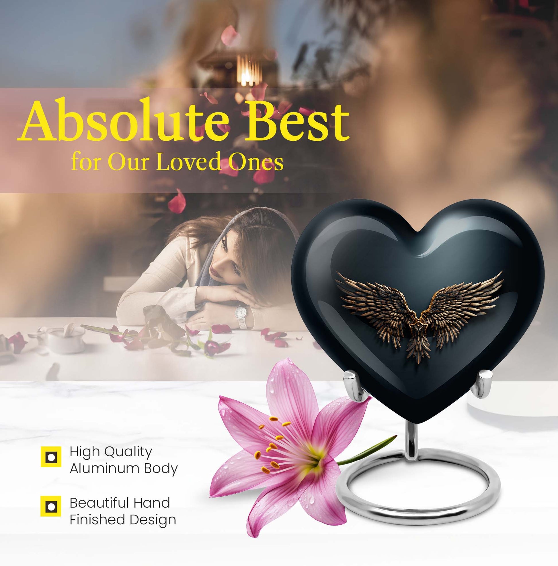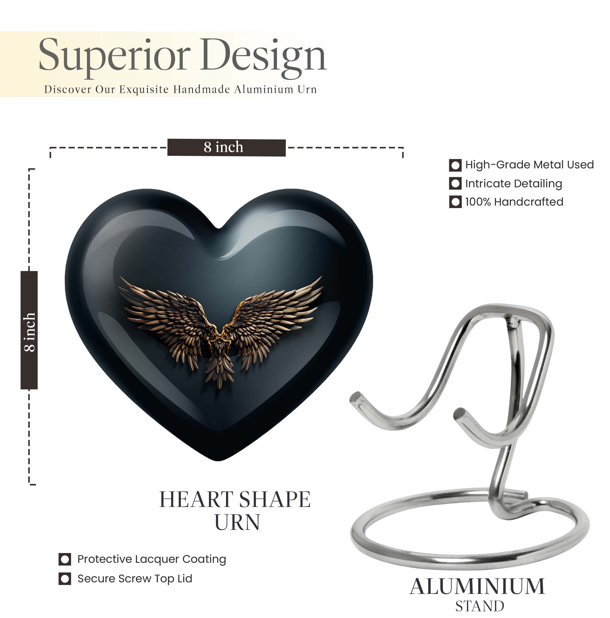 Cherish the memory of your dearly departed mother with our exceptional 'Wings Blue Urn'. Handcrafted meticulously from durable aluminium, the heart-shaped urn is beautifully finished to withstand the test of time. Its theme depicts the absolute freedom of a butterfly symbolizing the release of the soul into the divine. This 10-inch memorial urn carries an extraordinary glow, signifying a celestial journey of those held dear. This large-sized urn comfortably houses up to 200 cubic inches of ashes, suitable for an adult human body. The 3.3-pound urn can be customized to include personalized engraved names, making it an exceptional piece to honor the life shared with your loved ones. Each Urn comes along with a velvet pouch, creating a perfect containment for the noblest of ashes. Keywords that capture the essence of our urns include burial cremation urn, cremation urns medium size, and personalized urns. Not just an Urn, but a unique masterpiece that reverberates with the harmonious melody of precious memories.