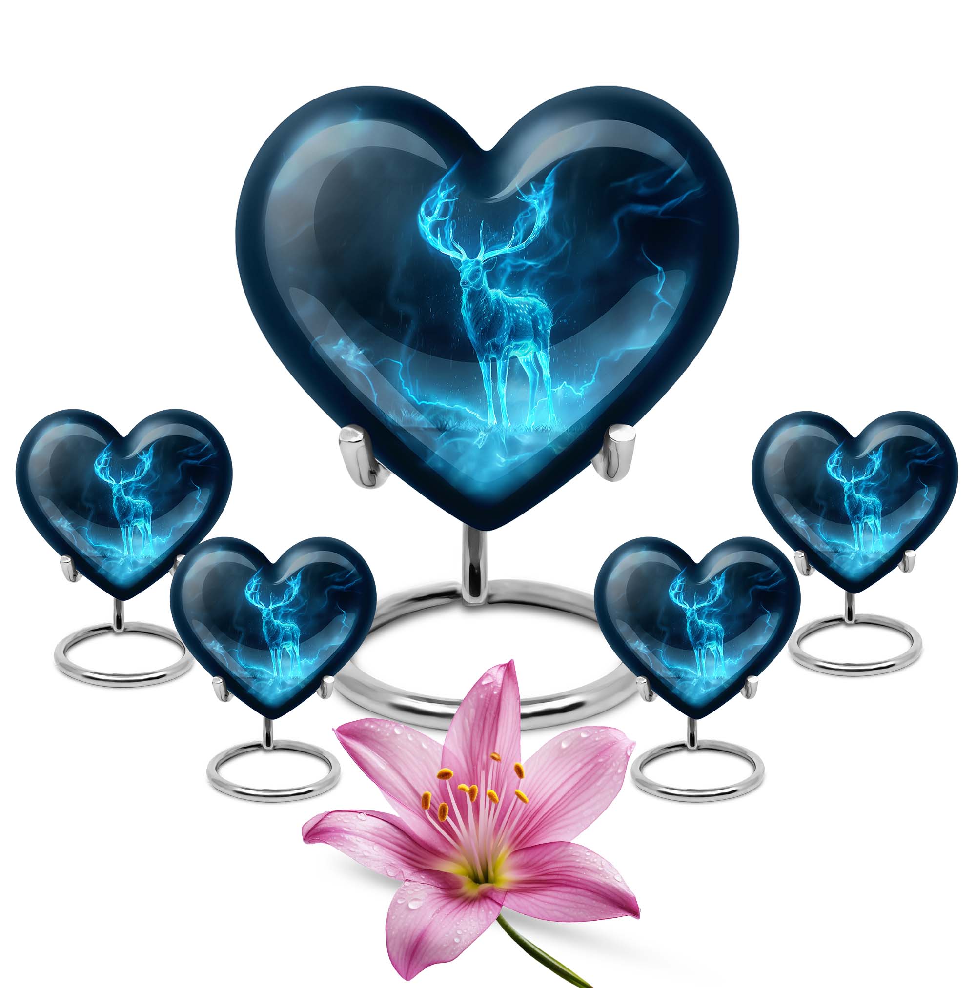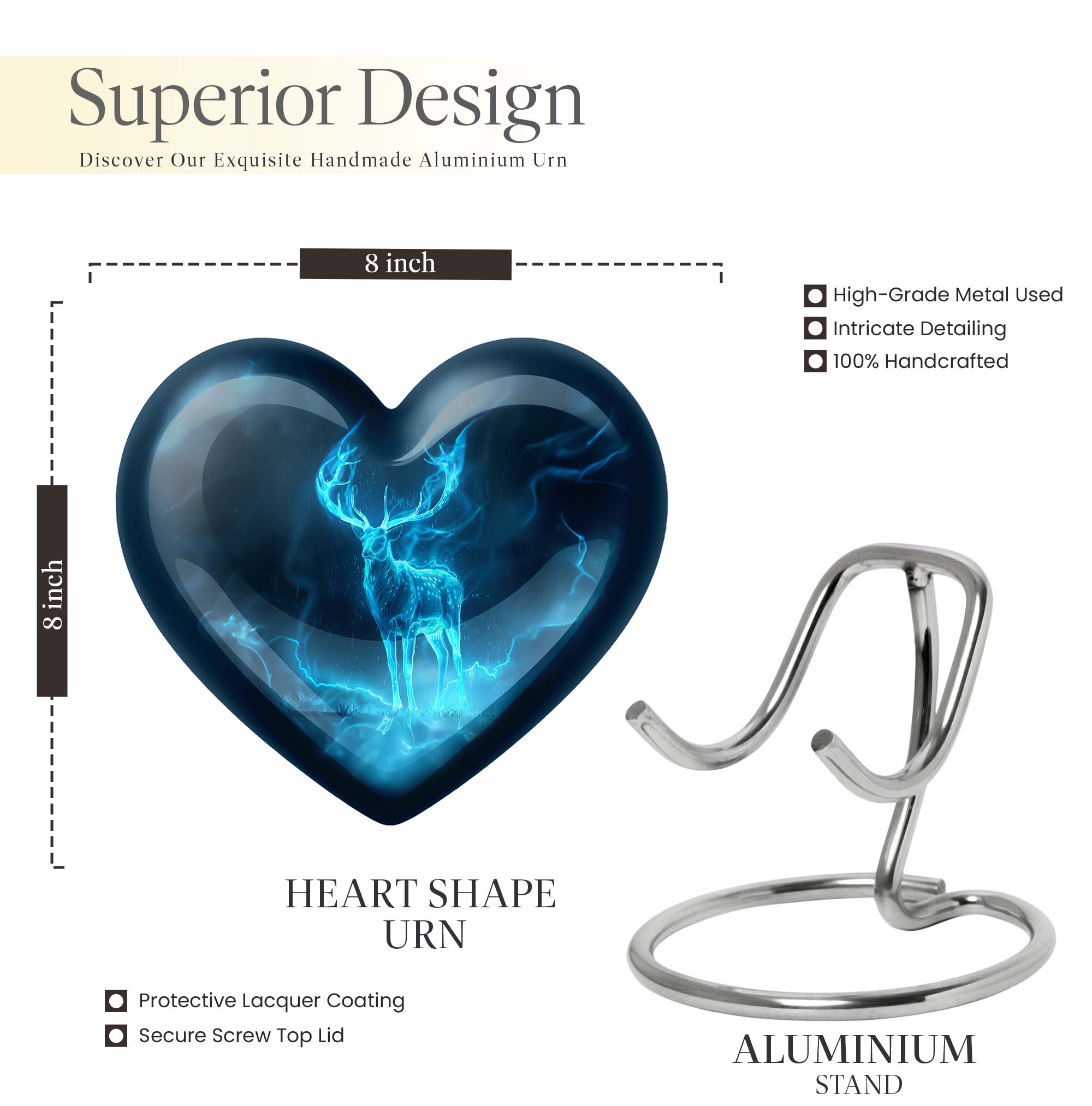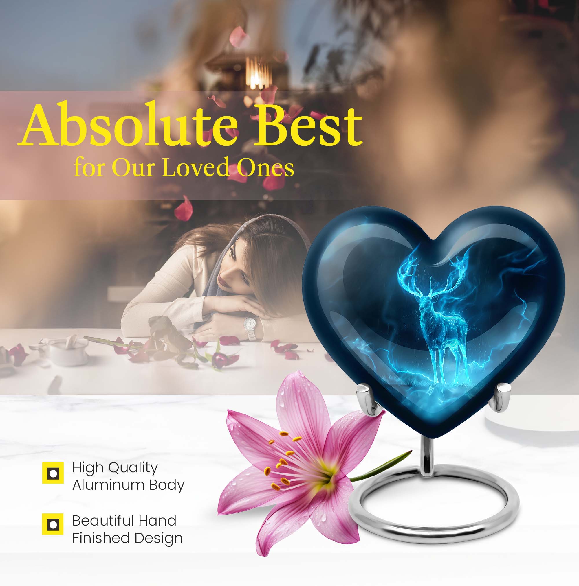 In your solemn moments of remembrance, our large 'Wolf Howling' memorial urn, embossed with a poignant deer theme, provides a touching resting place for your dear loved one's ashes. This robust 10-inch aluminium urn is more than a simple funeral supply; it's a keepsake that encapsulates cherished memories. With its weight of 3.3 pounds, it boasts a capacity of 200 cubic inches, making it a fitting choice for adult ashes storage, a tribute for both men and women. The package includes a velvet pouch complementing the urn, ensuring safe containment of ashes, further expressing your deep devotion. You also have the opportunity to personalize the urn with engraved names, making it more unique and sentimental. Ideal for burial funeral or cremation purposes, this urn is an artistic and noble way to honor your loved one's legacy. Principal search phrases associated with this product are 'deer urn', 'burial funeral urns for adult ashes men', 'cremation large urn for ashes', 'ash adult ashes women', 'urn cremation', and 'metal urns for burial in ground'.
