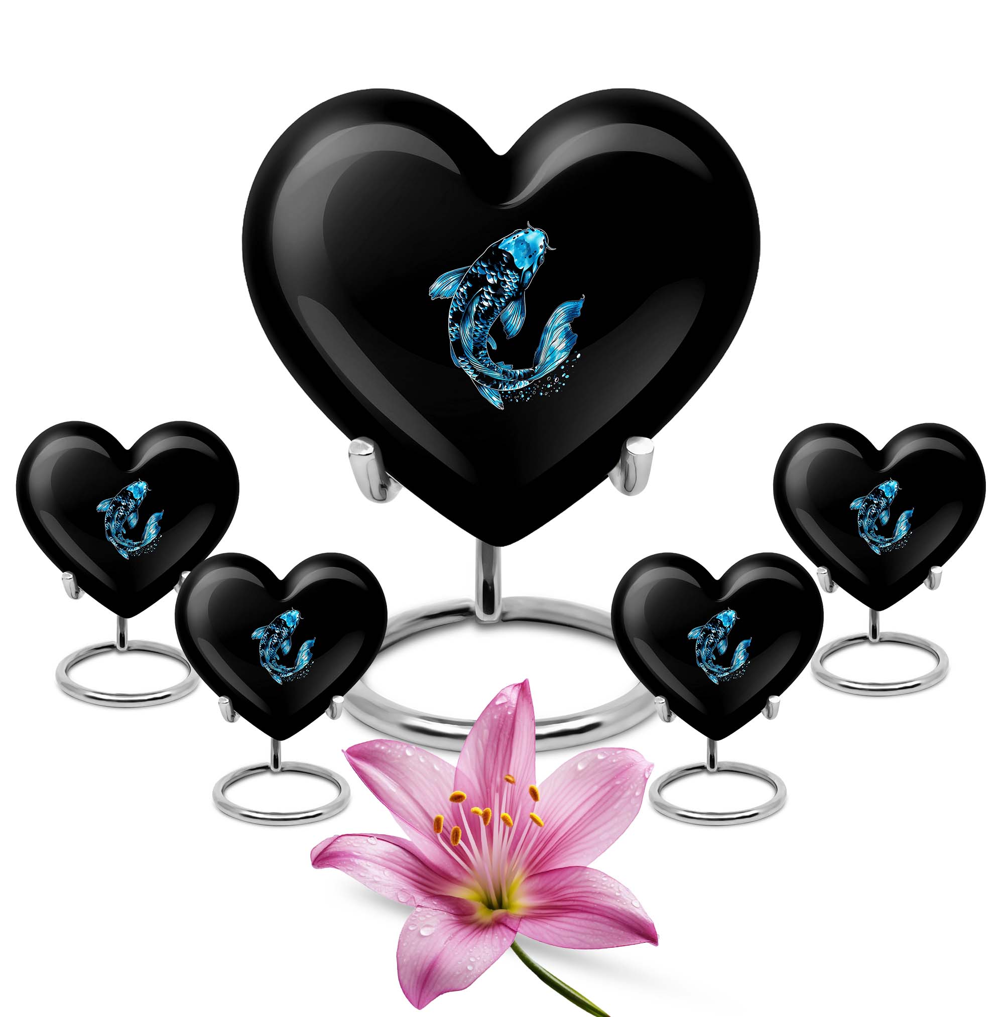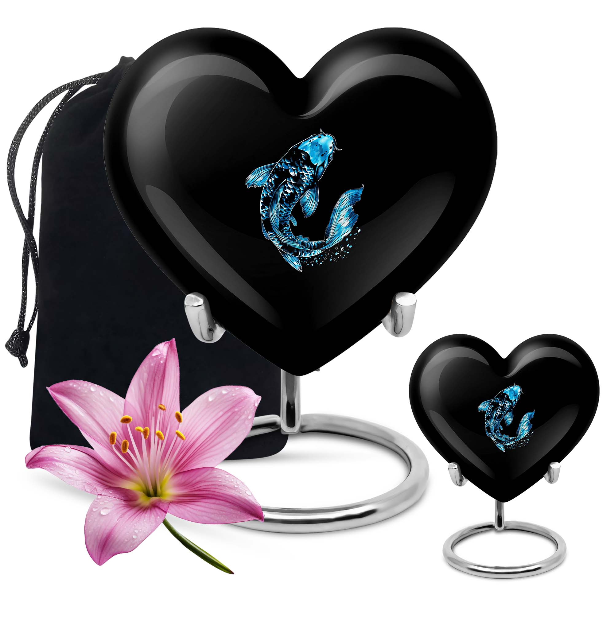 Find serenity with this unique, abstract-themed fish urn. Made from robust aluminium, this large burial urn for human ashes adult reflects the heart's endless capacity for love. With its 10-inch height and able to hold 200 cubic inches, it truly fits the needs of various consumers. Weighing at 3.3 pounds, it is steady but not burdensome. The package also comes with a complementary velvet pouch, providing an elegant encasement for the ashes, enhancing the urn’s value. What sets this cremation urn apart is its customization feature. Make it more personal with engraved names of your loved ones, making it a heartfelt remembrance. This cremation urn, catering specifically to men, will help to memorialize a life lived with plenty of love and fond memories. Recognizing the need for distinctive terminology, we have termed it as the 'heart urn', a term that isn't just about an 'adult urn', but encapsulates the immeasurable love one carries.