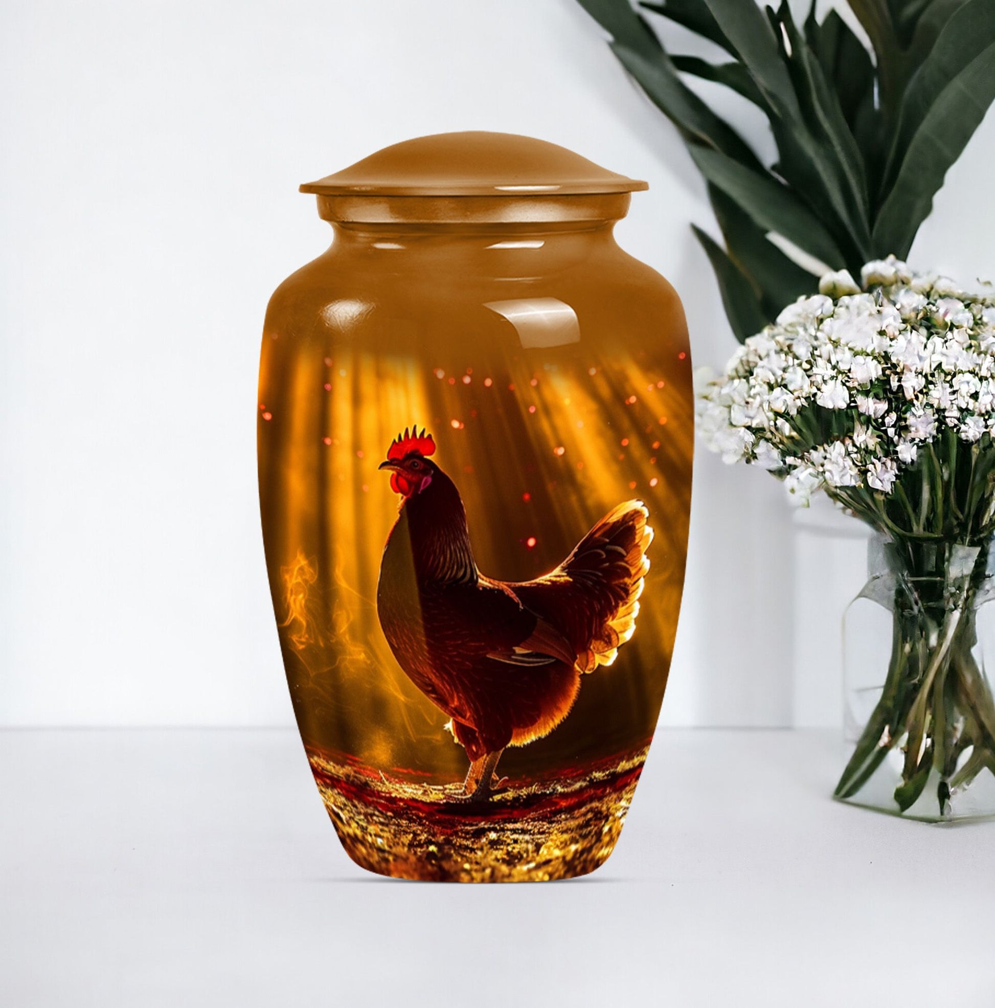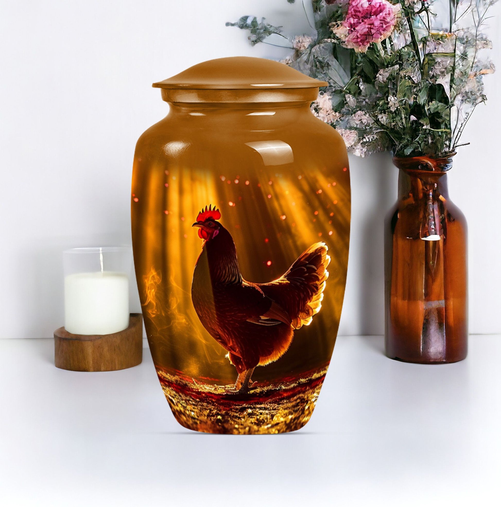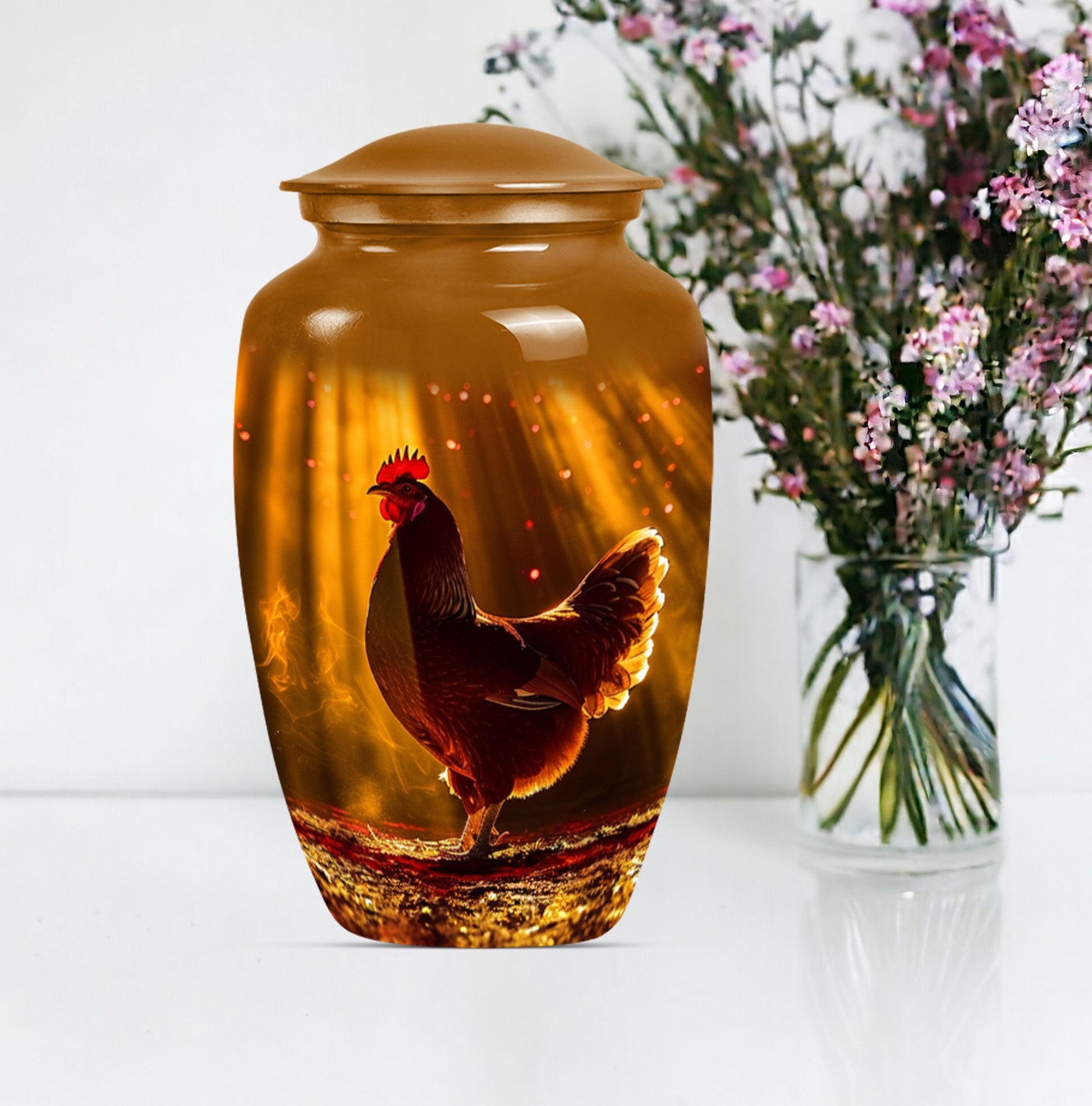 Immerse yourself in traditional remembrance with this top-tier chicken urn, a sacred cremation urn designed specifically for Female adult ashes. With a size of 10 inches and a weight of just 3.3 pounds, this substantial urn comfortably holds up to 200 cubic inches. Each cremation container comes with a velvet pouch, meticulously constructed to tenderly contain the ashes. Personalize this large urn, beautifully adorned with a lavish flowers theme, by engraving names as a token of cherished memory. Fabricated with an enduring aluminium material, this cremation ash container assures longevity. Crafted with exquisite detail, this urn is more than just a vessel; it’s a lasting tribute to your dearly departed ones. The primary use of this urn is not only to store ashes but to serve as a profound token of lifetime remembrance. This urn is an impeccable selection for those in search of burial large urns, urn ash adult urn human ash, urn for ashes, and cremation ashes containers. A classic approach to memorial urns, indeed!