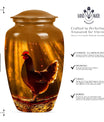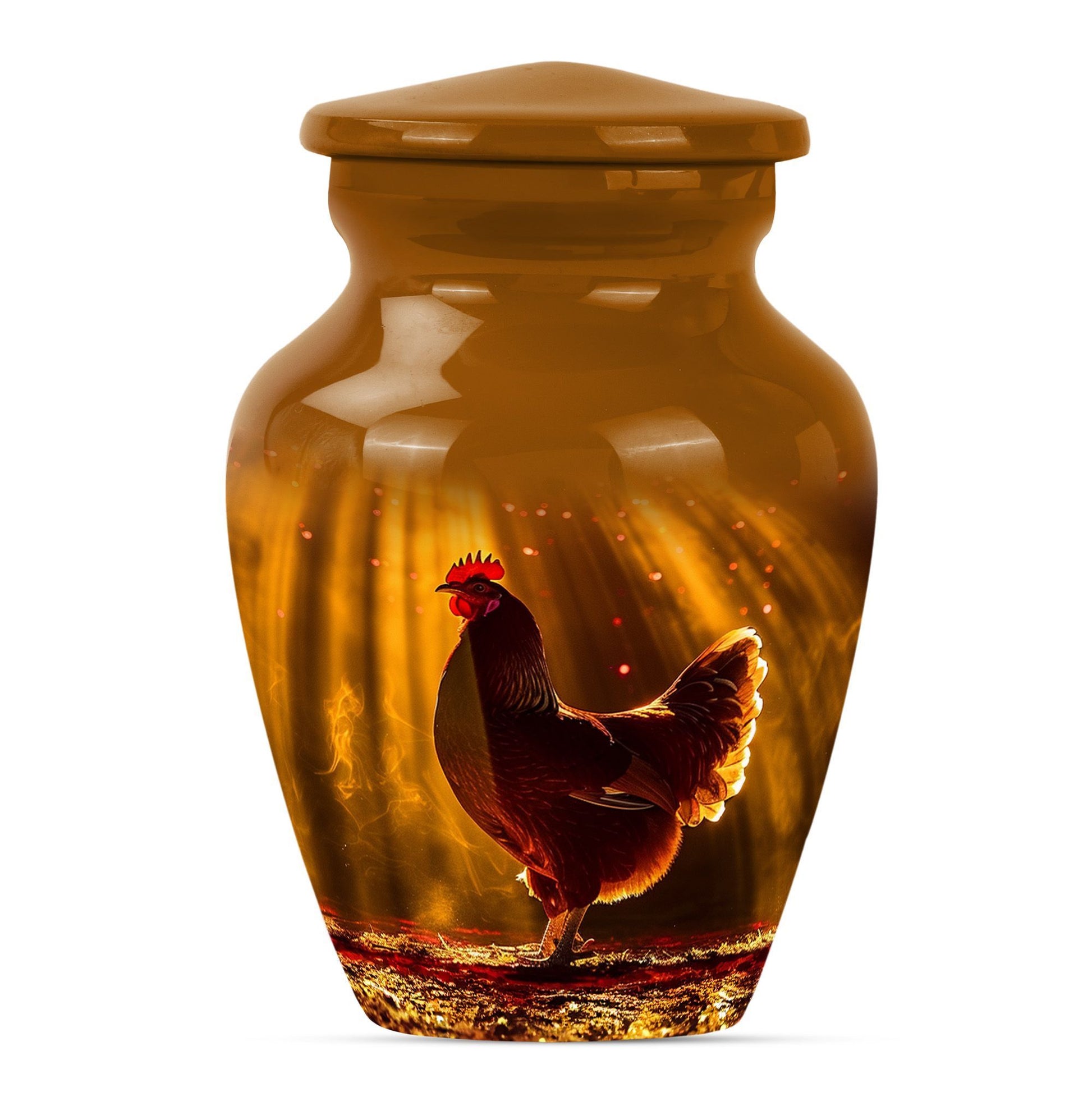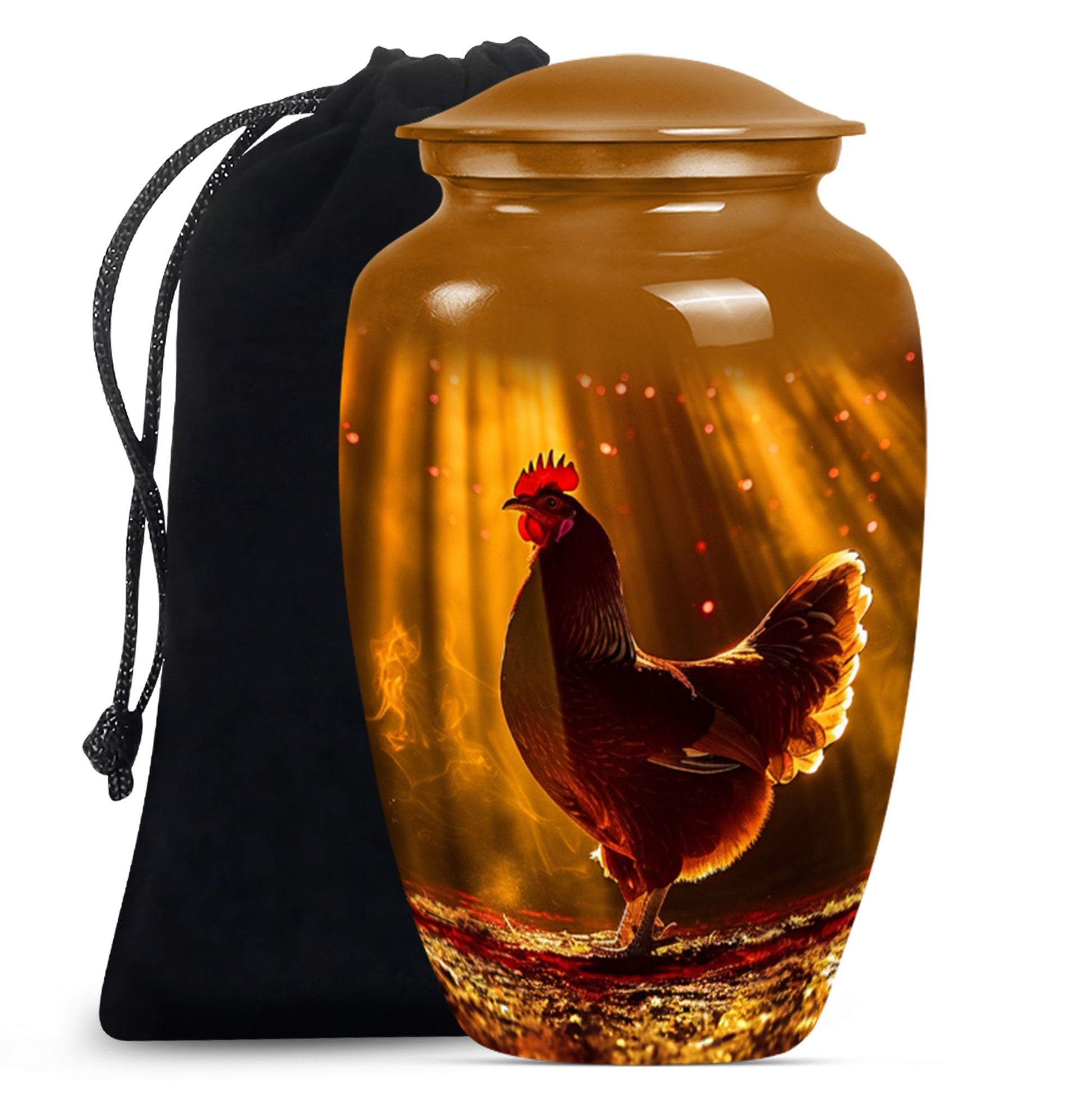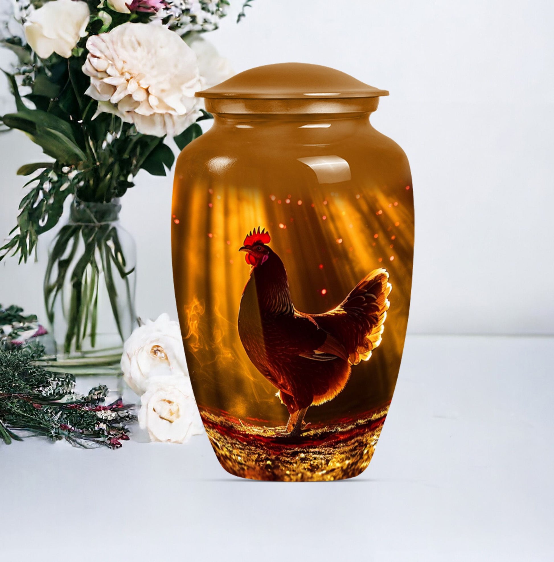 Immerse yourself in traditional remembrance with this top-tier chicken urn, a sacred cremation urn designed specifically for Female adult ashes. With a size of 10 inches and a weight of just 3.3 pounds, this substantial urn comfortably holds up to 200 cubic inches. Each cremation container comes with a velvet pouch, meticulously constructed to tenderly contain the ashes. Personalize this large urn, beautifully adorned with a lavish flowers theme, by engraving names as a token of cherished memory. Fabricated with an enduring aluminium material, this cremation ash container assures longevity. Crafted with exquisite detail, this urn is more than just a vessel; it’s a lasting tribute to your dearly departed ones. The primary use of this urn is not only to store ashes but to serve as a profound token of lifetime remembrance. This urn is an impeccable selection for those in search of burial large urns, urn ash adult urn human ash, urn for ashes, and cremation ashes containers. A classic approach to memorial urns, indeed!