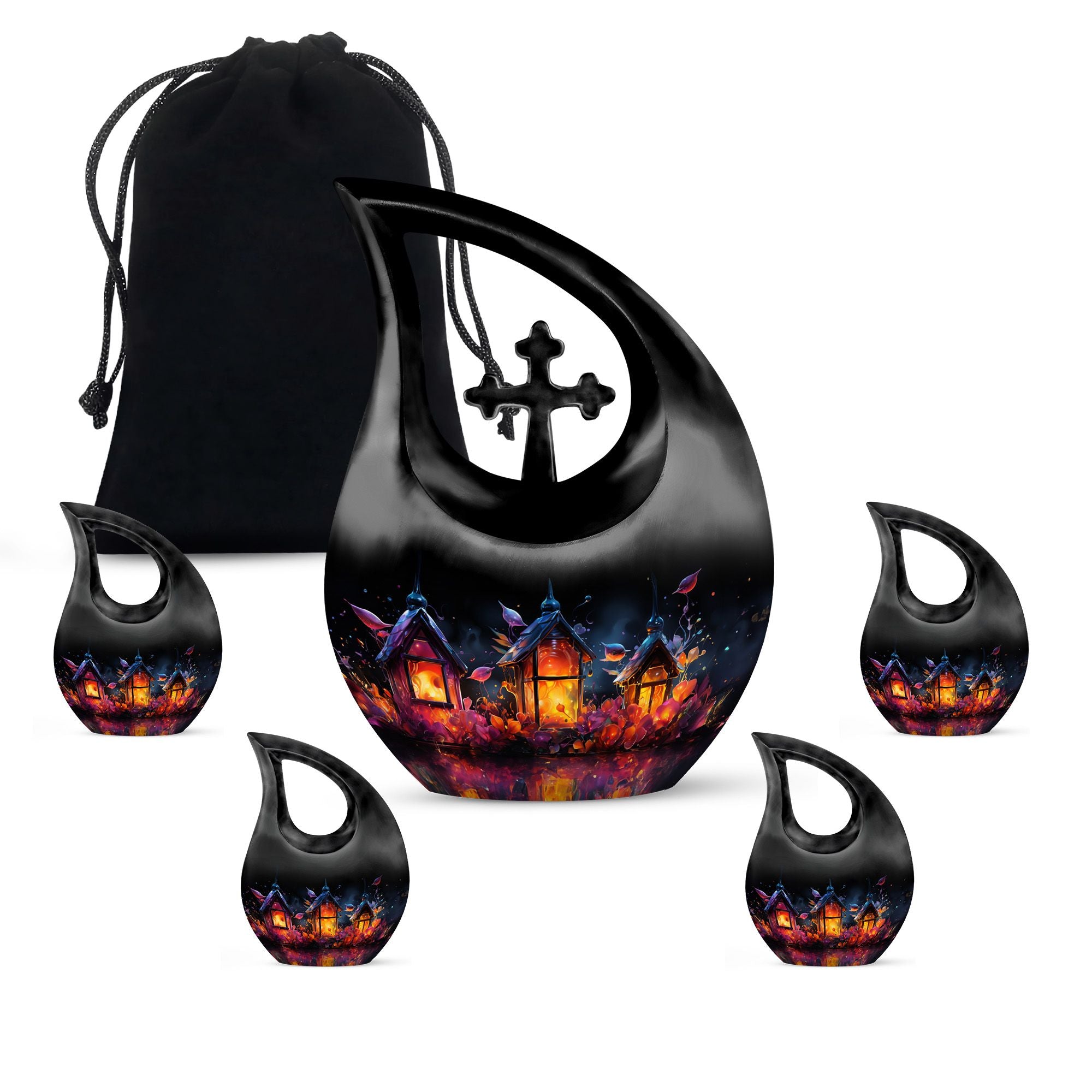 For families who wish to divide ashes or keep a portion close, coordinating options such as mini cremation urns for human ashes, small cremation urns for ashes, or a matching cremation keepsake urn offer meaningful flexibility. This Halloween-themed memorial also pairs beautifully with cremation urn small designs, providing comfort for every remembrance style.
