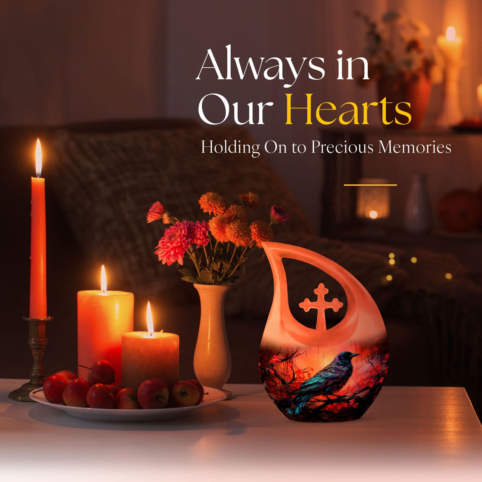 The Blue Raven Urn for Memorial Ashes embodies mystery, courage, and transformation — a striking tribute to a life that continues to inspire. Featuring a majestic raven design set against a glowing blue background, this urn ashes keepsake captures both elegance and depth, offering comfort and peace in times of remembrance. Ideal for families seeking beauty and meaning, it serves as both a large urn and human ash keepsake set.
